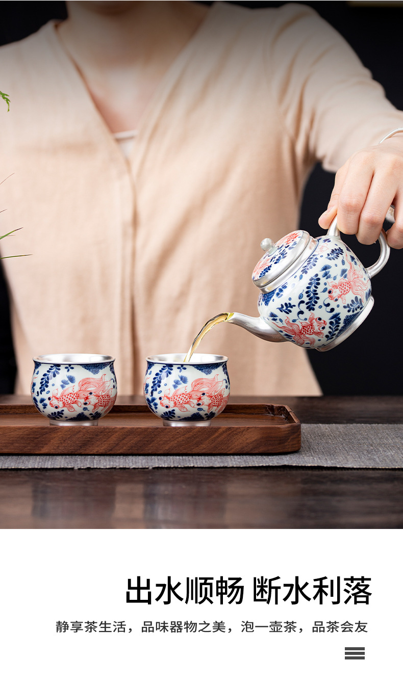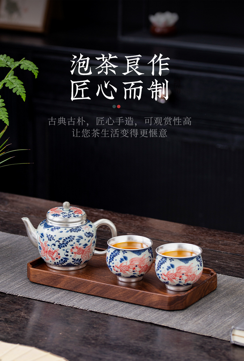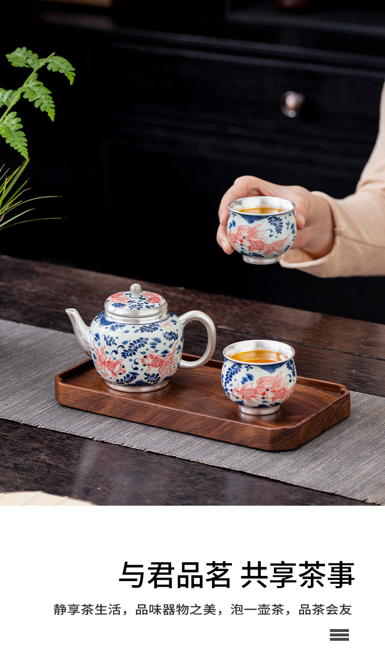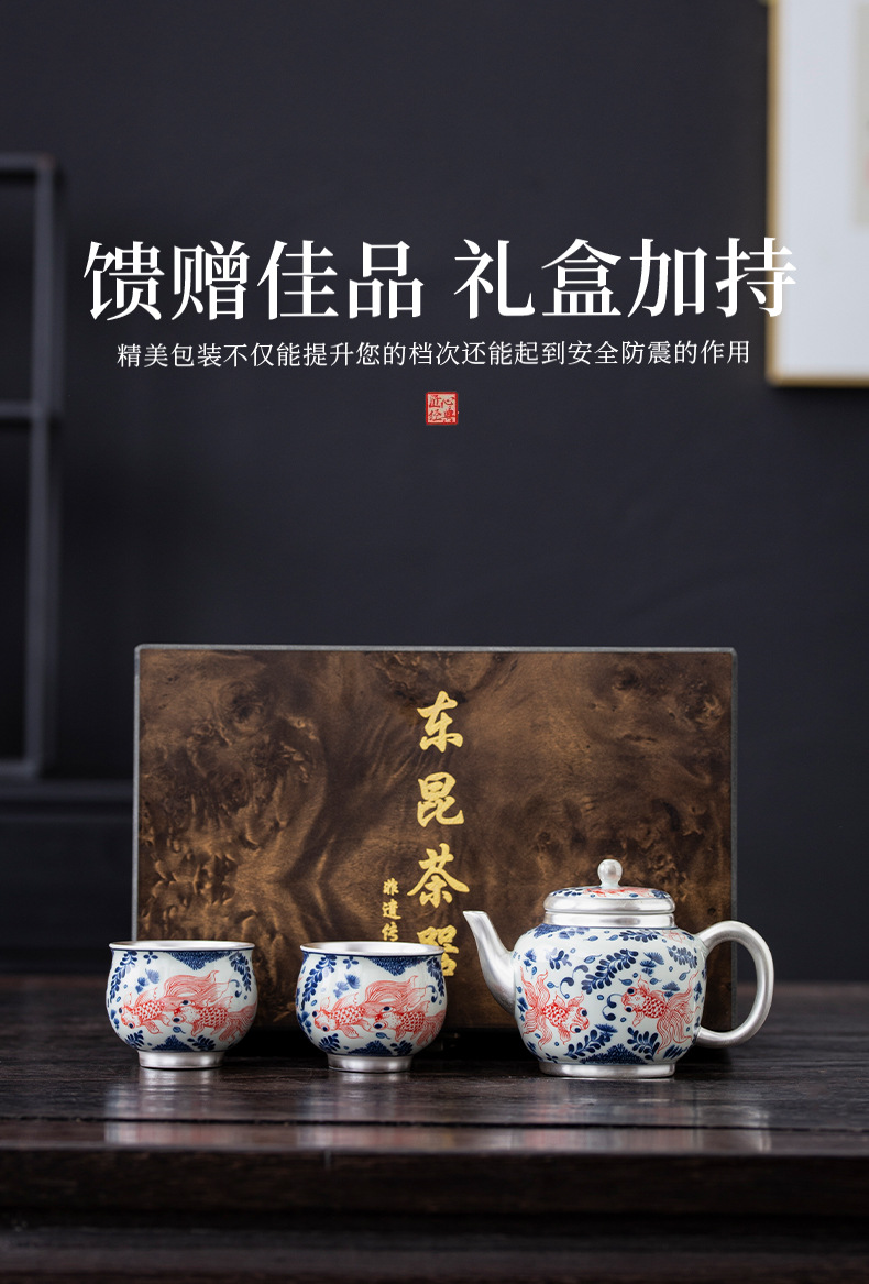 - Bộ ấm chén trà Kung Fu bạc 999 sterling, bộ nhỏ gia dụng, thủ công, mạ vàng, 1 ấm 1 chén, hộp quà lưu niệm