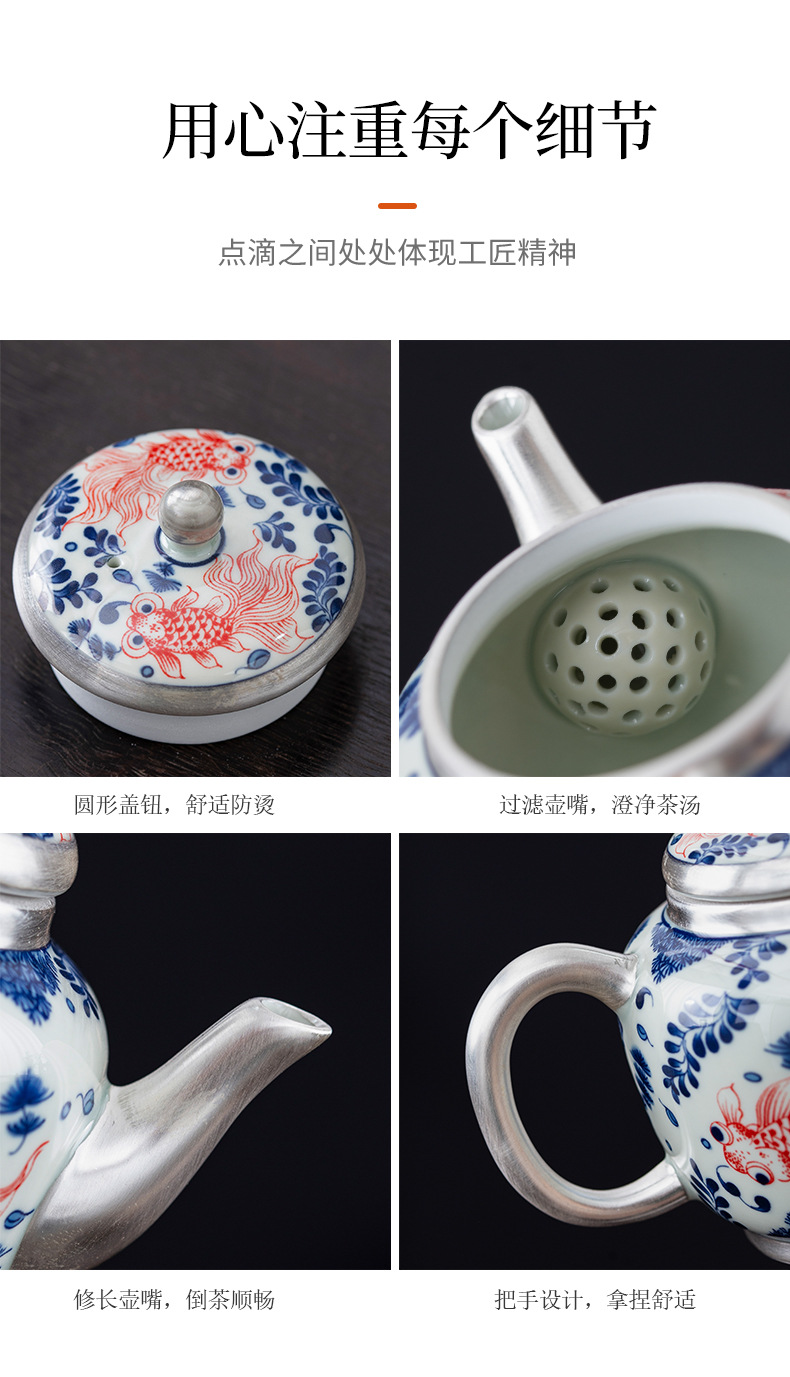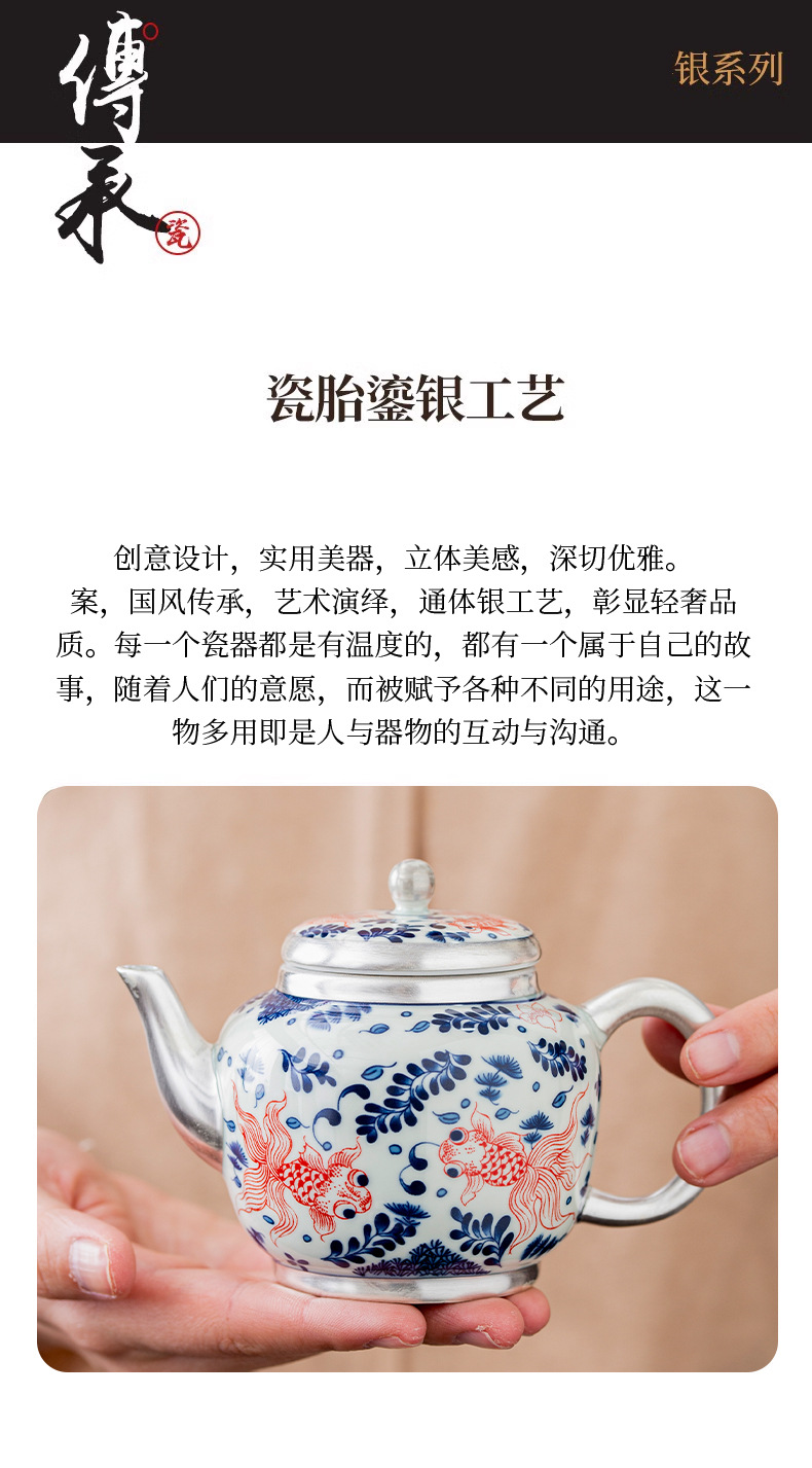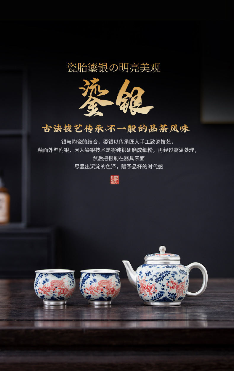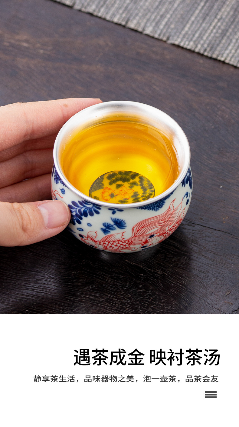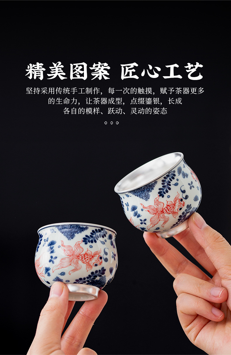 - Bộ ấm chén trà Kung Fu bạc 999 sterling, bộ nhỏ gia dụng, thủ công, mạ vàng, 1 ấm 1 chén, hộp quà lưu niệm