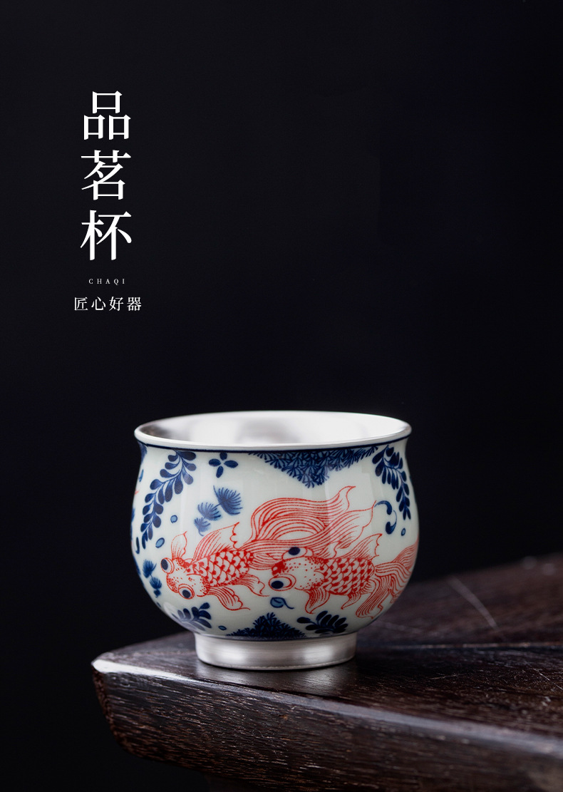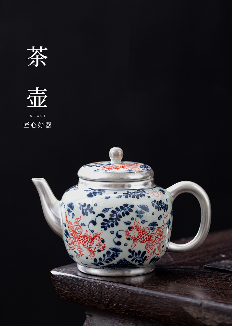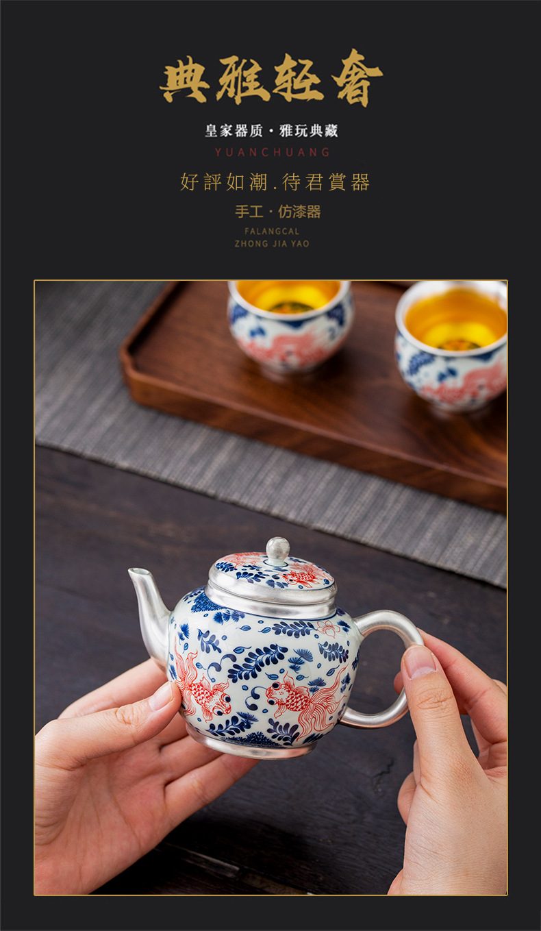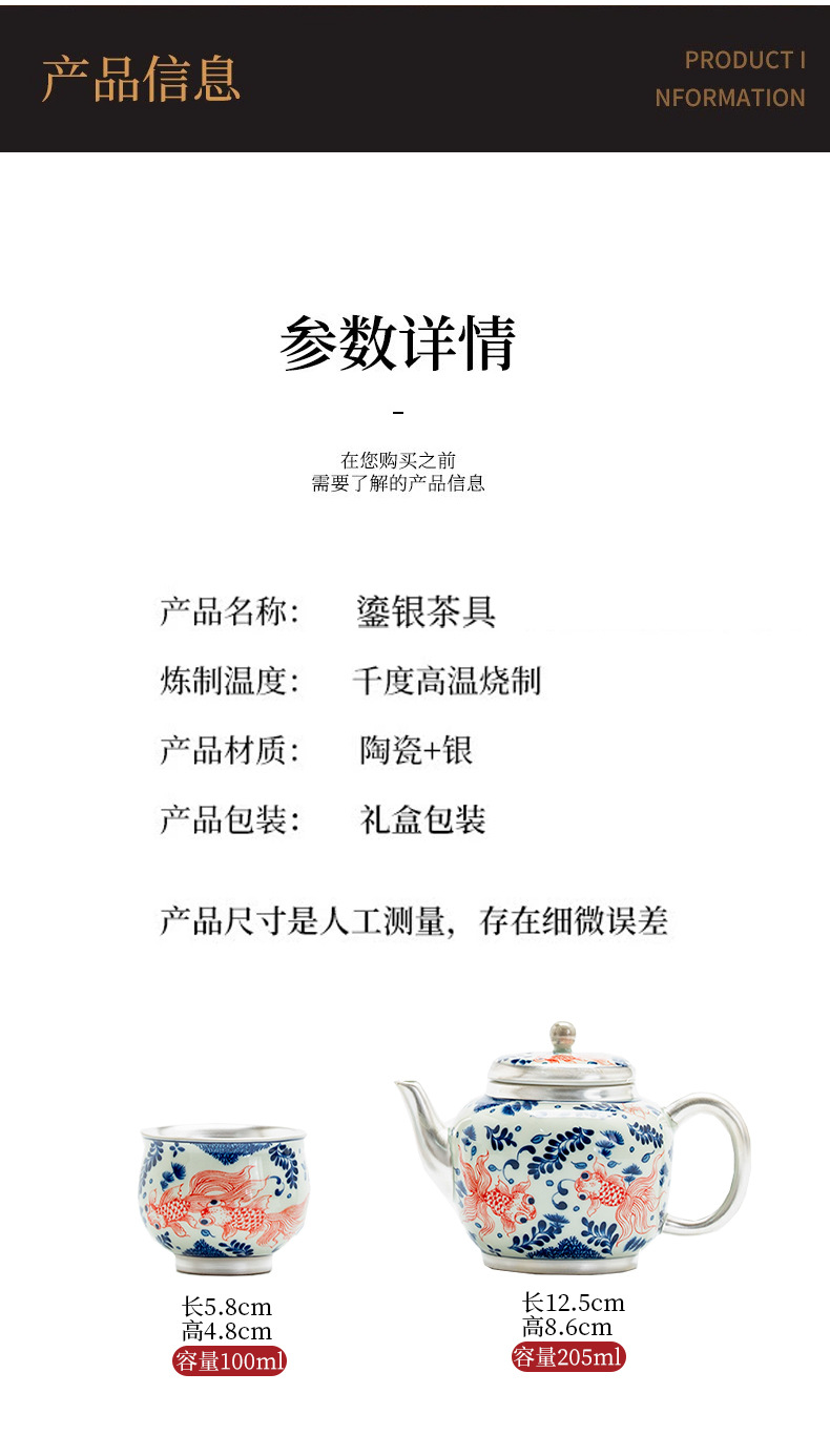 - Bộ ấm chén trà Kung Fu bạc 999 sterling, bộ nhỏ gia dụng, thủ công, mạ vàng, 1 ấm 1 chén, hộp quà lưu niệm
