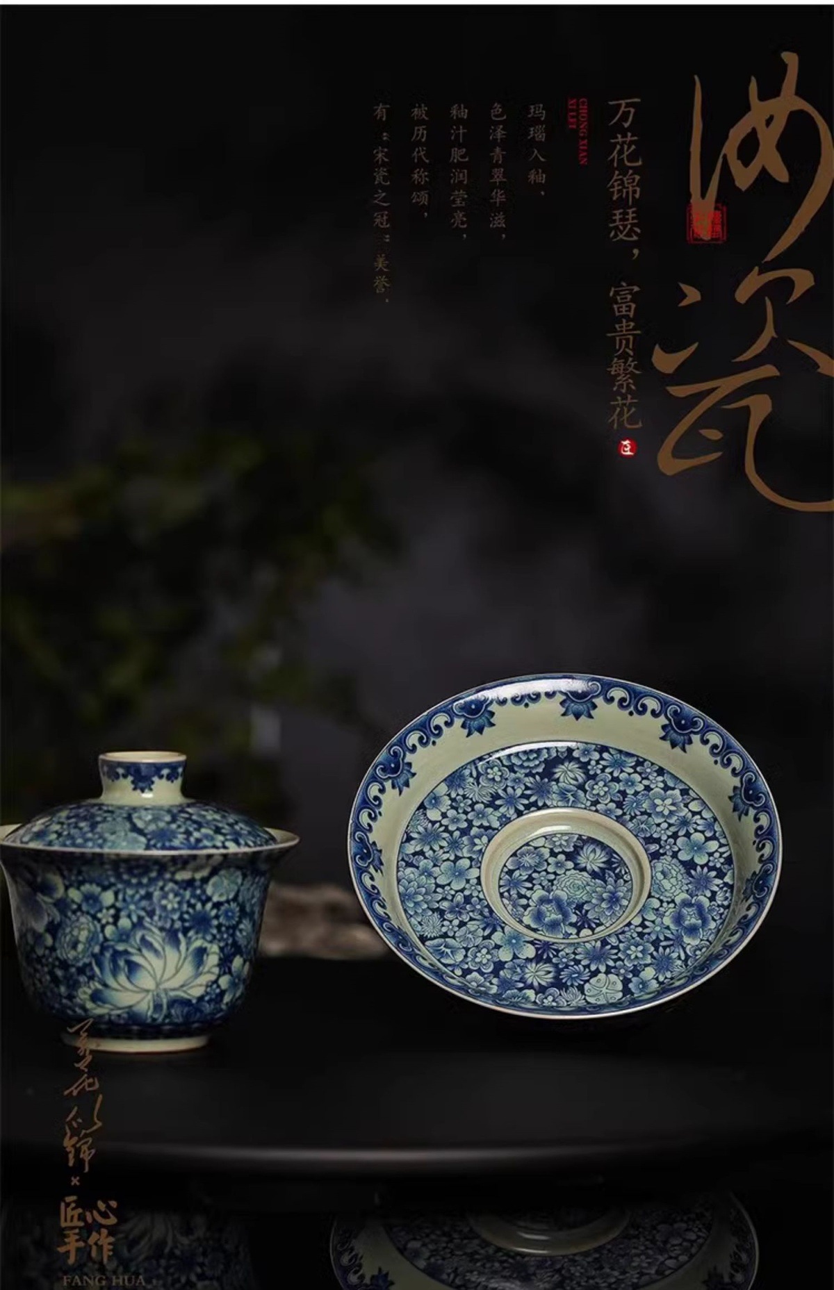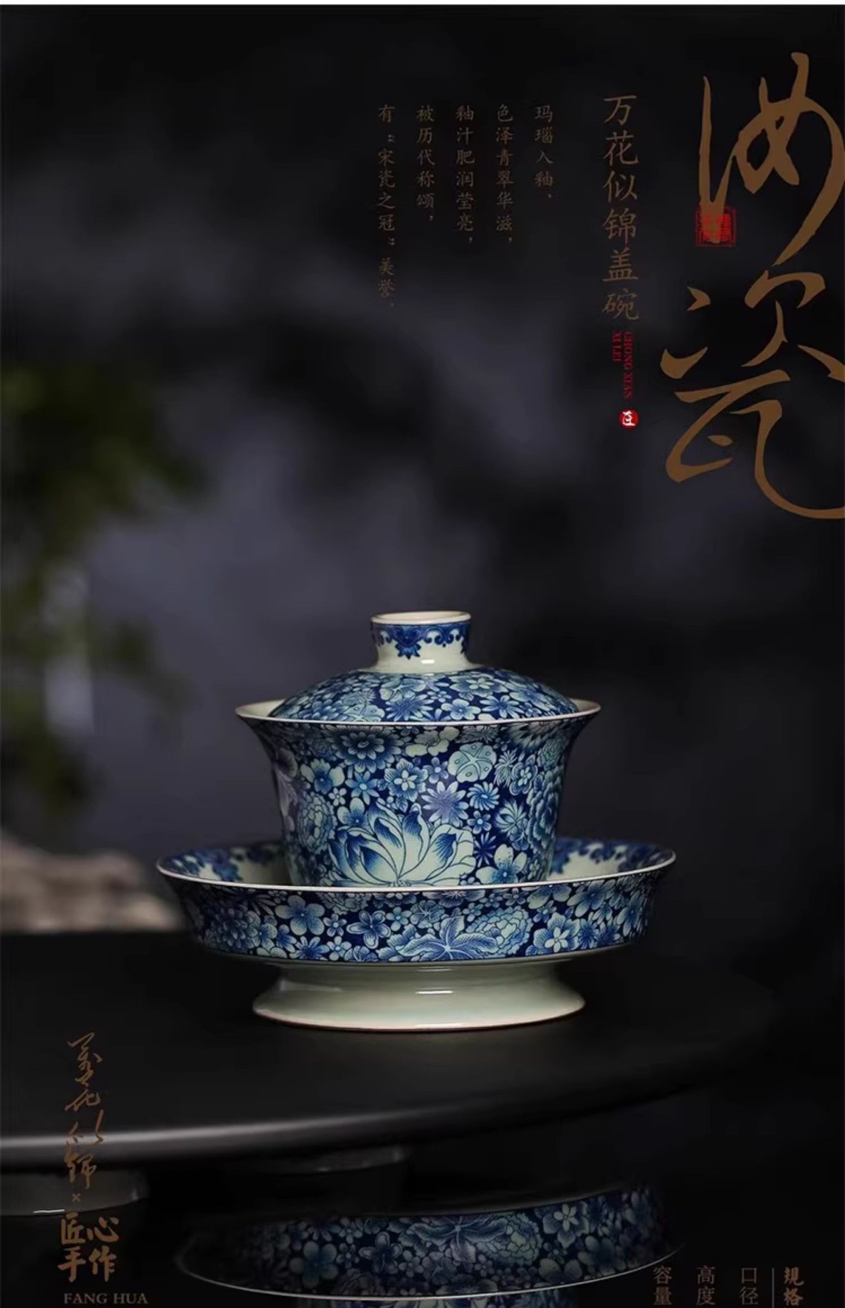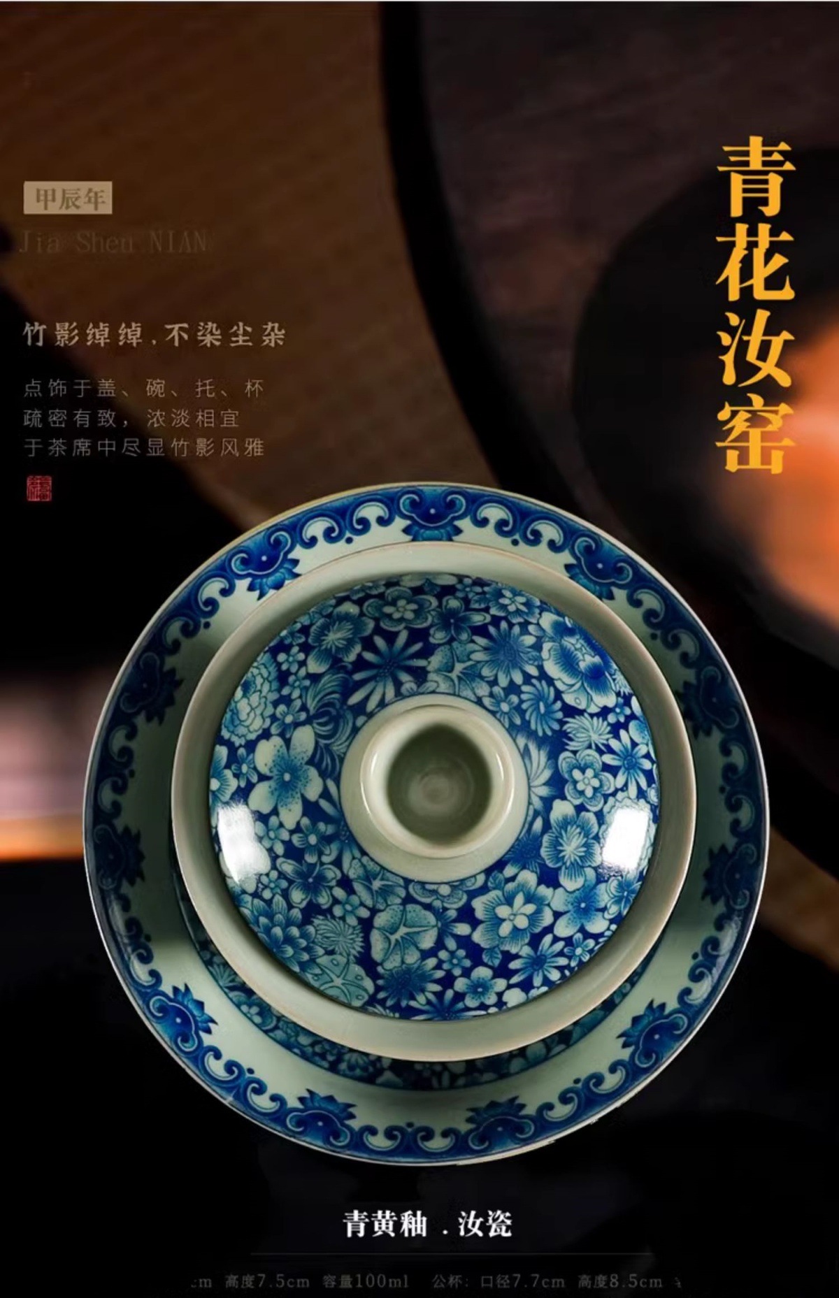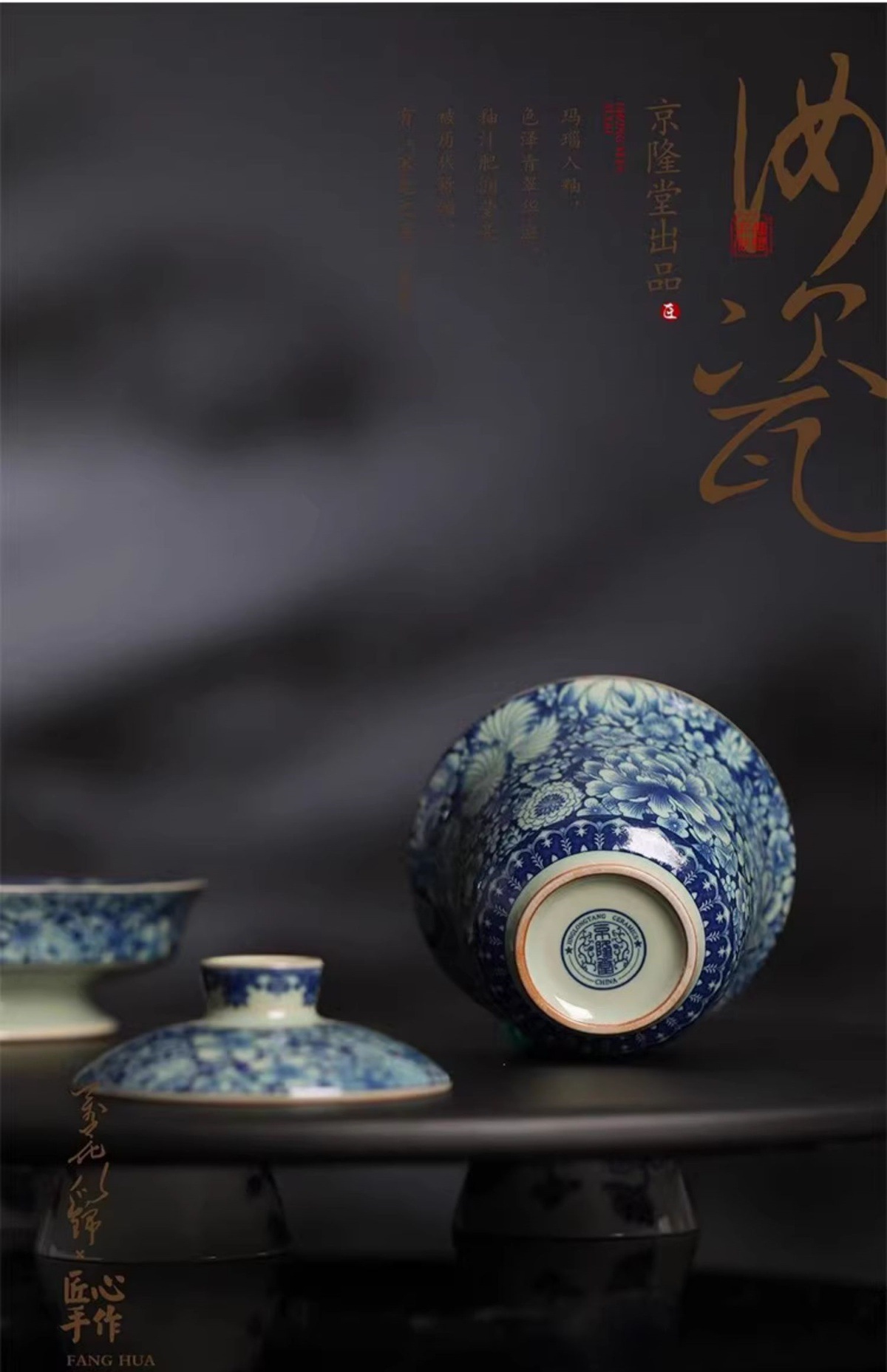 - Bộ ấm chén trà Kung Fu cao cấp Jinglongtang Ru Kiln màu xanh trắng Sancai, chén phủ men, dùng trong nhà