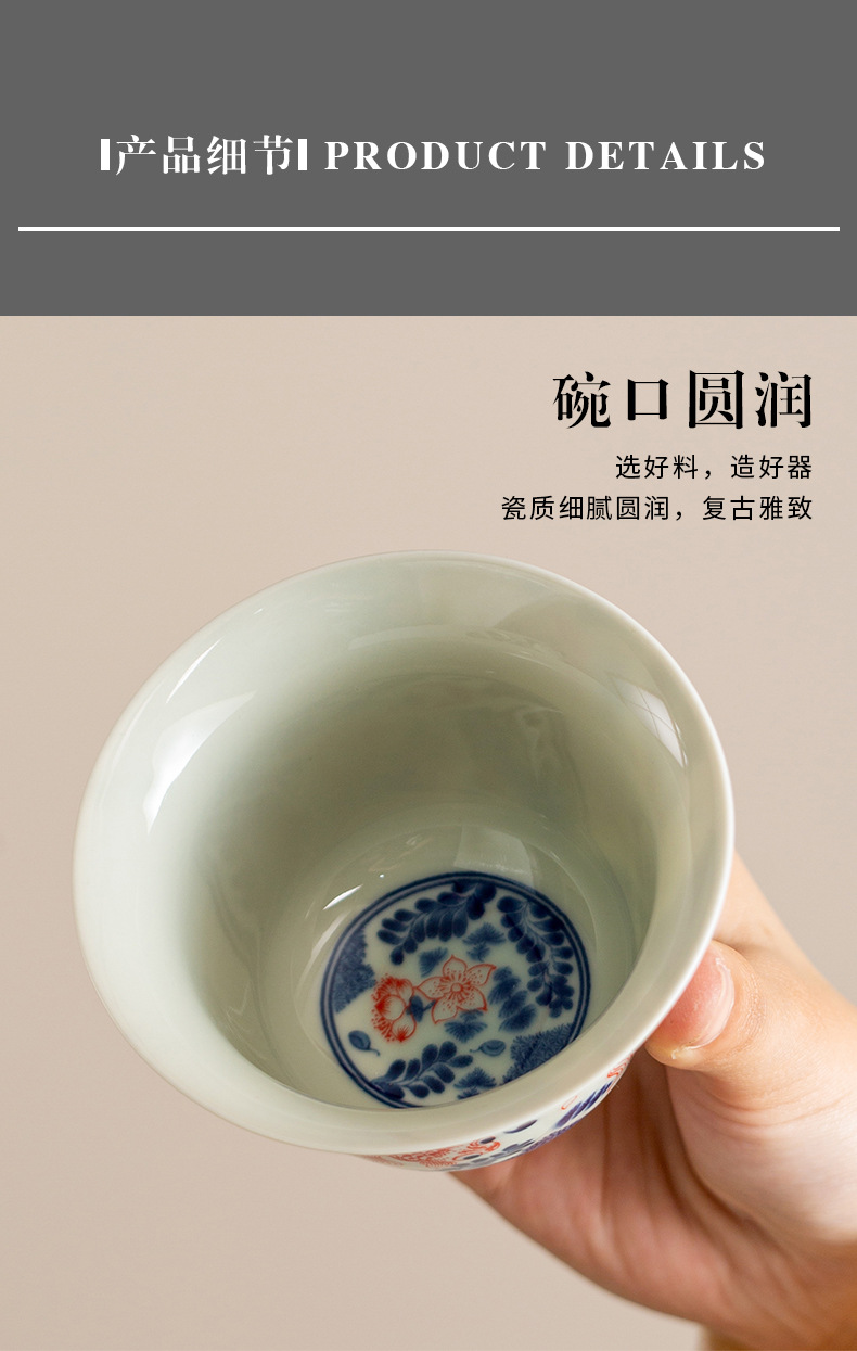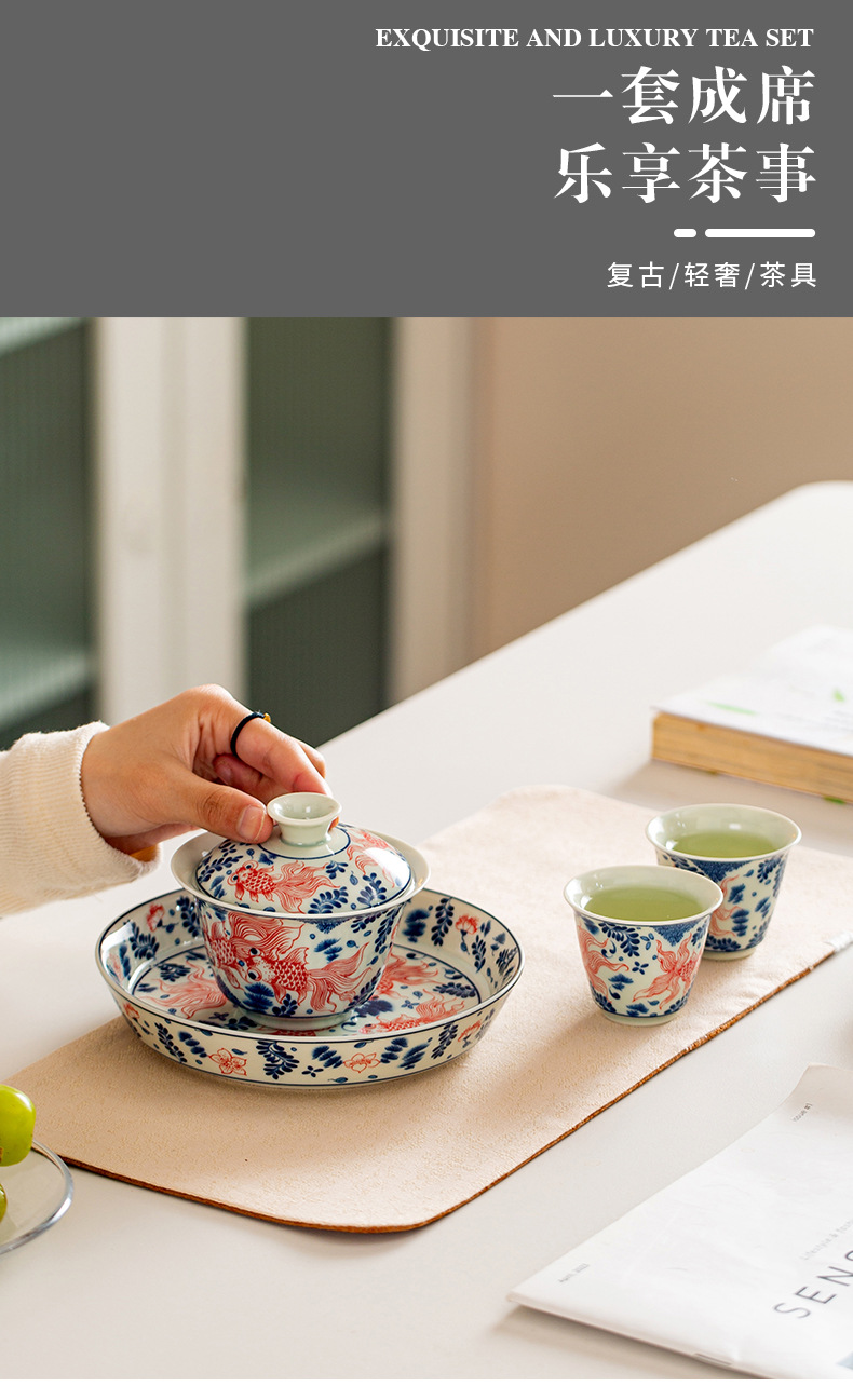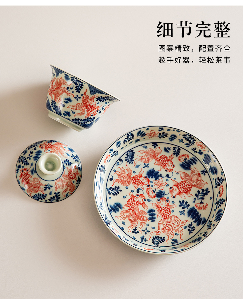 单个陶瓷三才盖碗仿古青花功夫茶具带盖大号泡茶碗高档可悬停套装