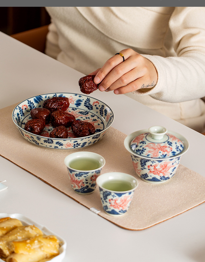Bộ ấm chén trà Kung Fu cổ điển men gốm Sancai phủ men xanh trắng, có nắp, chén lớn, cao cấp, có thể để trên bàn