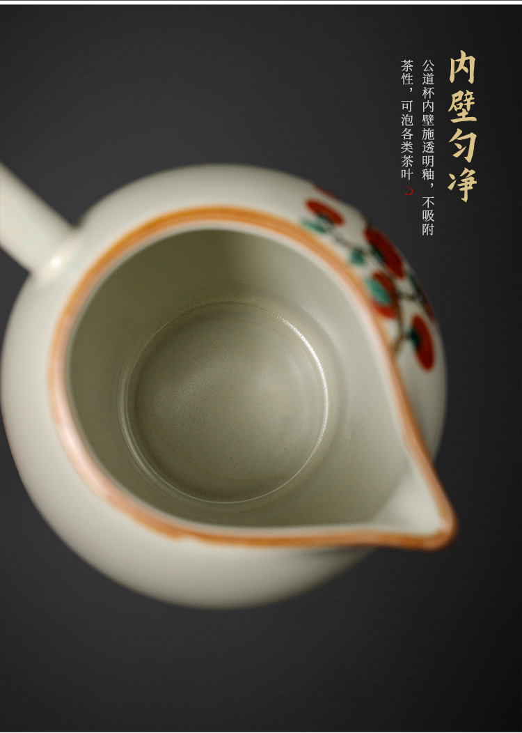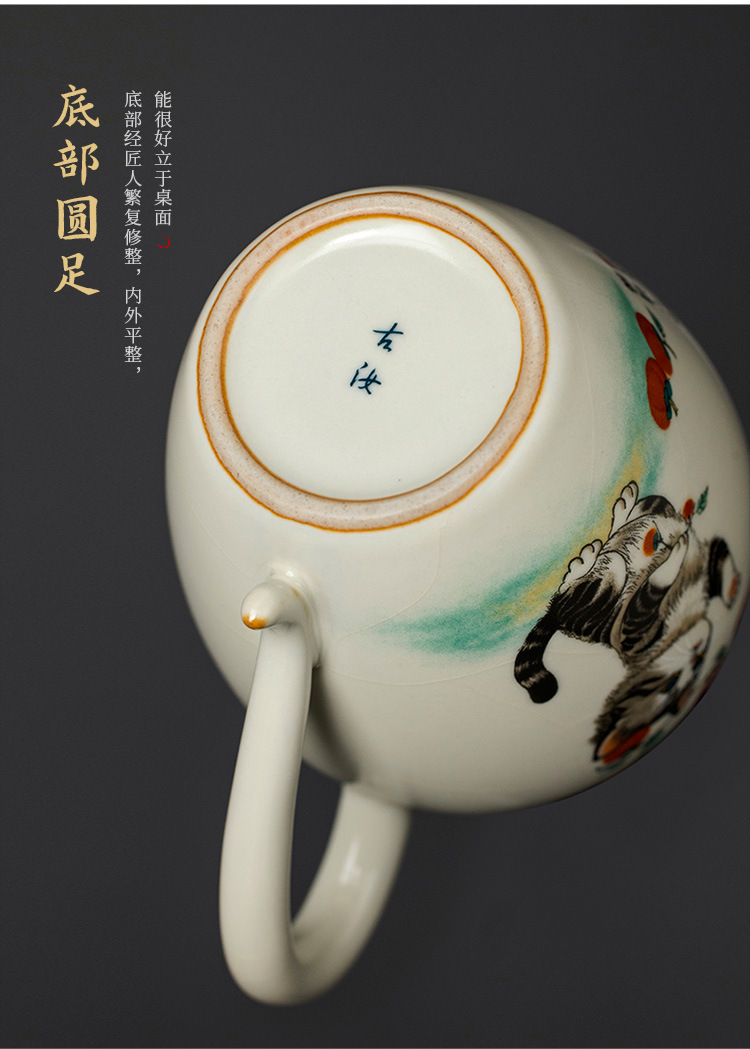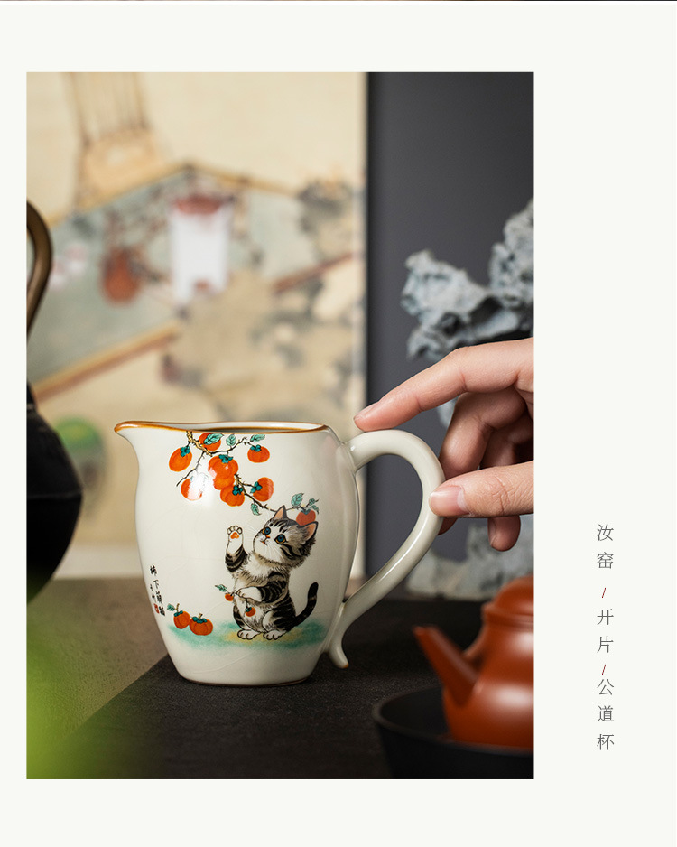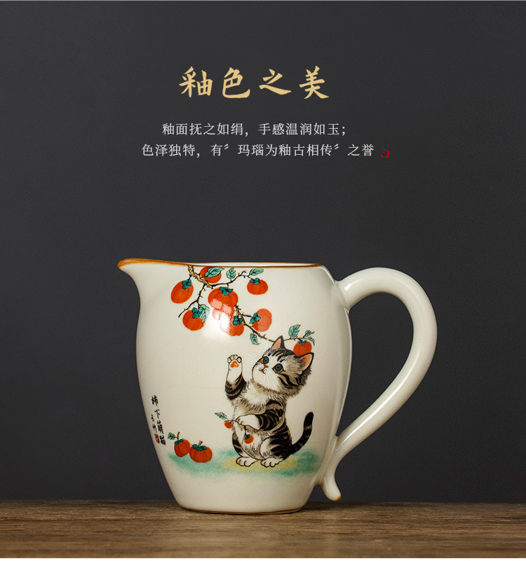 - Bộ ấm chén trà Kung Fu gốm sứ màu be Ru Kiln Persimmon mèo dễ thương, chén trà đơn, chia trà.