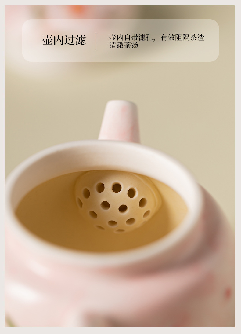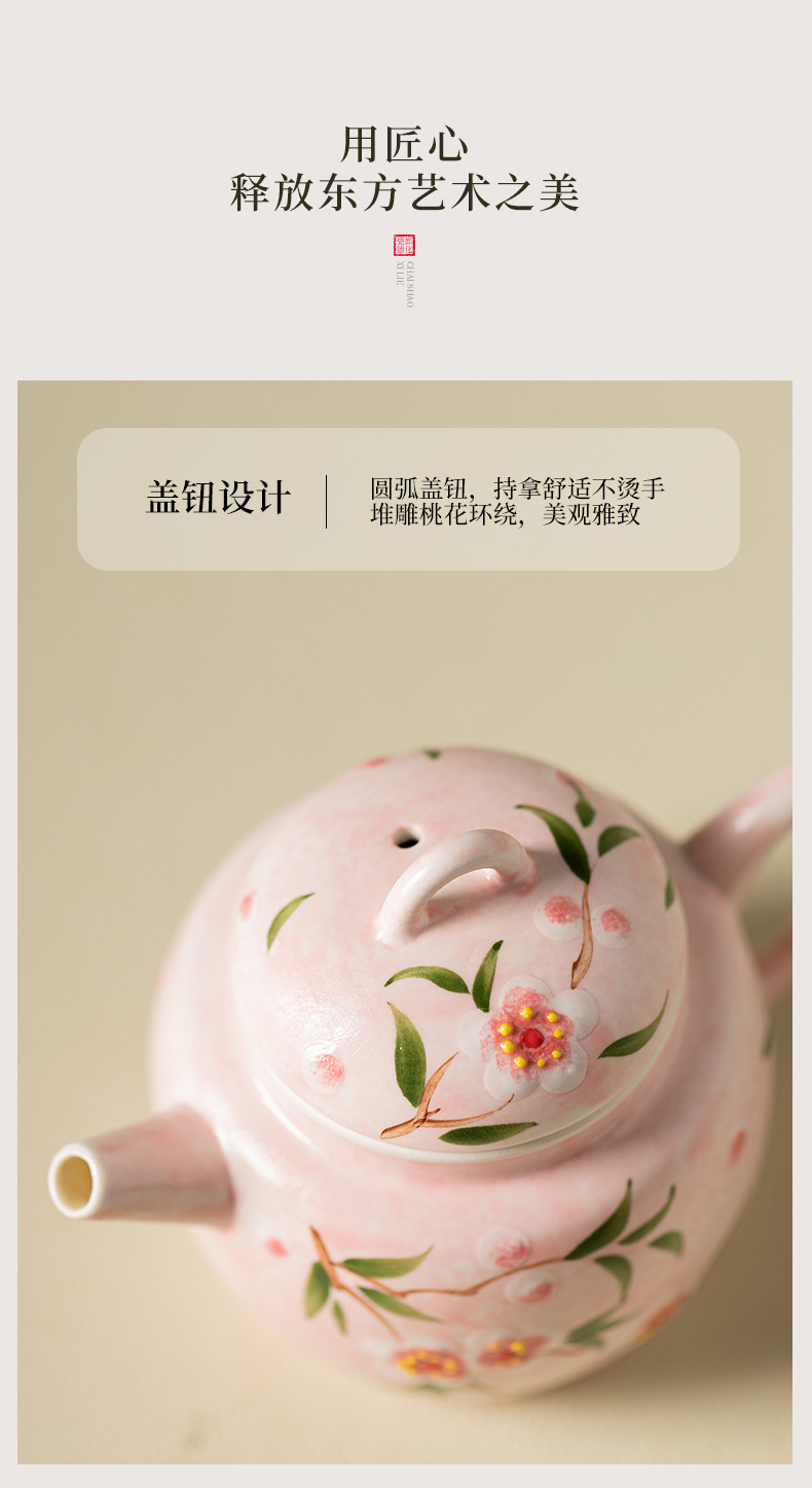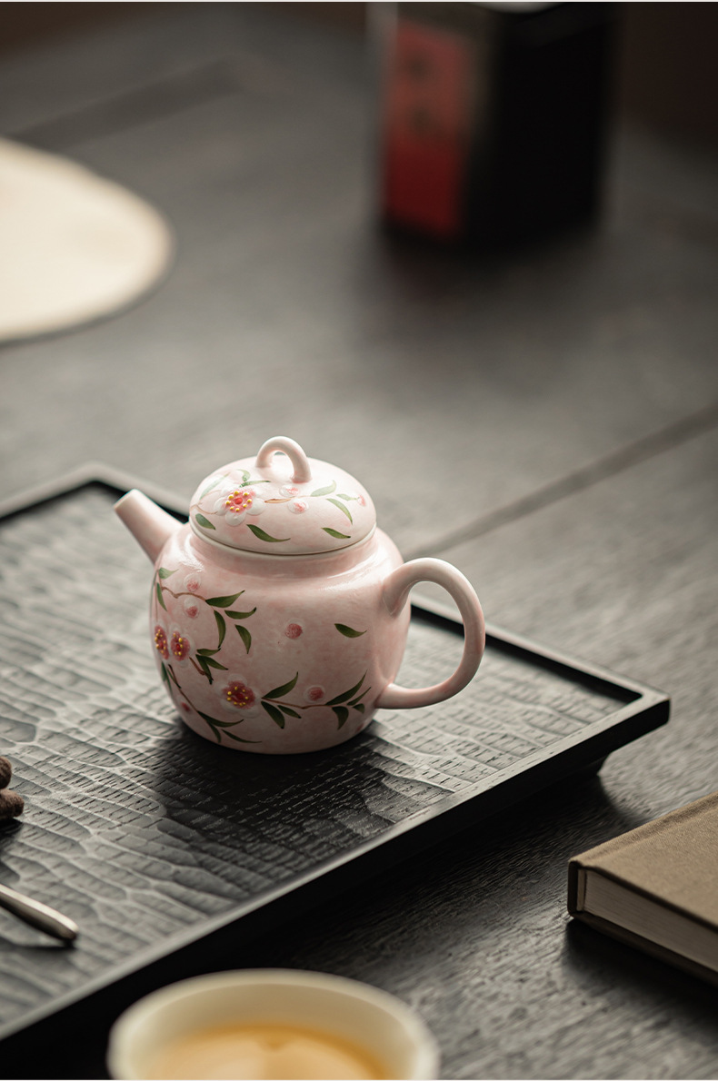 - Bộ ấm chén trà Kung Fu gốm sứ nhỏ họa tiết hoa đào vẽ tay, hộp quà tặng