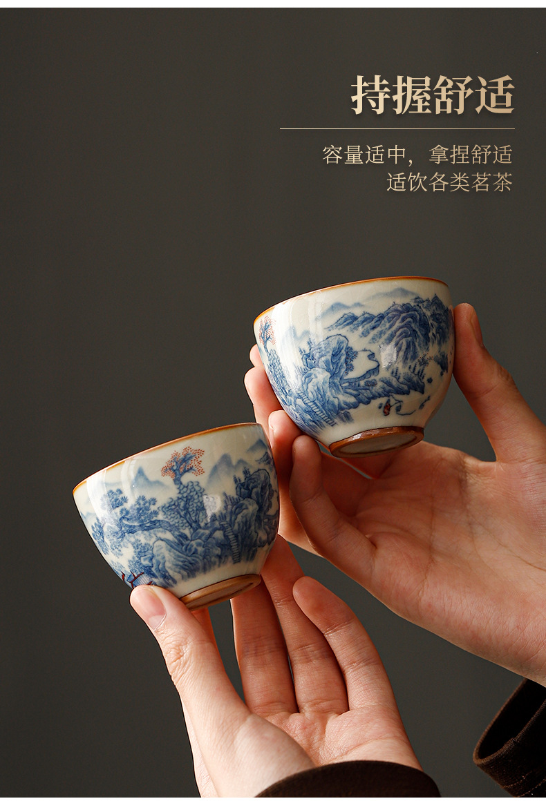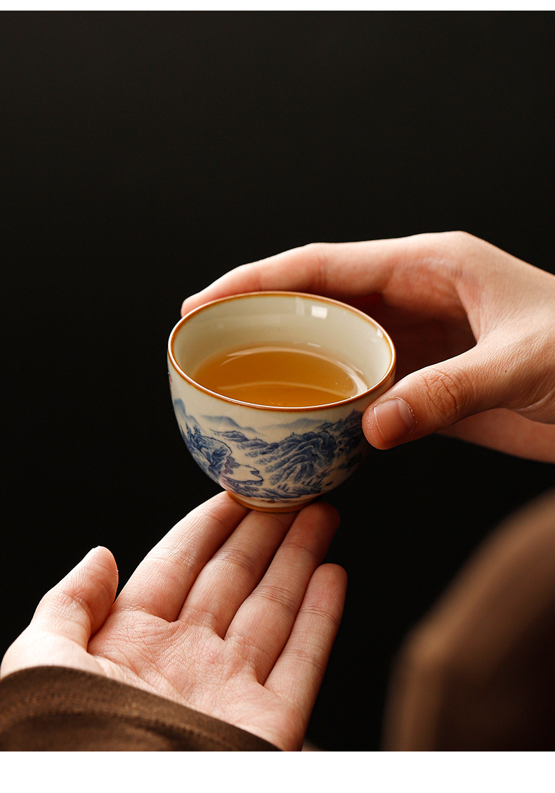 - Bộ ấm chén trà Kung Fu hoa Ruyao nhỏ, một ấm bốn chén, dùng cho nhà ở, khách sạn, kiểu cổ điển Trung Hoa, màu xanh trắng.