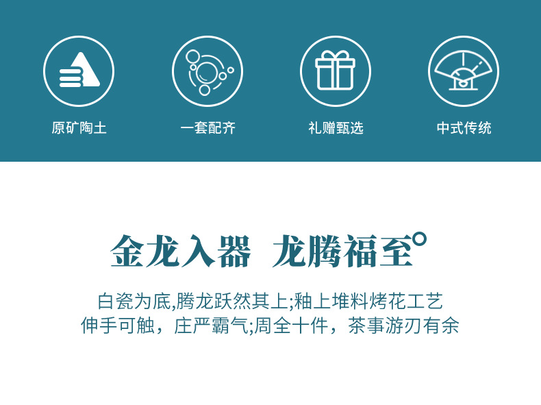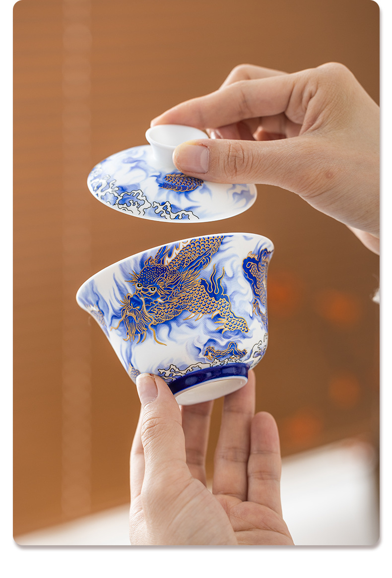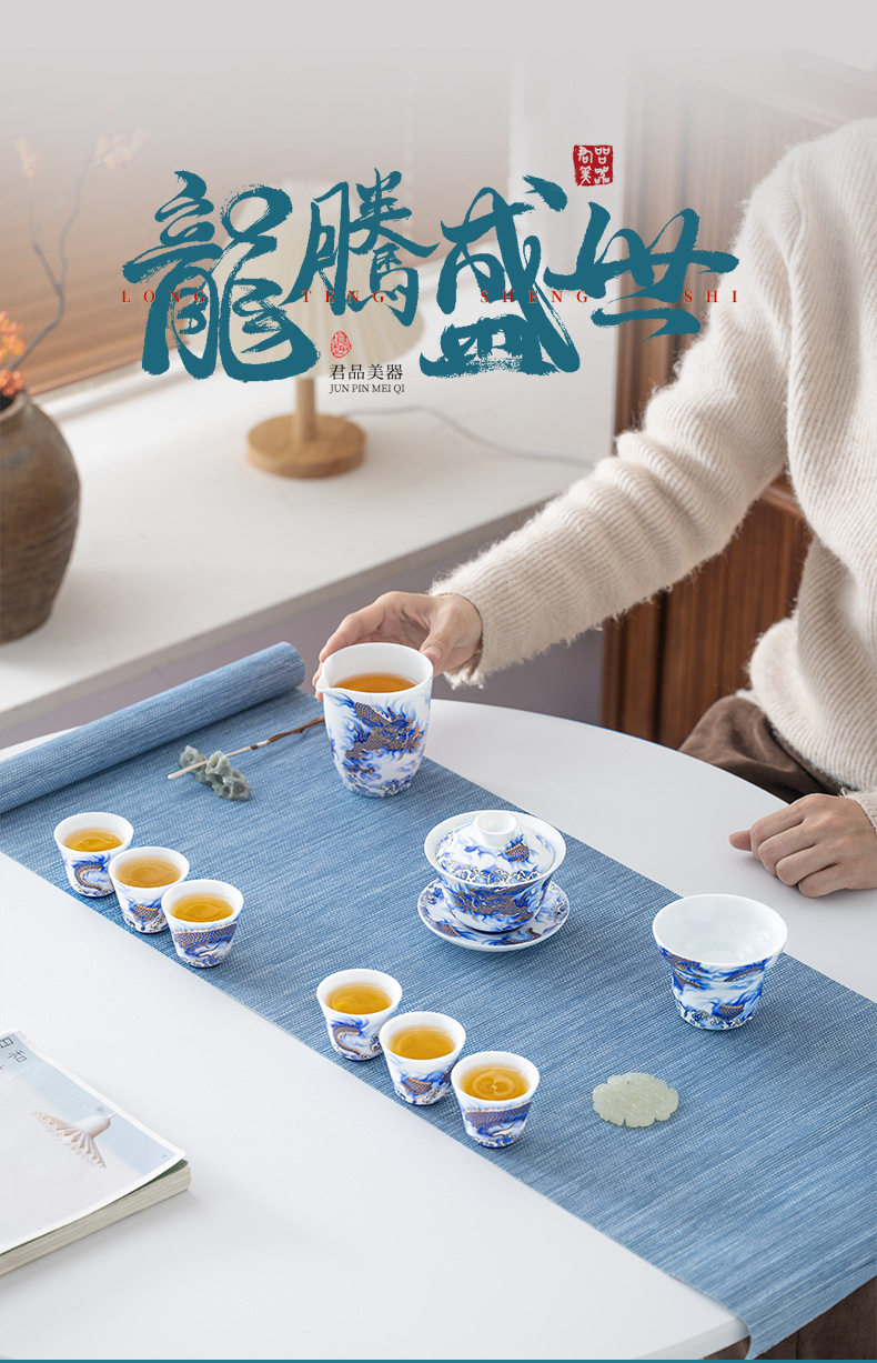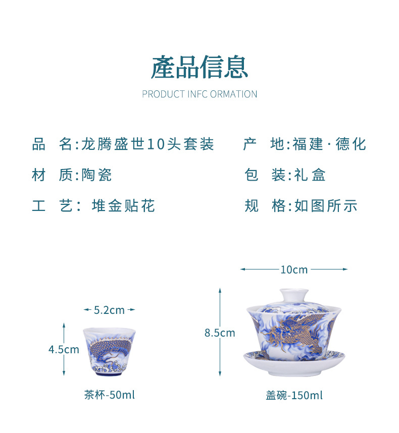 - Bộ ấm chén trà Kung Fu Longteng Shengshi Dingyao gốm sứ tráng men, hộp quà tặng, quà lưu niệm doanh nghiệp