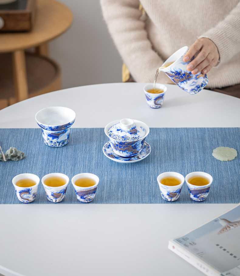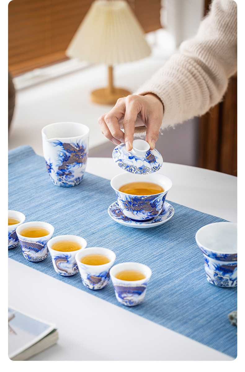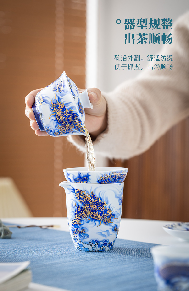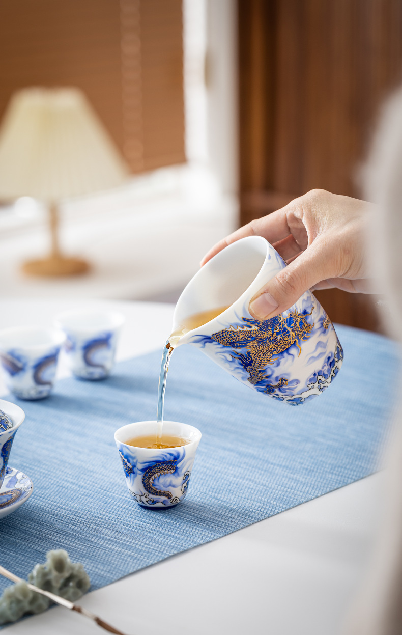 - Bộ ấm chén trà Kung Fu Longteng Shengshi Dingyao gốm sứ tráng men, hộp quà tặng, quà lưu niệm doanh nghiệp