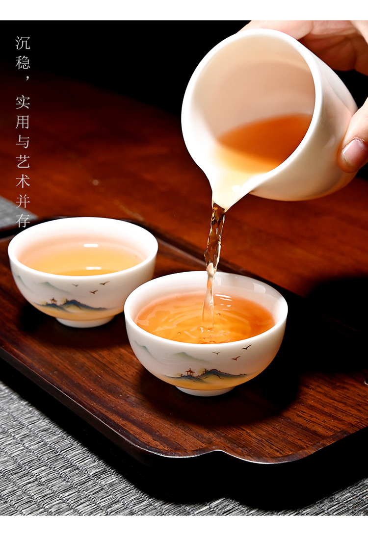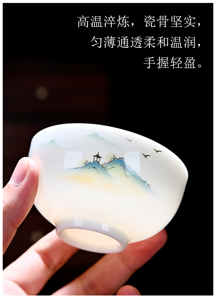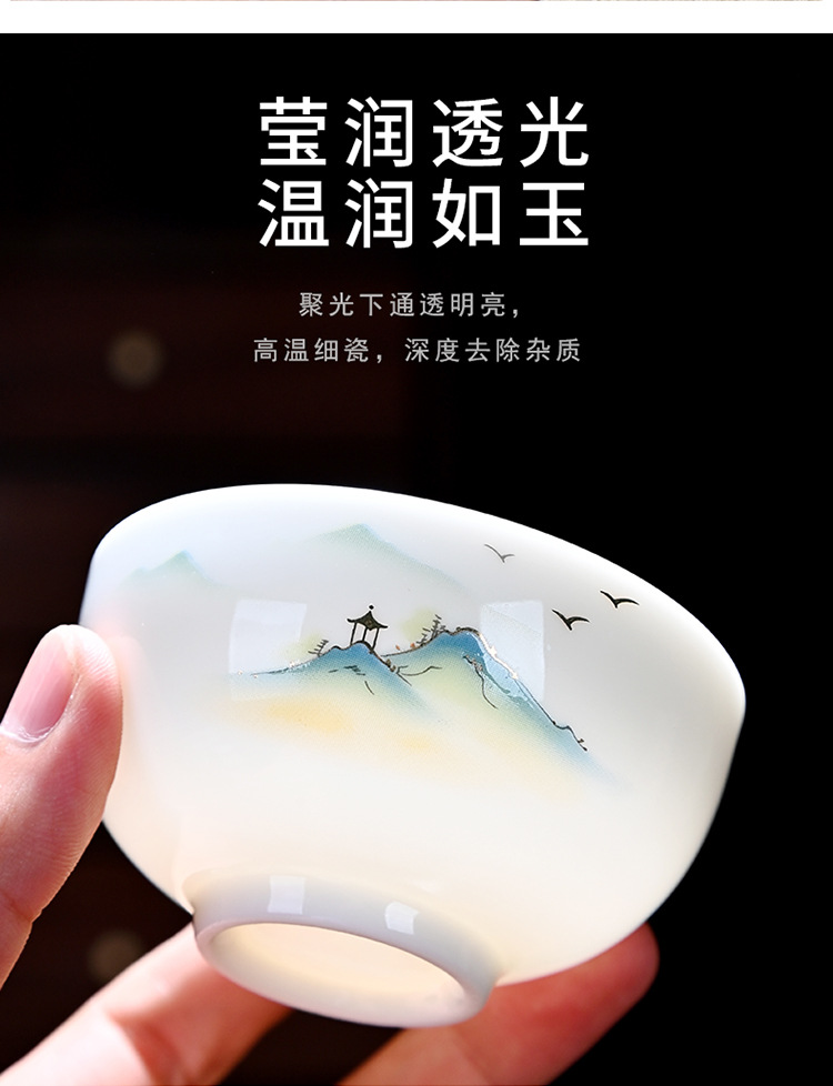 Bộ ấm chén trà Kung Fu sứ trắng, chén hình nón sứ giả ngọc, dùng trong nhà, chén nhỏ dùng để ngâm trà.