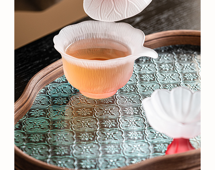 - Bộ ấm chén trà Kung Fu thủy tinh hồng dành cho gia đình nữ, chịu nhiệt, tinh xảo, kèm tô phủ, chén công cộng, chén trà, kiểu mới 2025