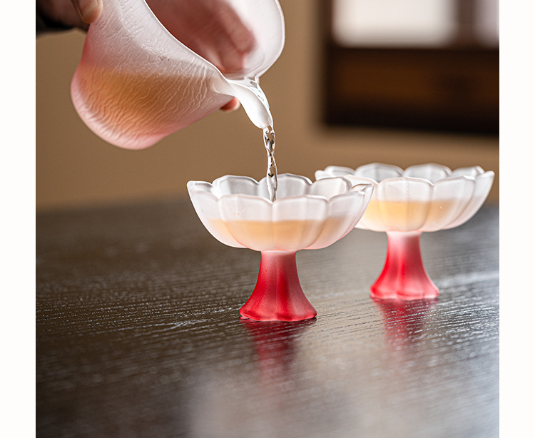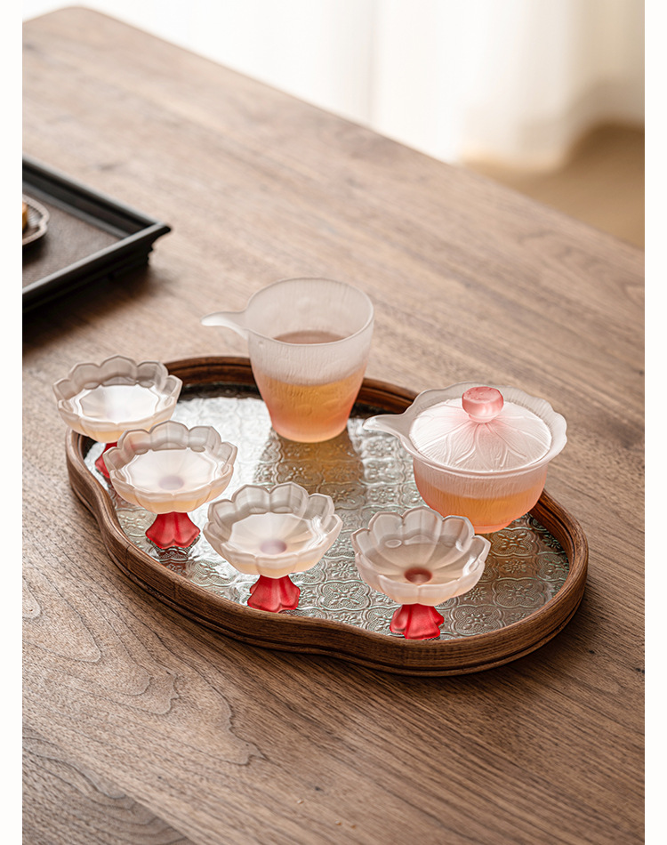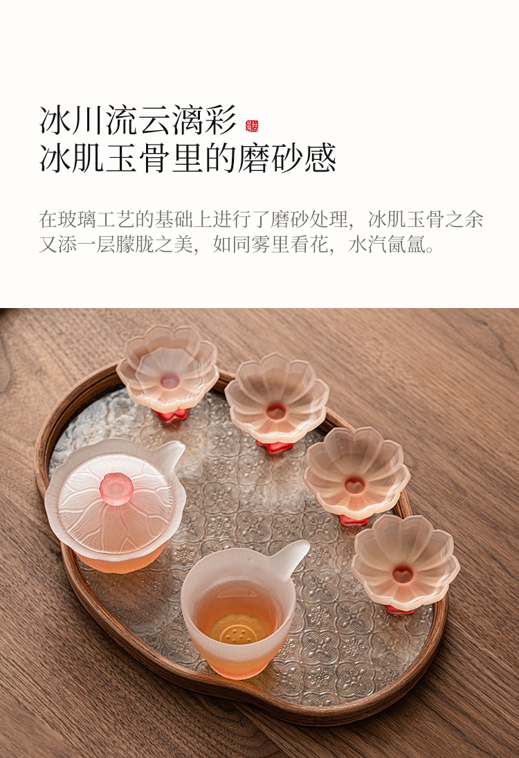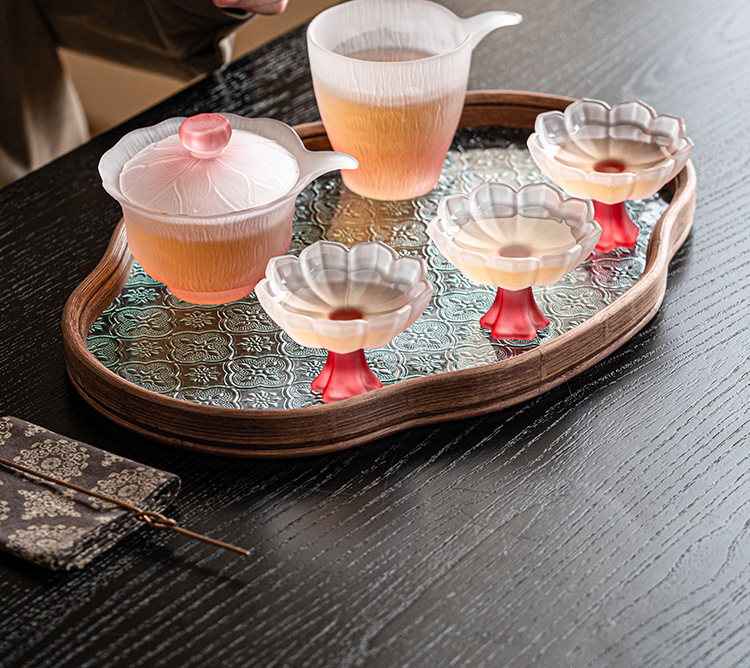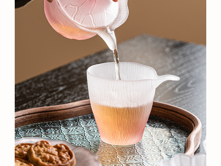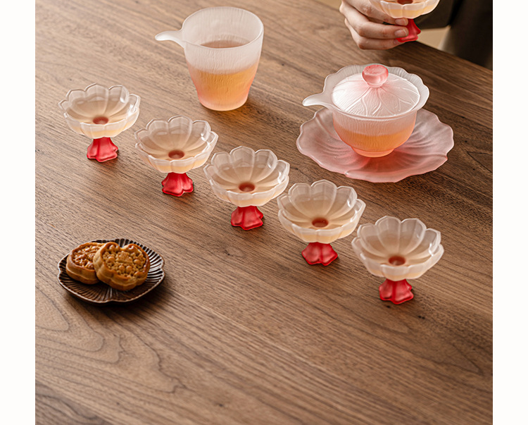 Bộ ấm chén trà Kung Fu thủy tinh hồng dành cho gia đình nữ, chịu nhiệt, tinh xảo, kèm tô phủ, chén công cộng, chén trà, kiểu mới 2025