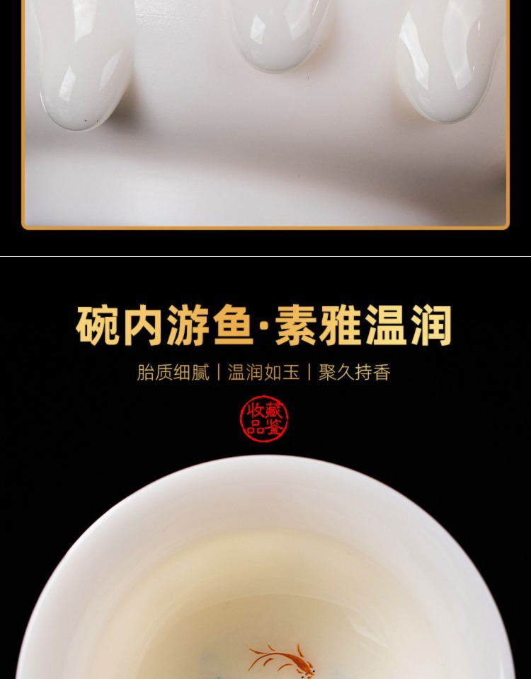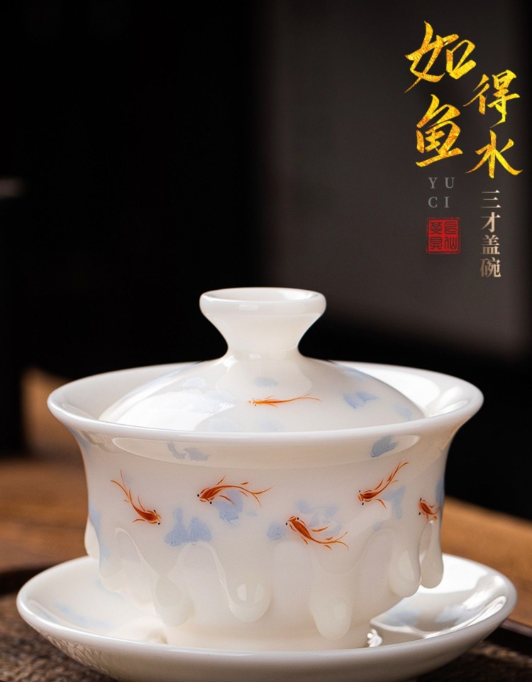 Bộ ấm chén trà sứ trắng Dehua cao cấp, họa tiết cừu mỡ ngọc bích Sancai, quà tặng của bậc thầy Xu Fukun.
