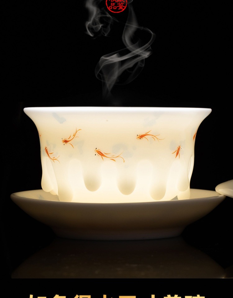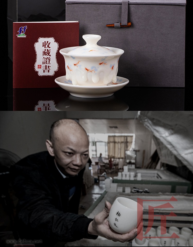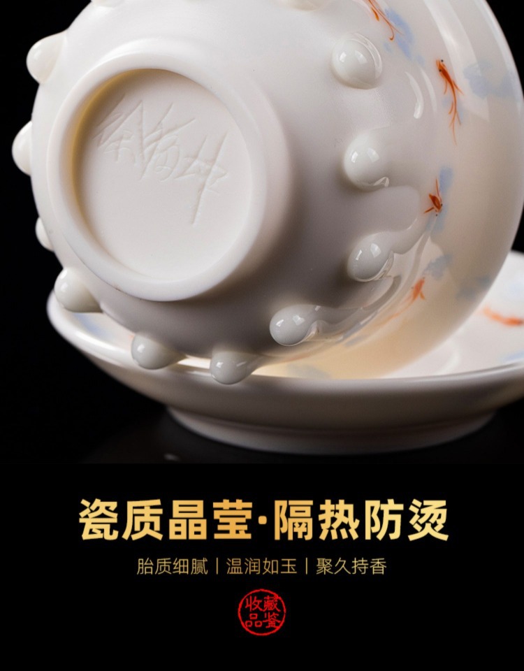 - Bộ ấm chén trà sứ trắng Dehua cao cấp, họa tiết cừu mỡ ngọc bích Sancai, quà tặng của bậc thầy Xu Fukun.