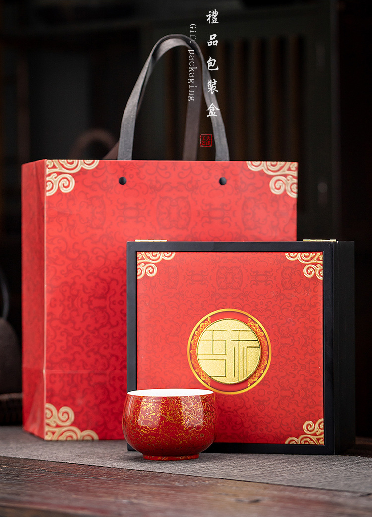 Bộ ấm chén trà Suyuan Lacquerware, chất liệu sơn mài Phúc Châu, kiểu da tê giác, làm thủ công, chén trà Dehua, chất liệu ngọc béo cừu, sứ trắng cao cấp, hộp quà tặng