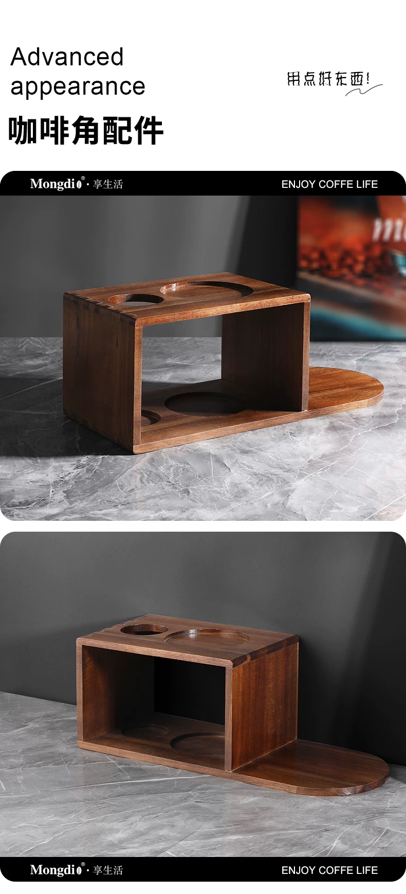 - Bộ ấm pha cà phê moka van đôi Mongdio, ấm pha cà phê moka, ấm pha cà phê espresso, giá đỡ bằng gỗ