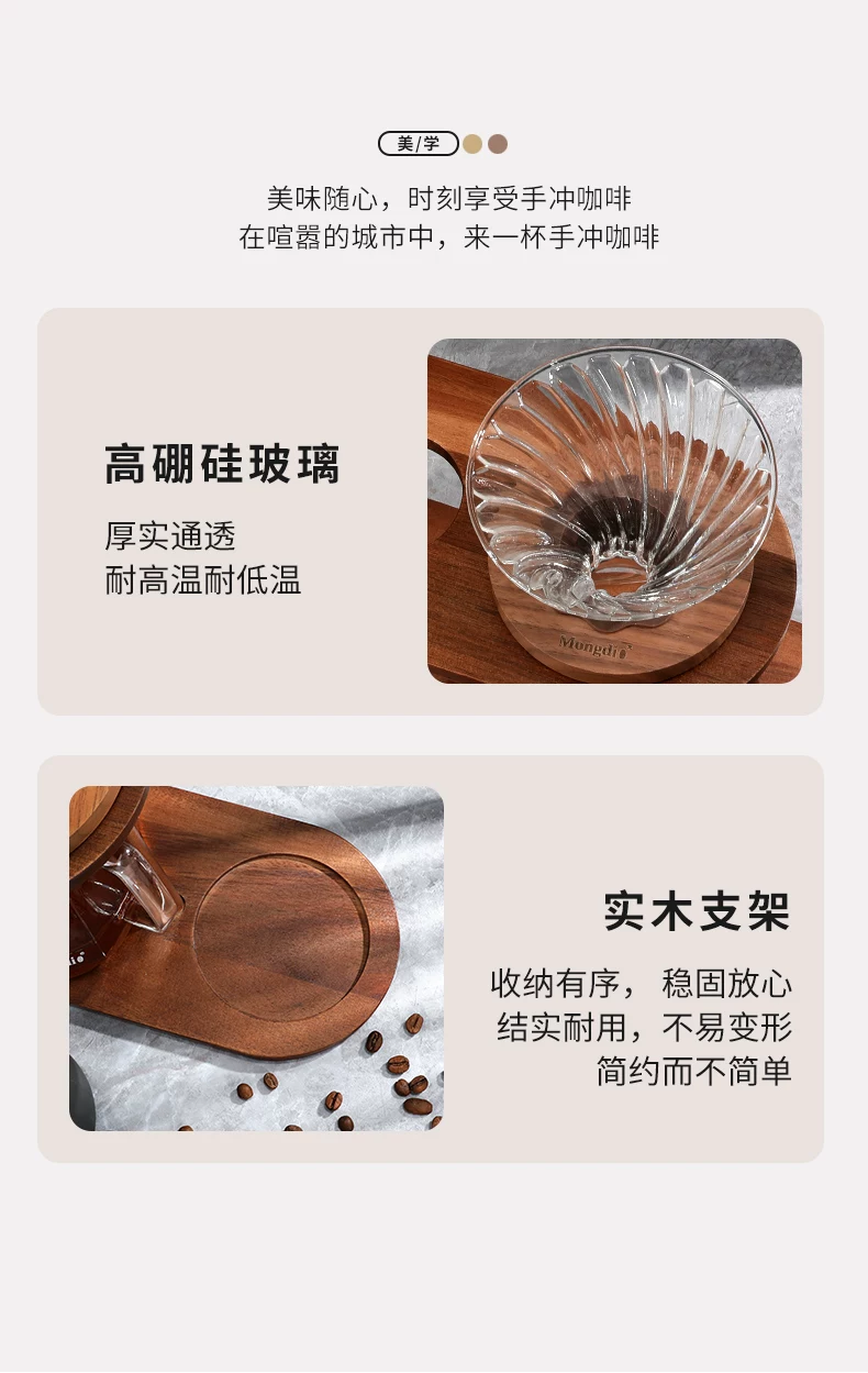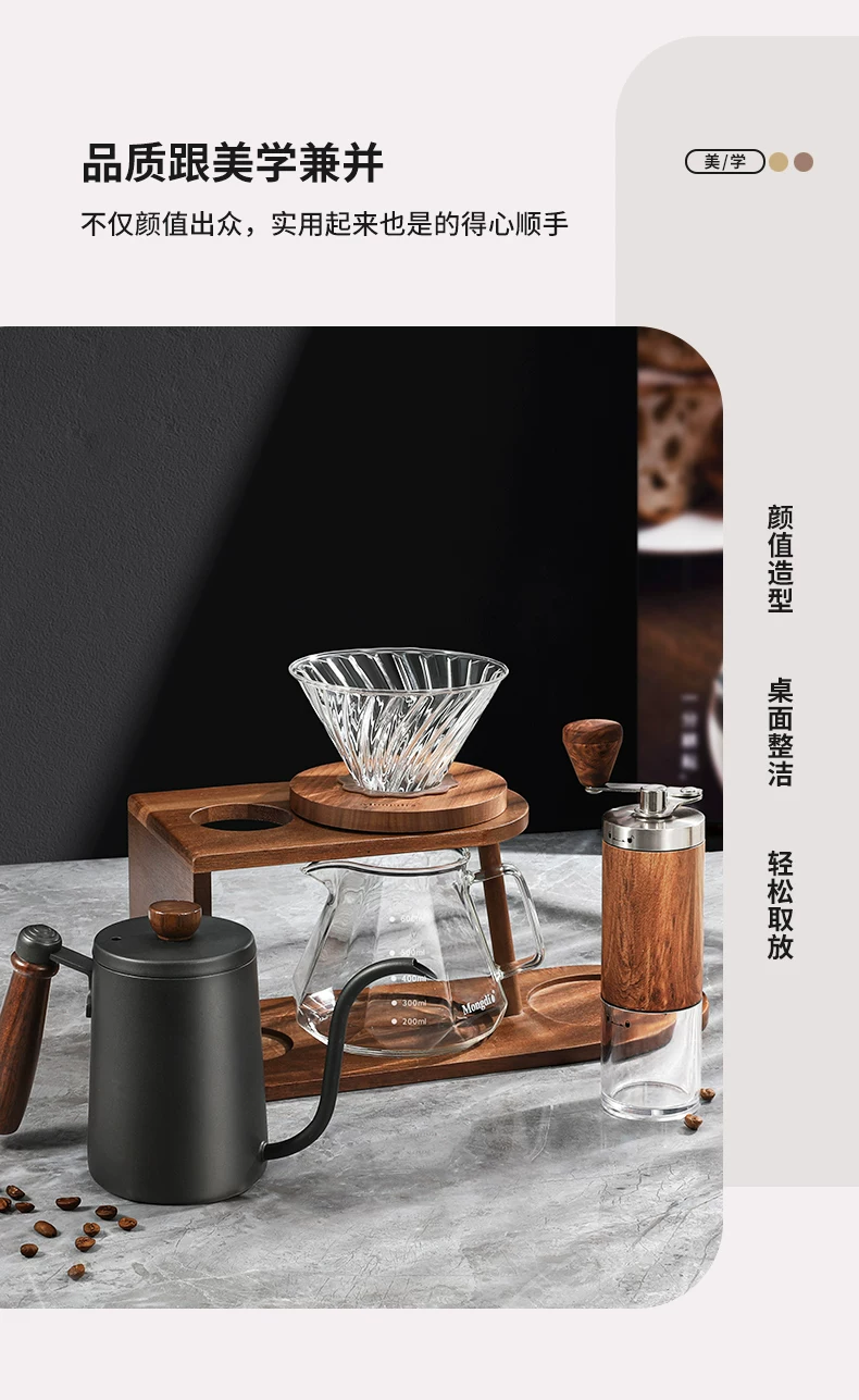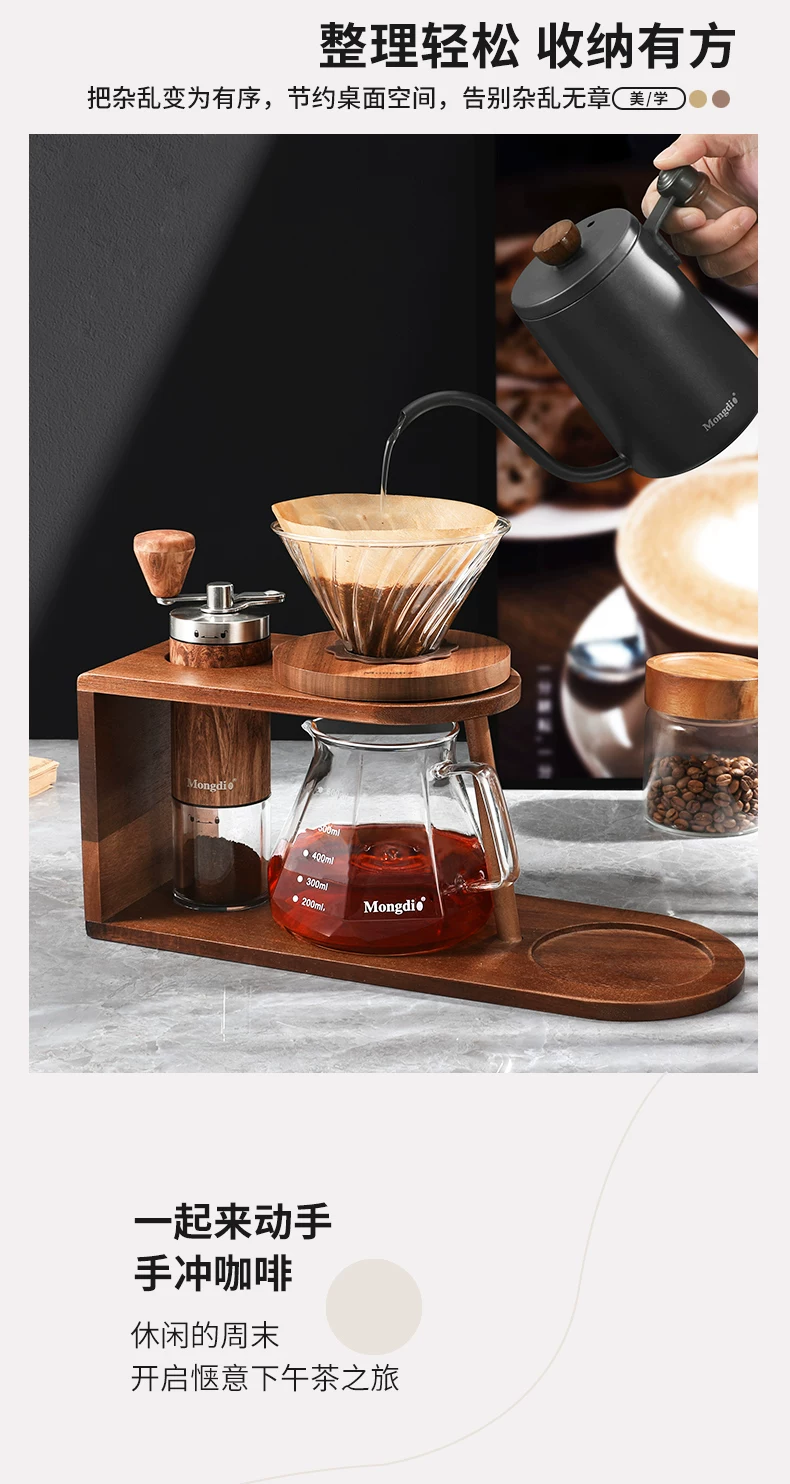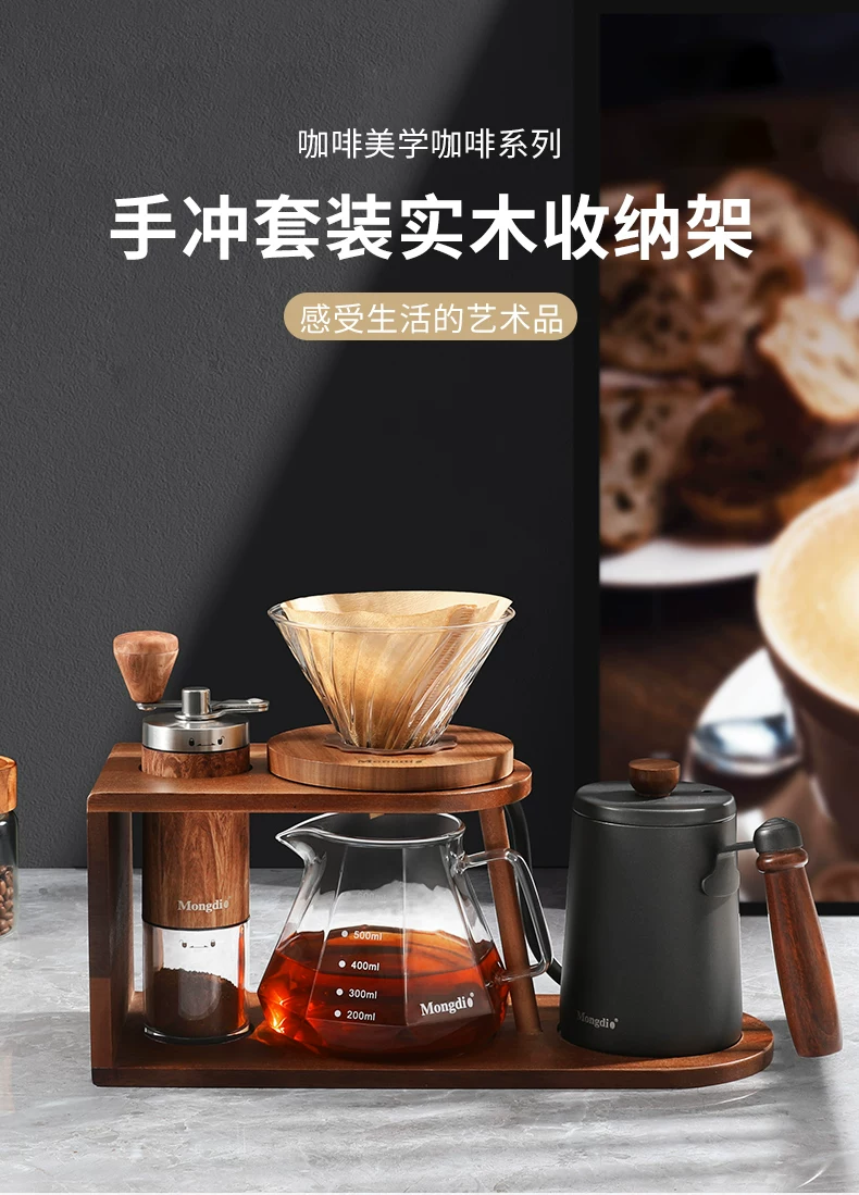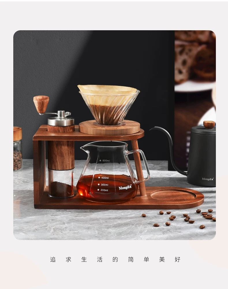 Bộ ấm pha cà phê Mongdio, máy xay cà phê cầm tay, giá đỡ bằng gỗ quay tay, ấm pha cà phê, dụng cụ pha cà phê