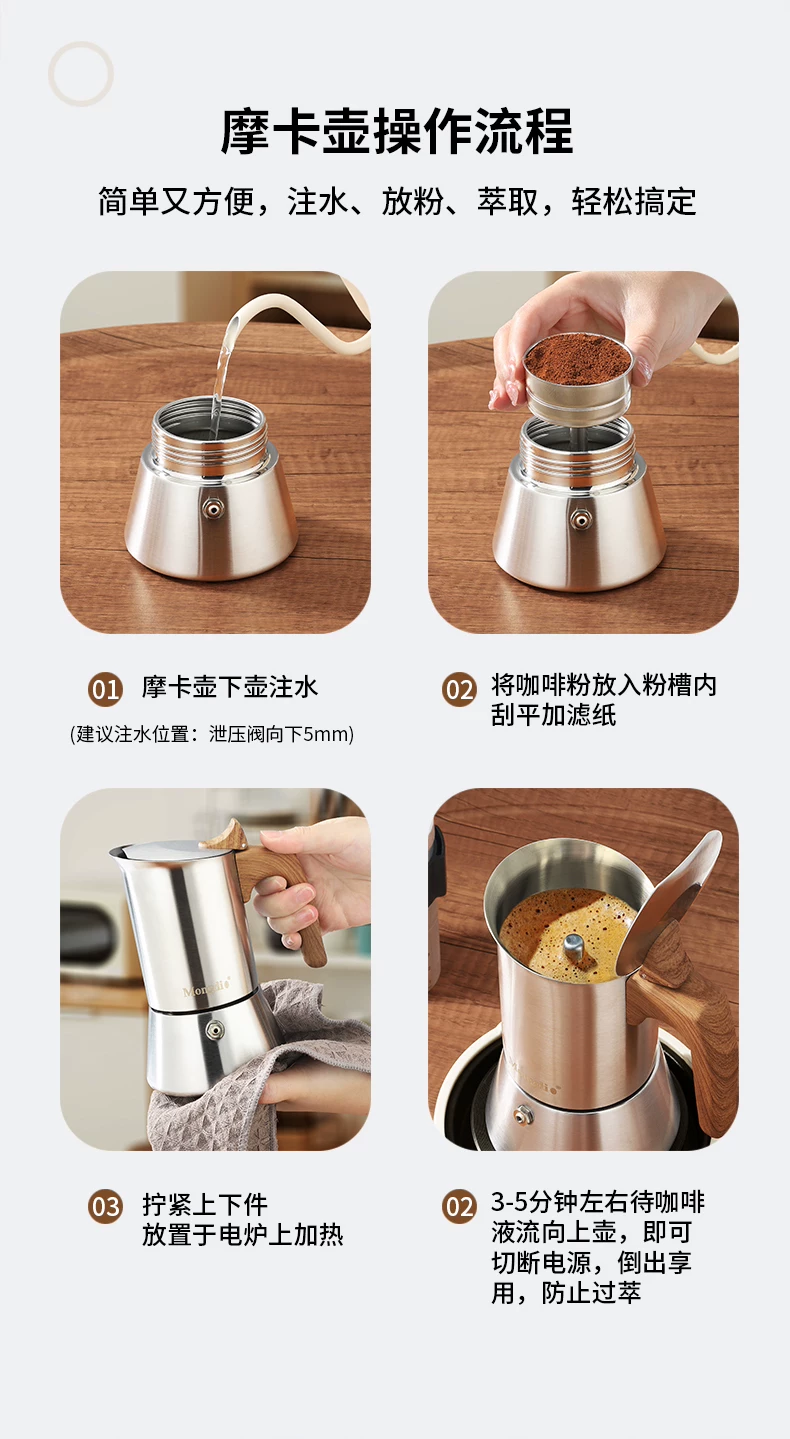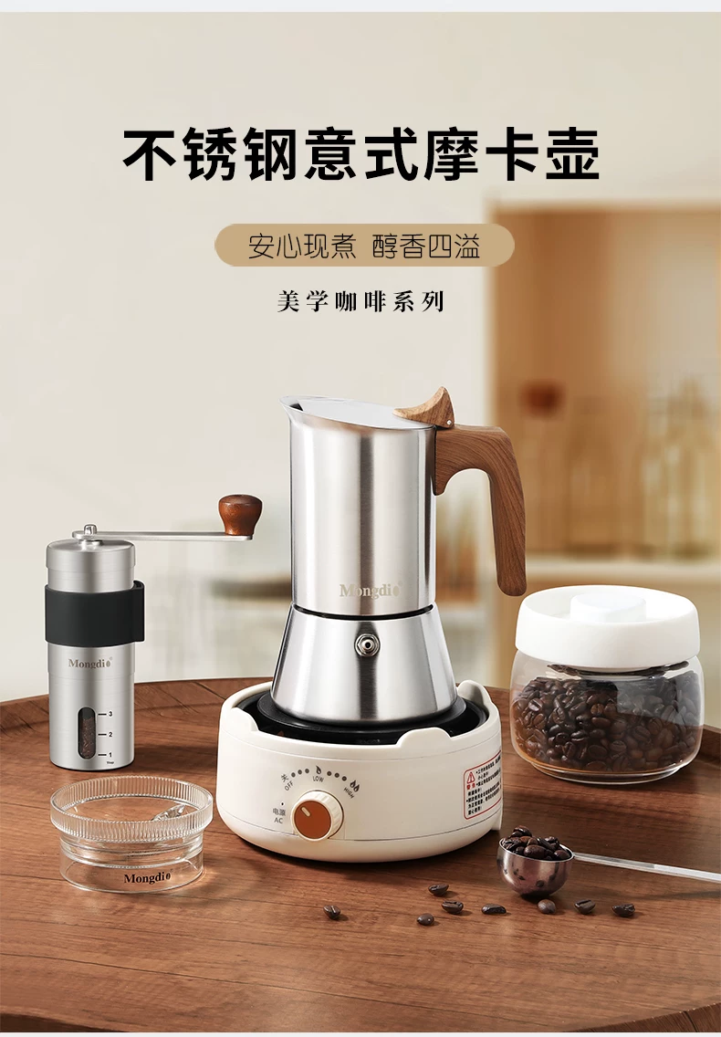 - Bộ ấm pha cà phê Mongdio Moka bằng thép không gỉ, ấm pha cà phê Moka, ấm pha cà phê espresso, ấm pha cà phê thủ công
