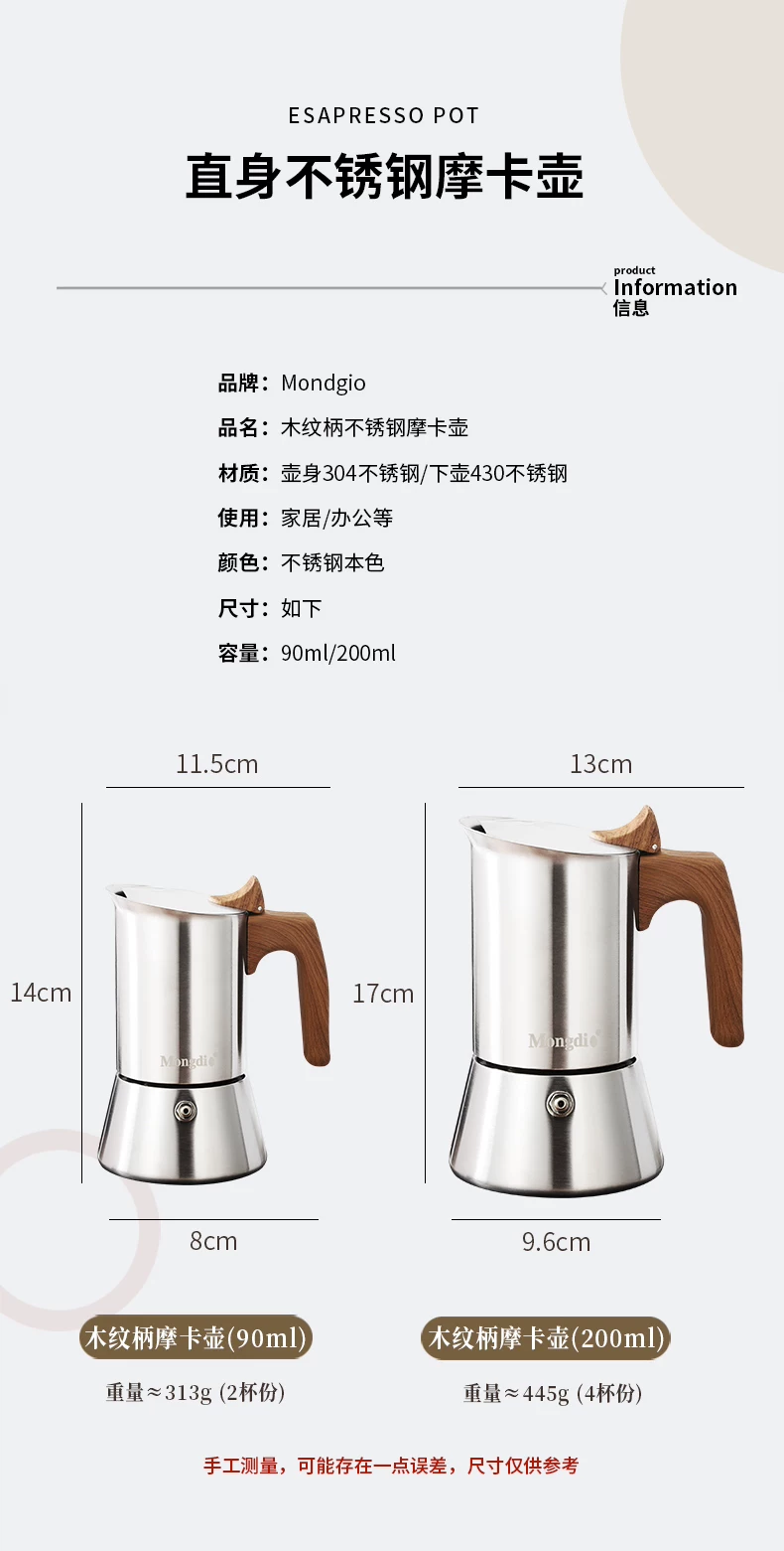 Bộ ấm pha cà phê Mongdio Moka bằng thép không gỉ, ấm pha cà phê Moka, ấm pha cà phê espresso, ấm pha cà phê thủ công