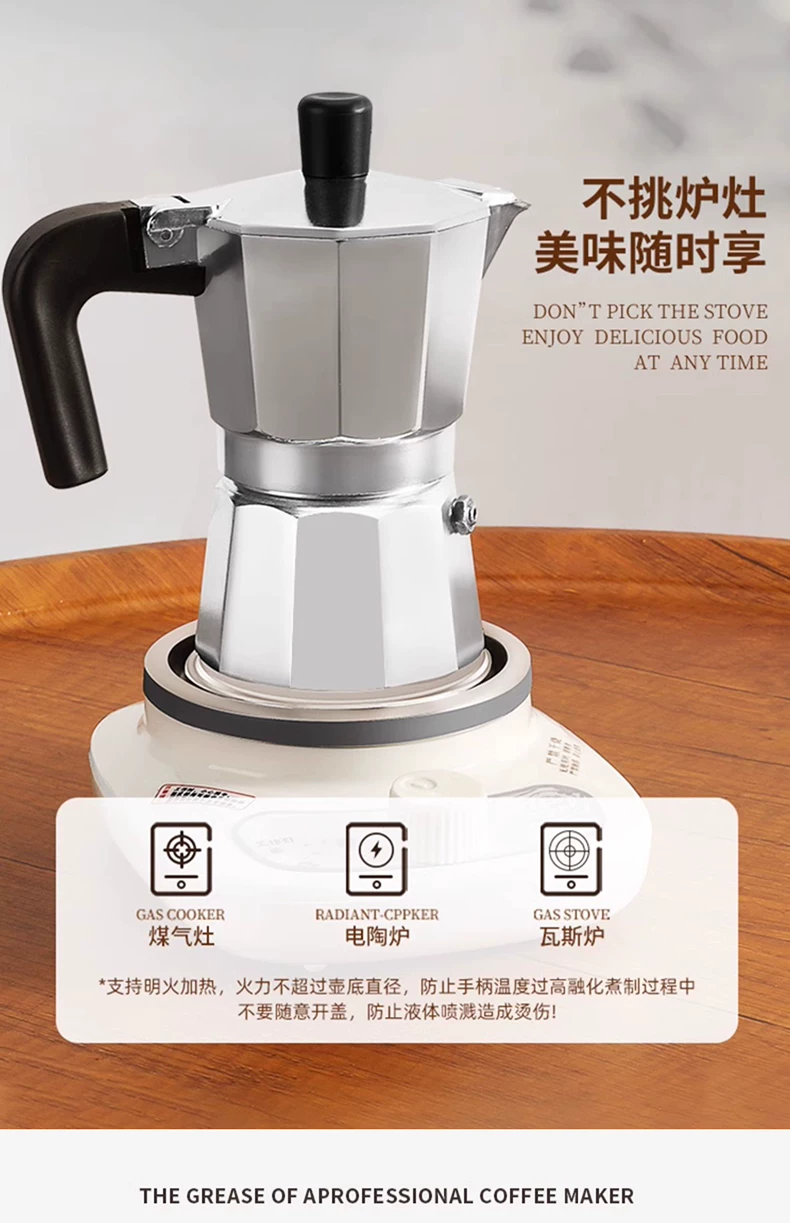 - Bộ ấm pha cà phê Mongdio Moka để pha cà phê tại nhà, máy pha cà phê espresso nhỏ để chiết xuất cà phê mocha.