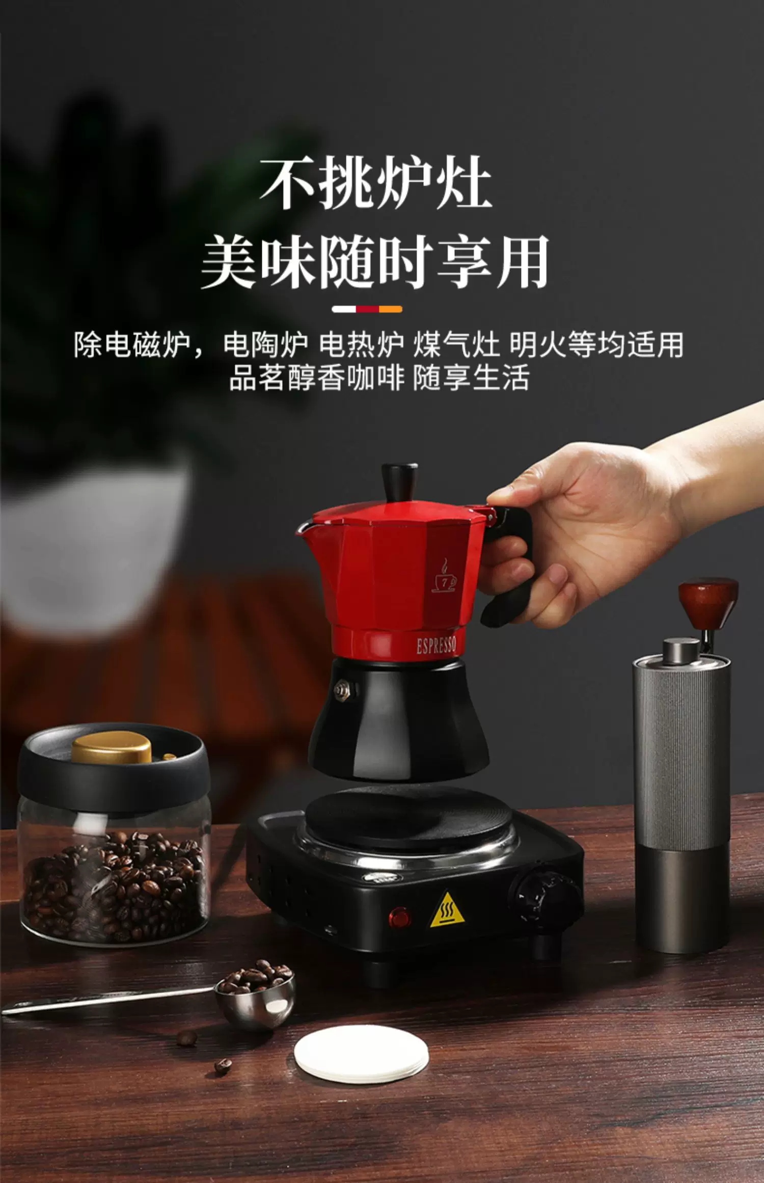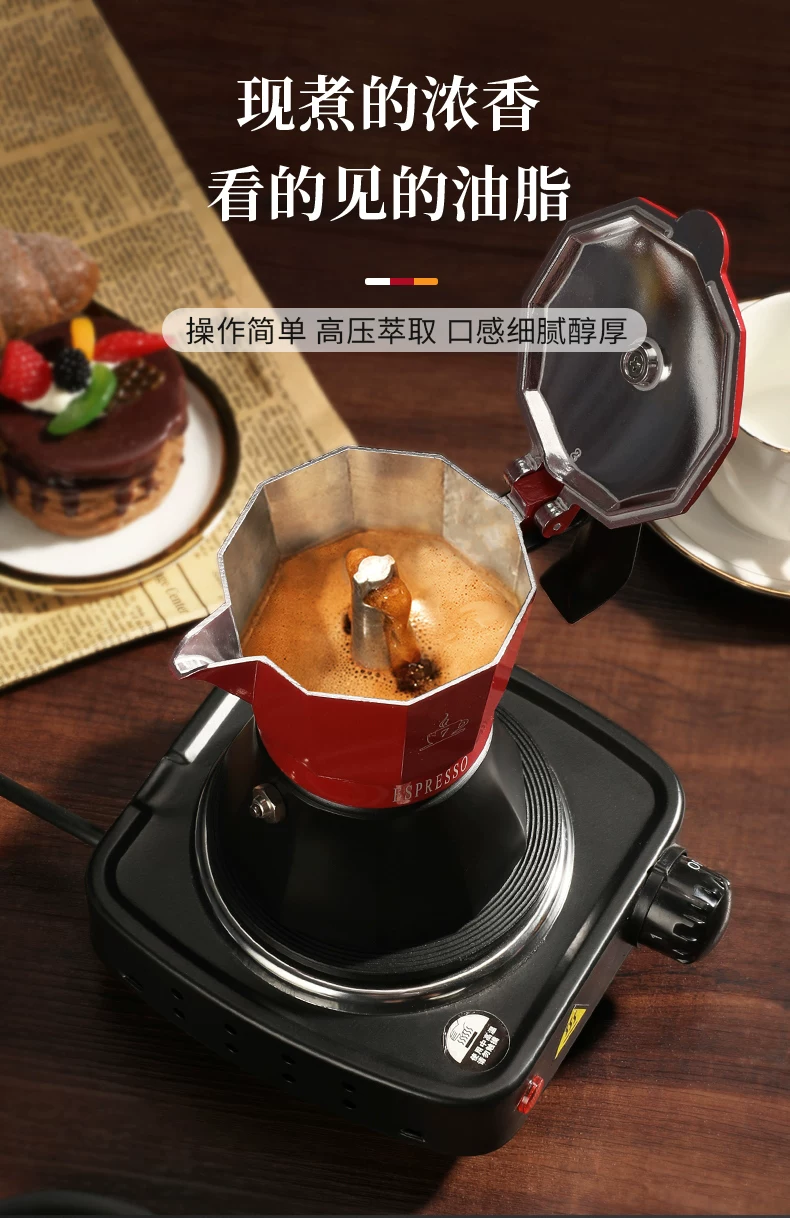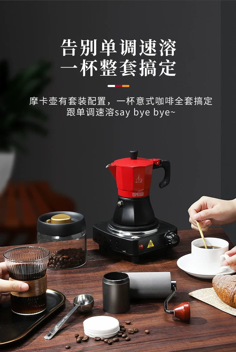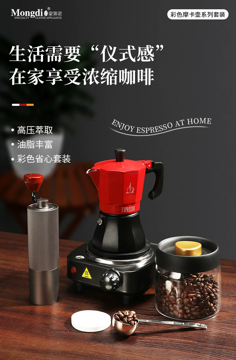 Bộ ấm pha cà phê Mongdio Moka dùng trong gia đình, máy pha cà phê espresso kiểu Ý, máy xay cà phê, bình pha cà phê thủ công