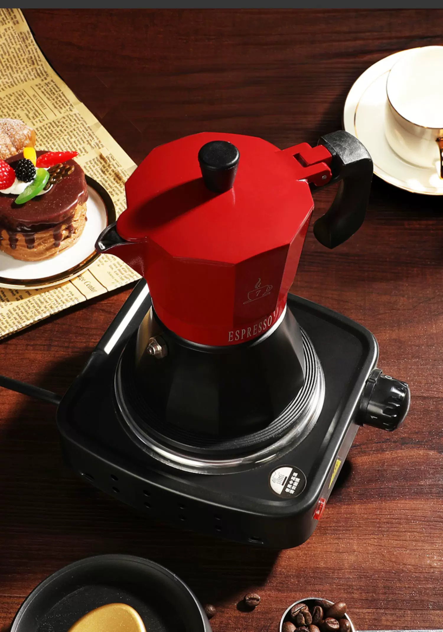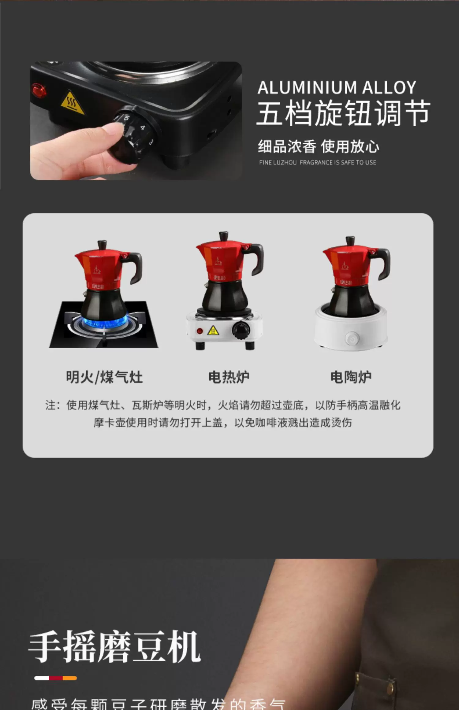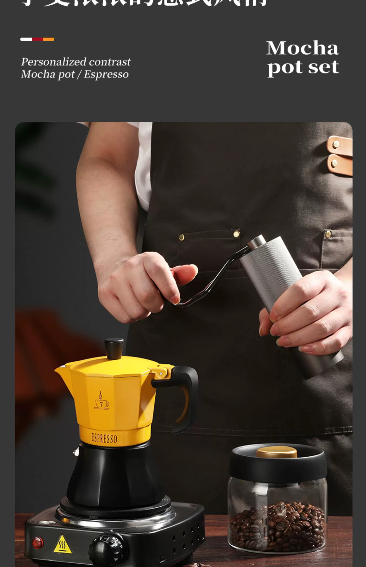 Bộ ấm pha cà phê Mongdio Moka dùng trong gia đình, máy pha cà phê espresso kiểu Ý, máy xay cà phê, bình pha cà phê thủ công
