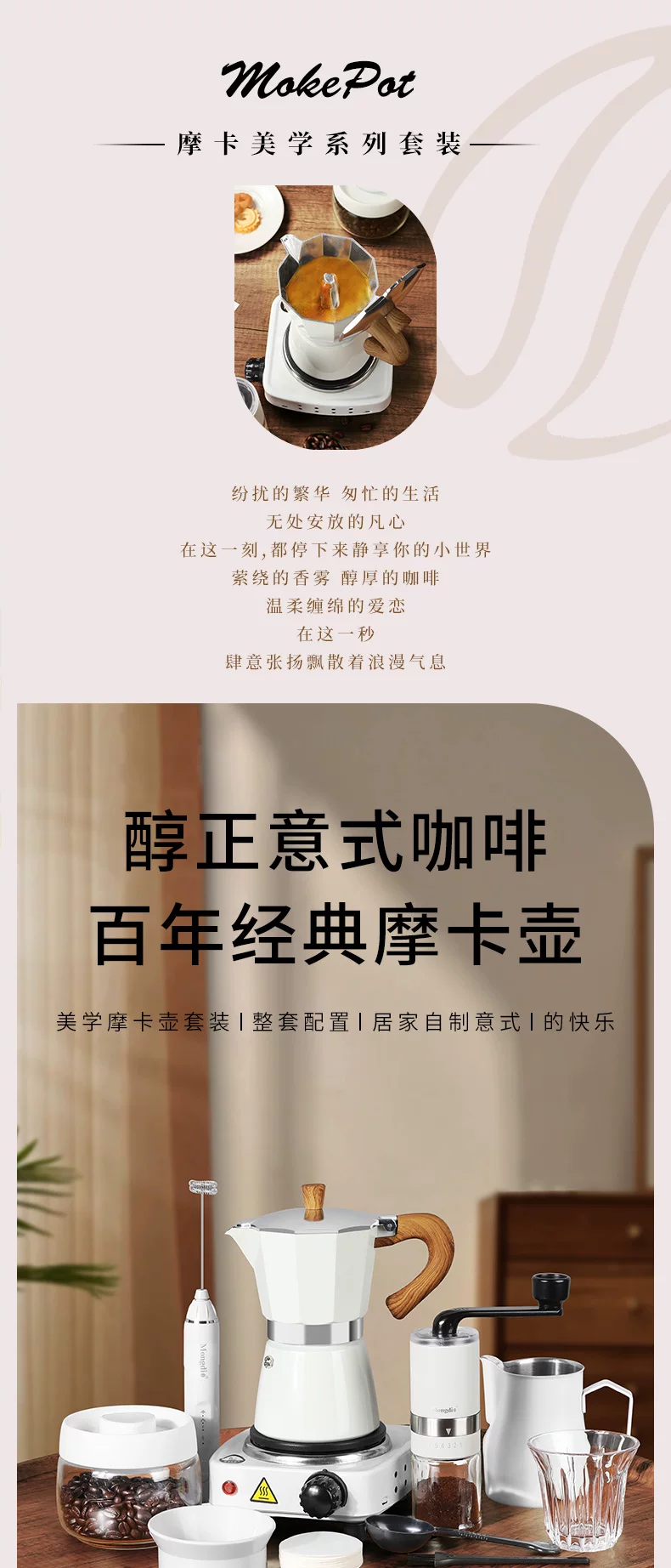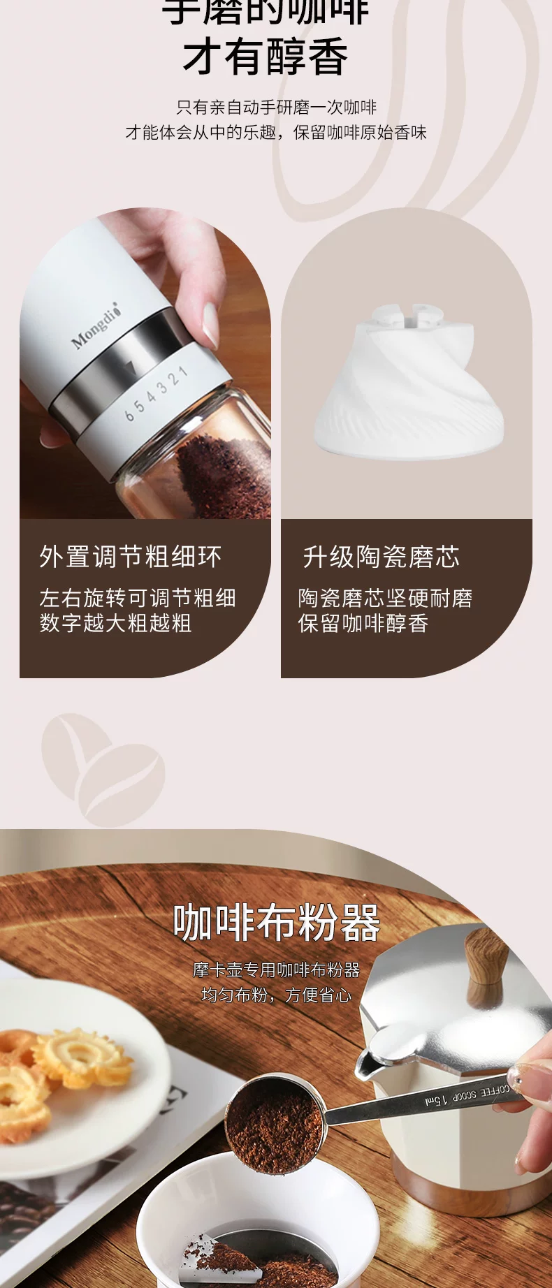Bộ ấm pha cà phê Mongdio Moka, máy pha cà phê kiểu Ý, máy xay cà phê cầm tay, máy pha cà phê gia đình, ấm pha cà phê thủ công, hộp quà tặng