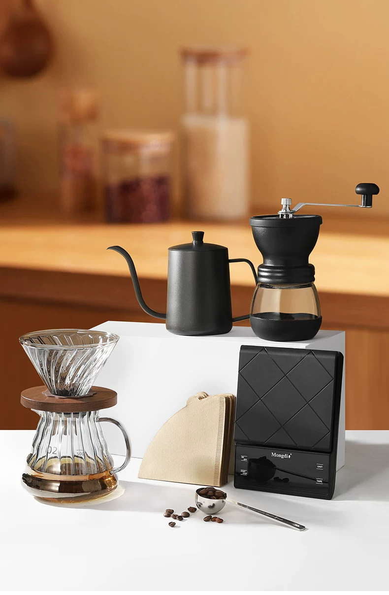 - Bộ ấm pha cà phê thủ công Mongdio, máy pha cà phê bằng tay, máy xay cà phê quay tay, bộ dụng cụ lọc cà phê