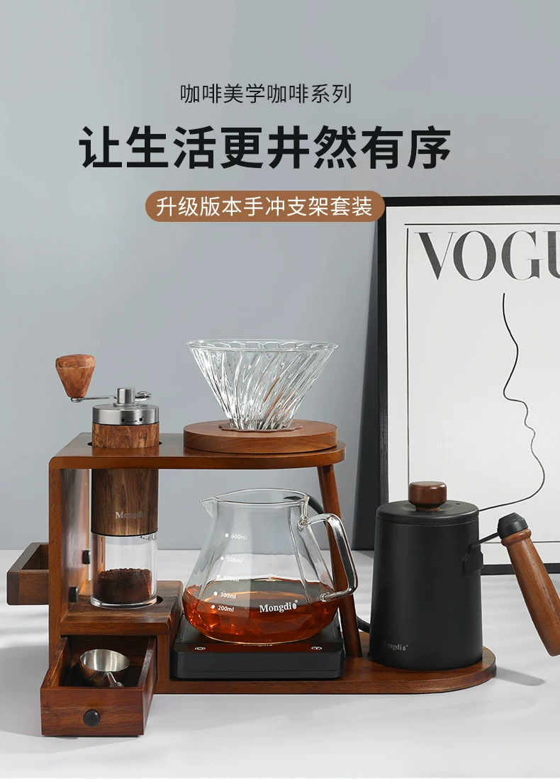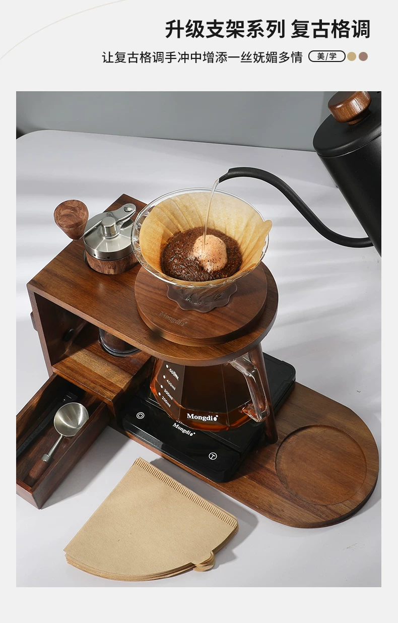 Bộ ấm pha cà phê thủ công Mongdio, máy pha cà phê bằng tay, thiết bị pha cà phê bằng tay quay tay, giá đựng đồ trọn bộ