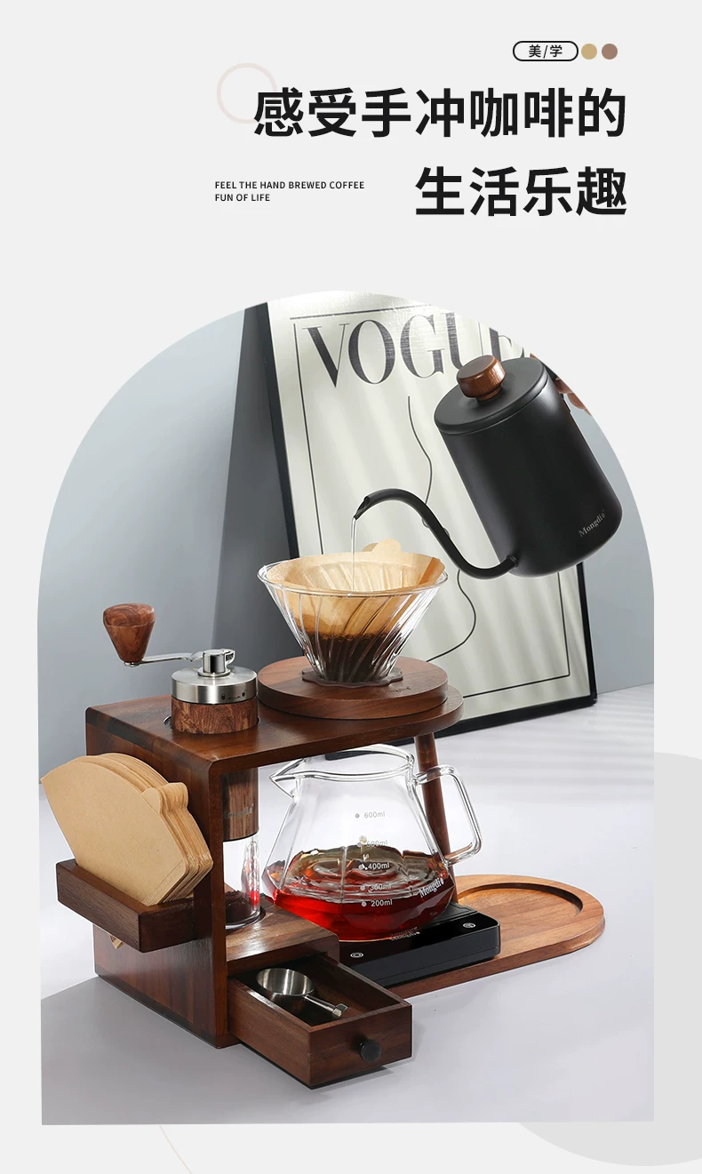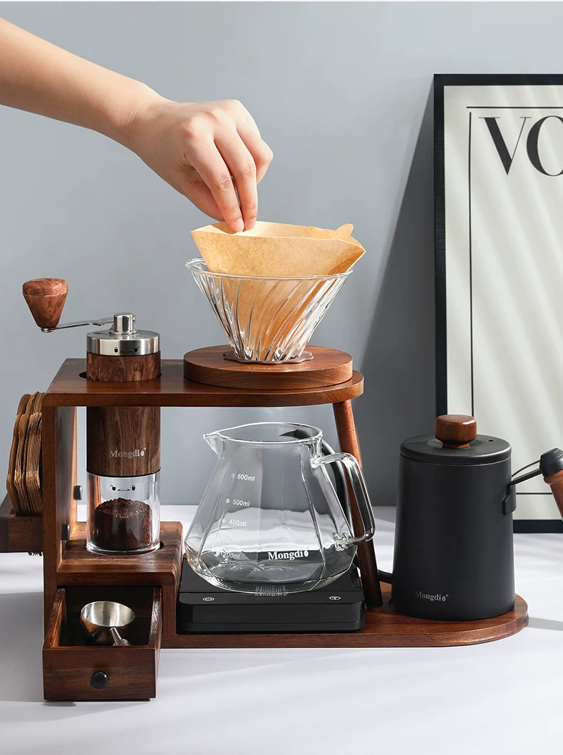 - Bộ ấm pha cà phê thủ công Mongdio, máy pha cà phê bằng tay, thiết bị pha cà phê bằng tay quay tay, giá đựng đồ trọn bộ