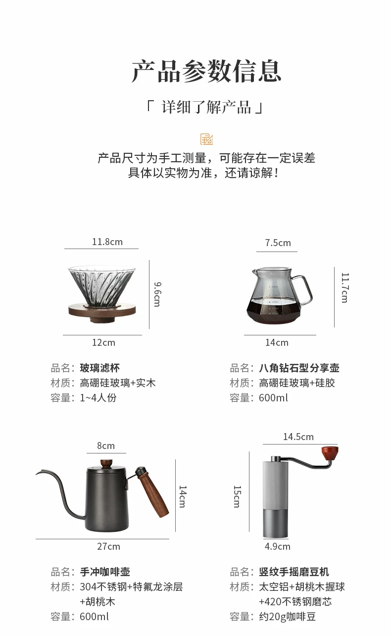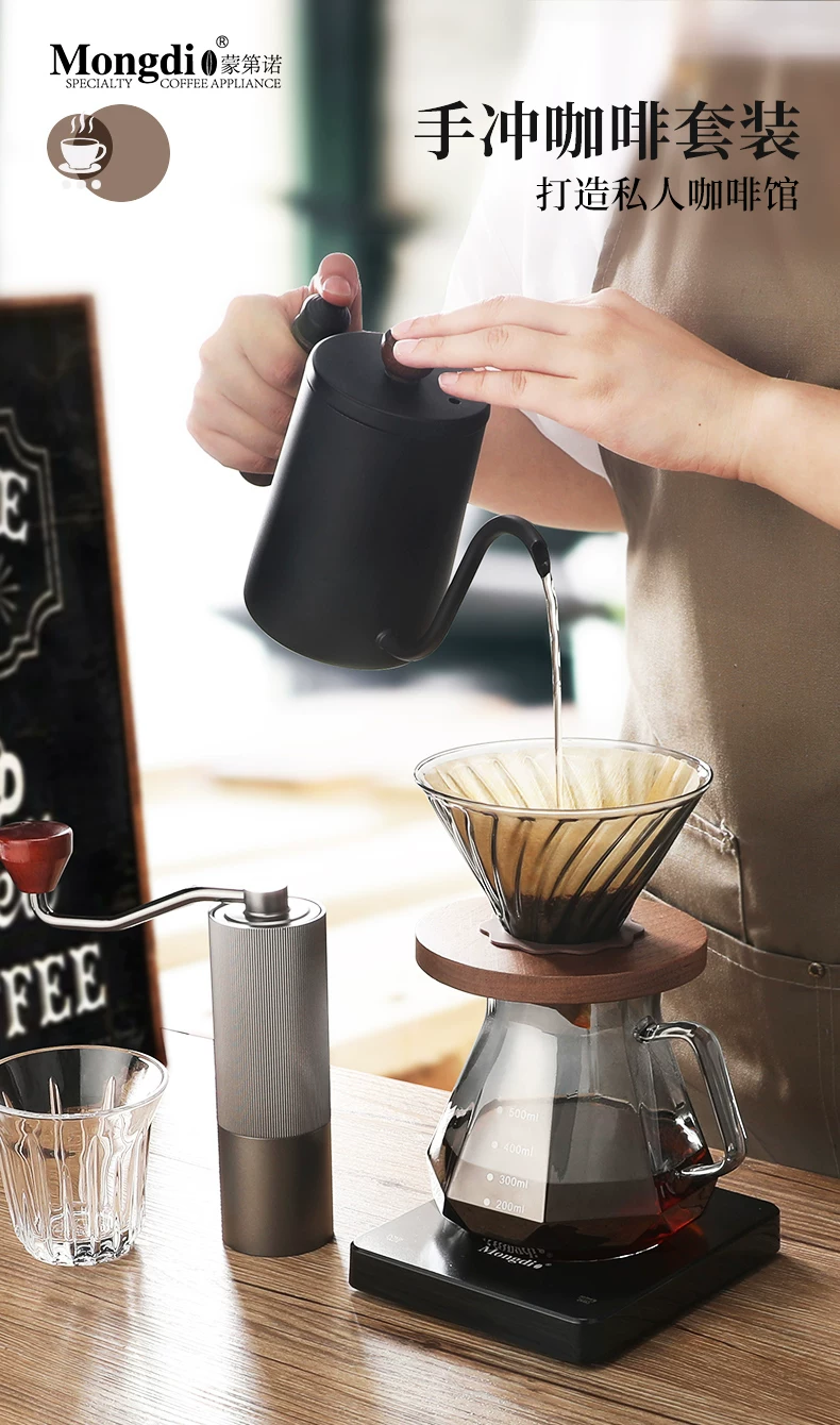 Bộ ấm pha cà phê thủ công Mongdio, máy pha cà phê thủ công gia dụng, thiết bị pha cà phê thủ công ngoài trời quay tay