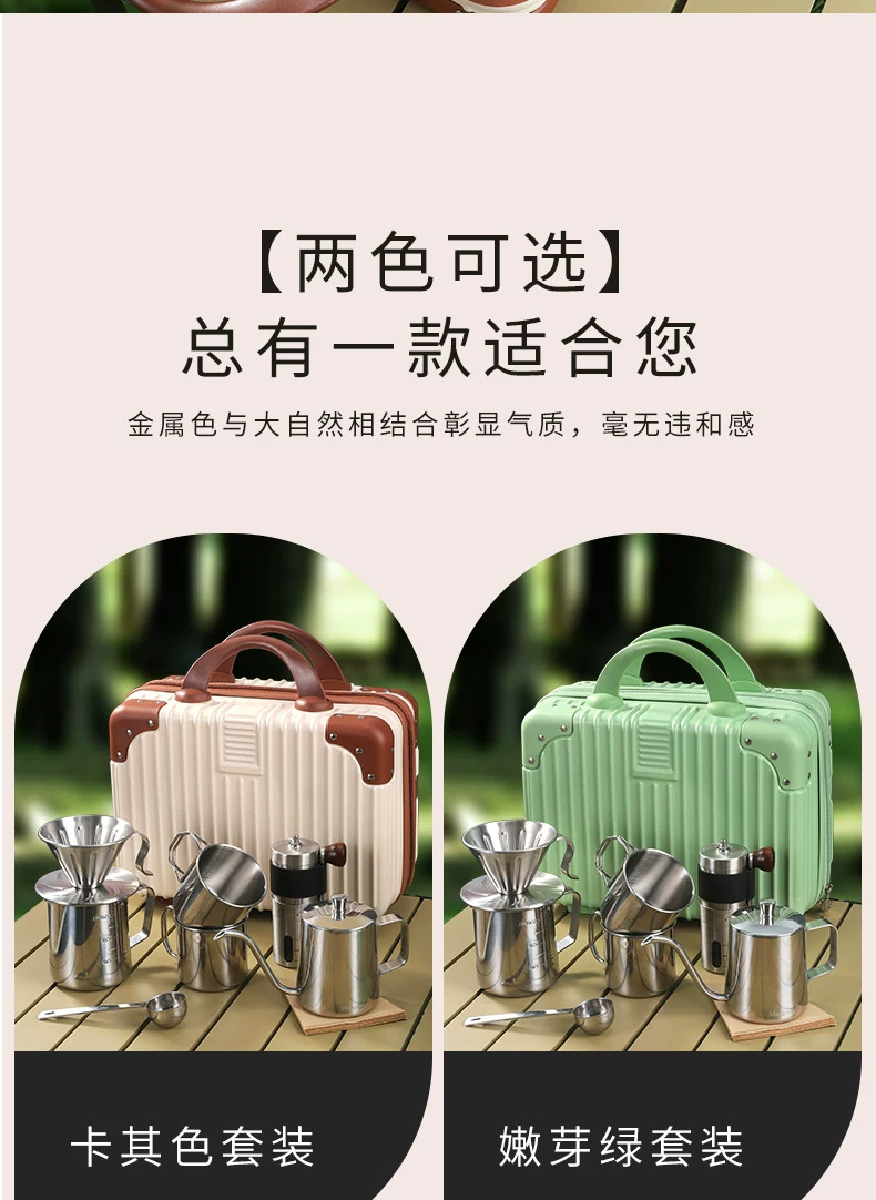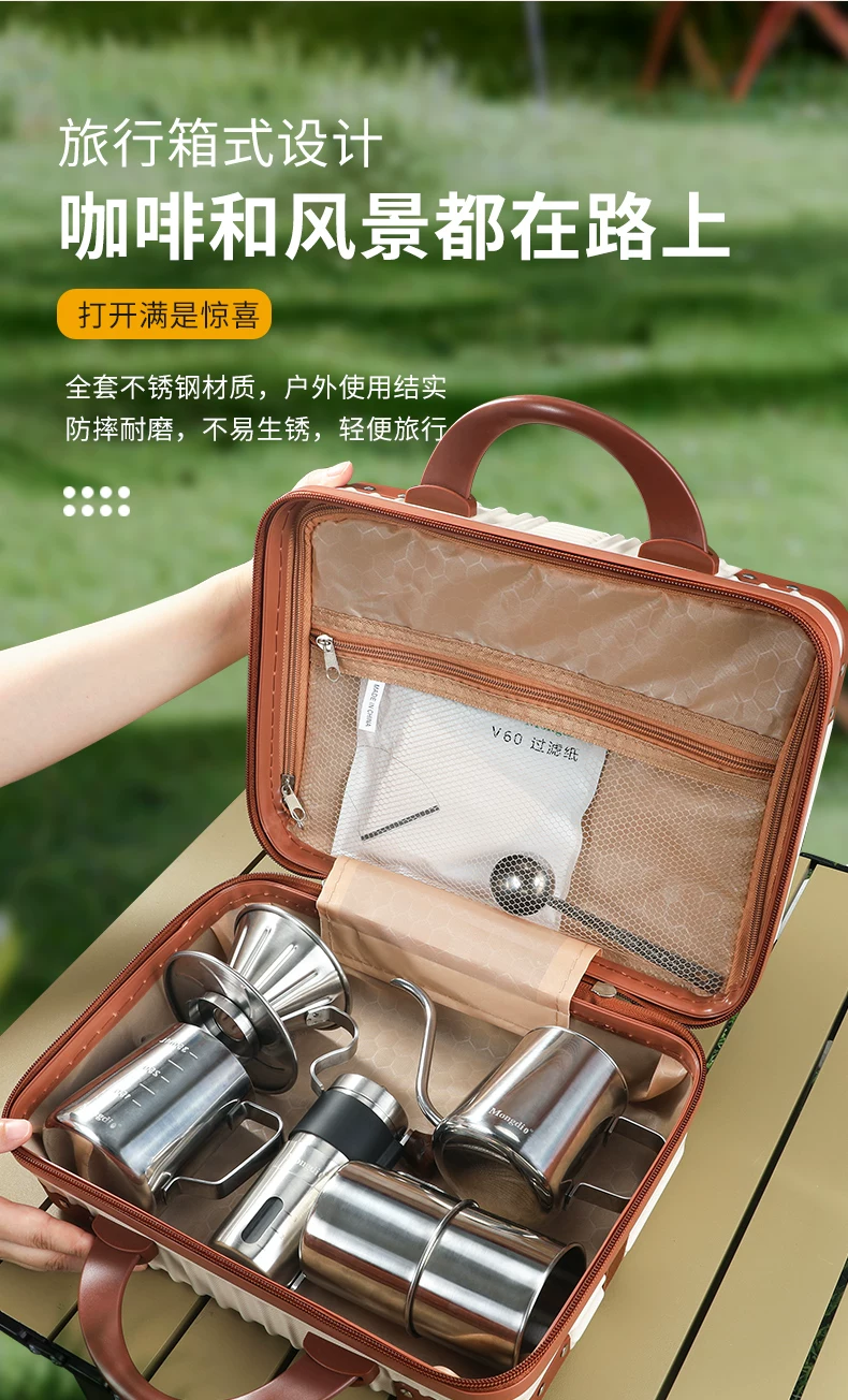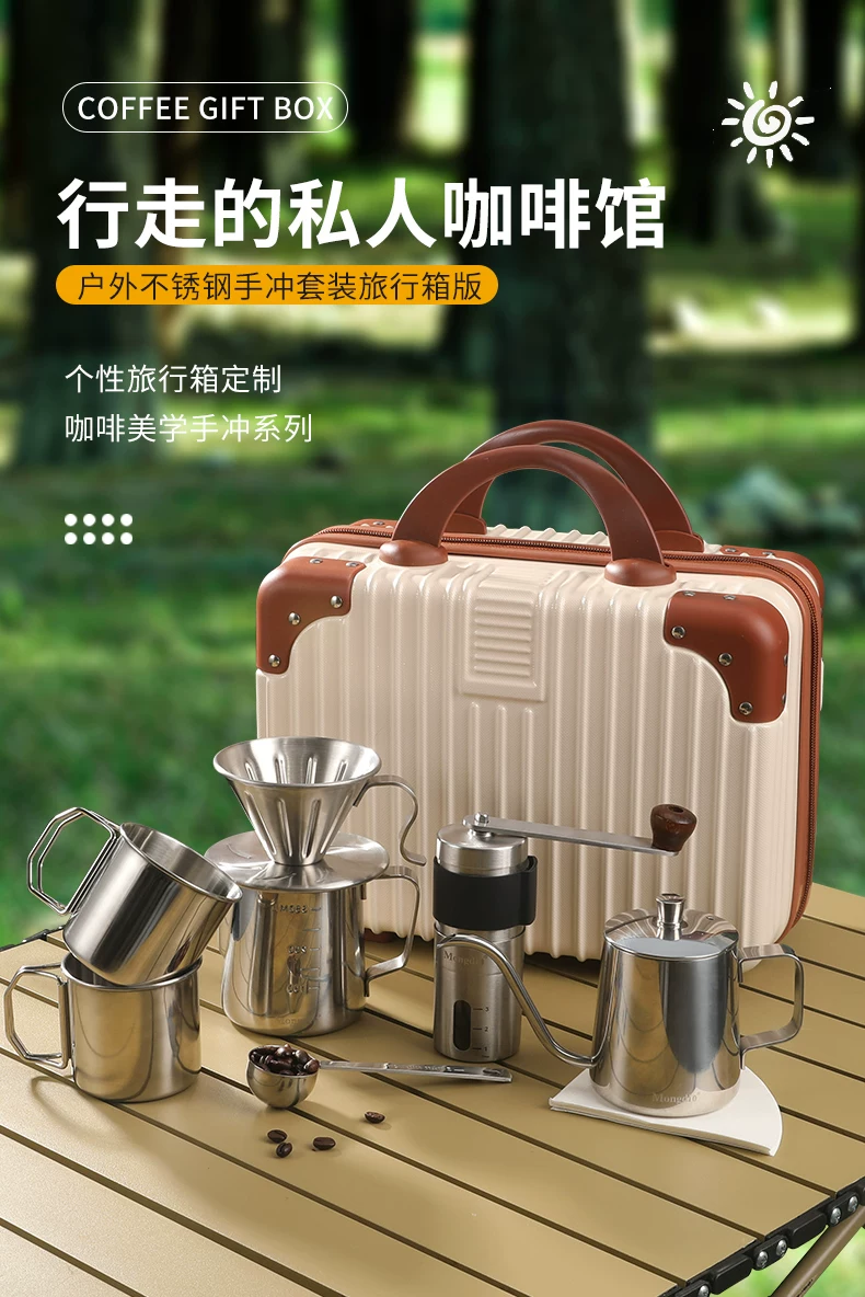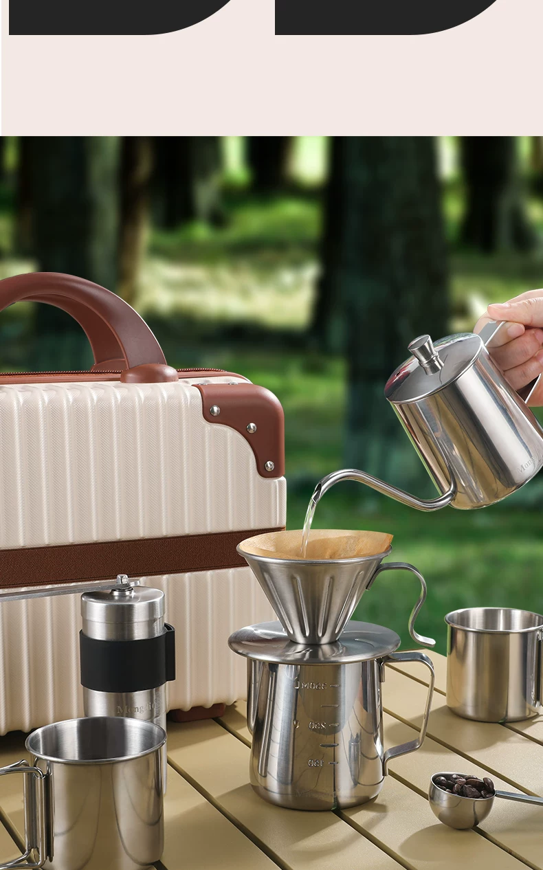 Bộ ấm pha cà phê thủ công Mongdio, máy xay cà phê cầm tay di động, hộp quà tặng, thiết bị cắm trại ngoài trời, đồ dùng du lịch, hộp đựng