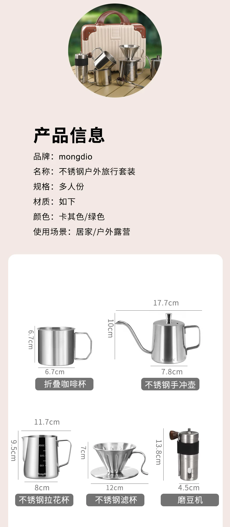 - Bộ ấm pha cà phê thủ công Mongdio, máy xay cà phê cầm tay di động, hộp quà tặng, thiết bị cắm trại ngoài trời, đồ dùng du lịch, hộp đựng