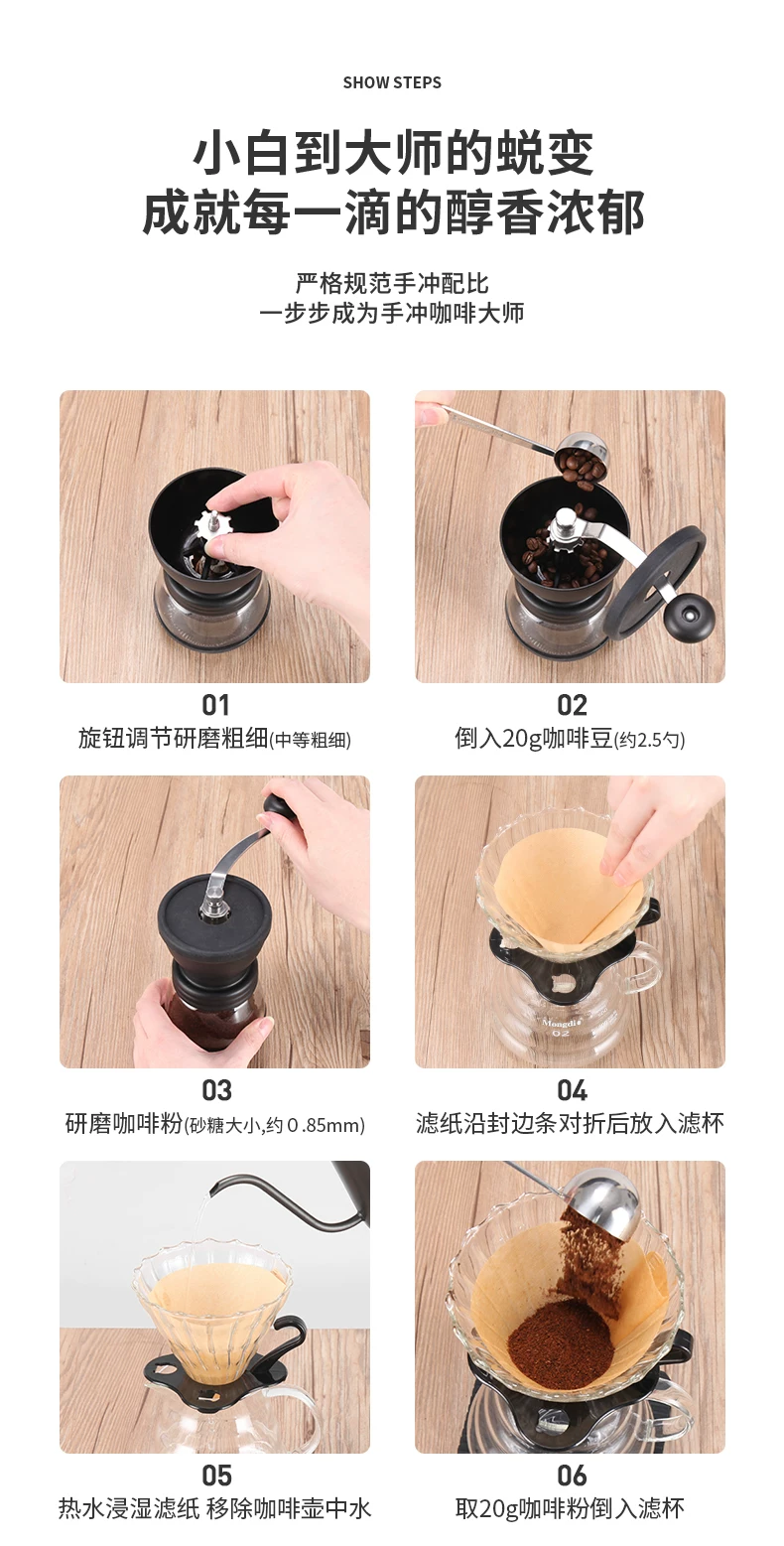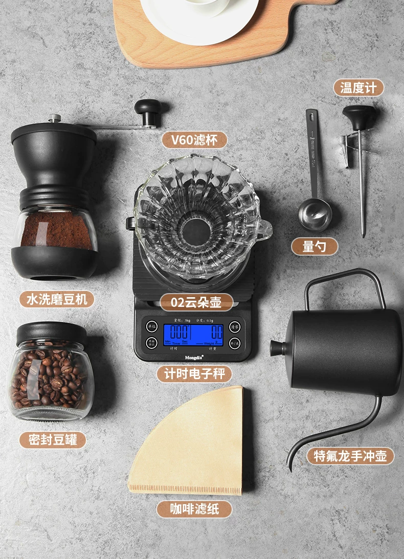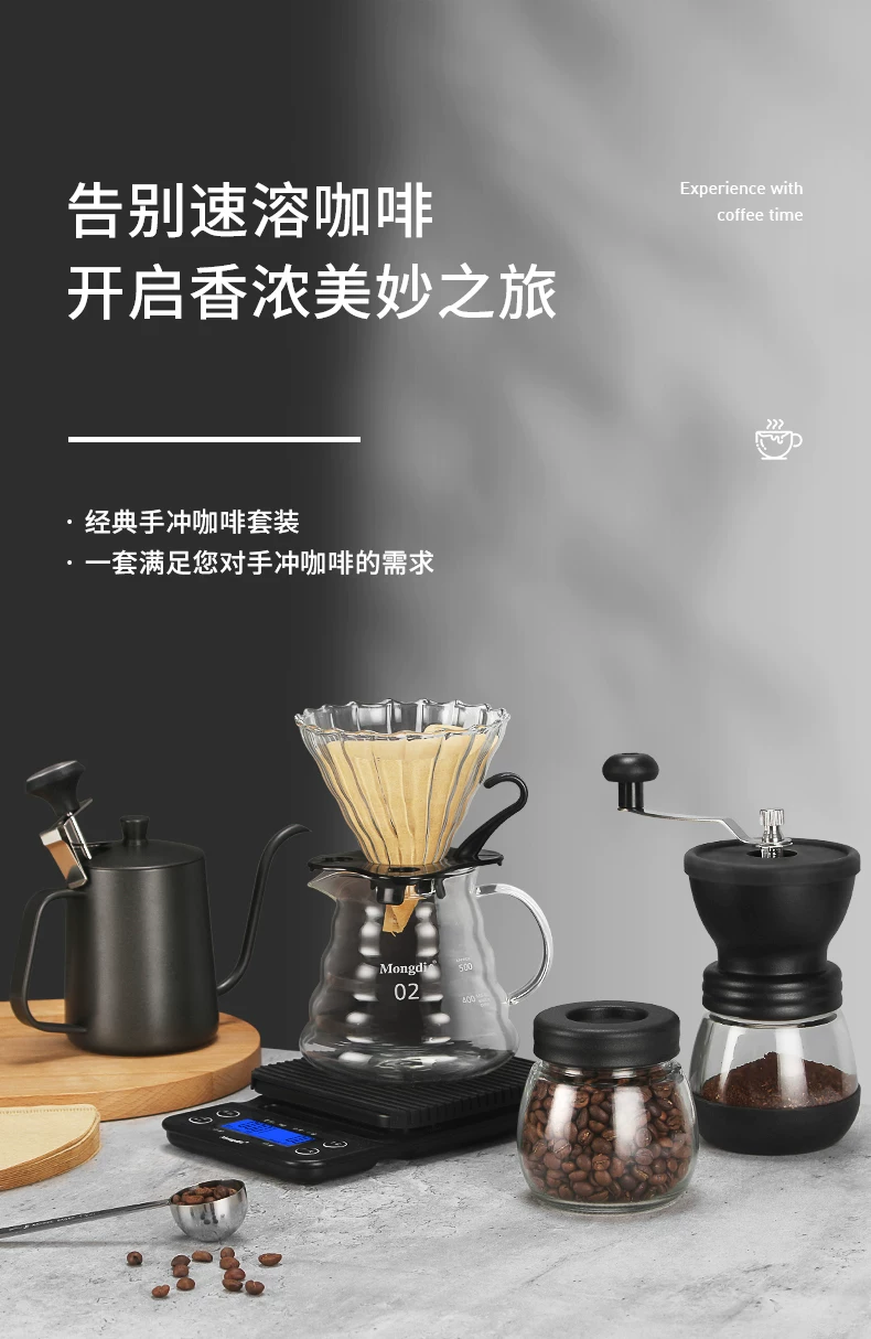 Bộ ấm pha cà phê thủ công Mongdio, máy xay cà phê cầm tay tại nhà, ấm chia sẻ, cốc lọc cà phê, máy xay V60