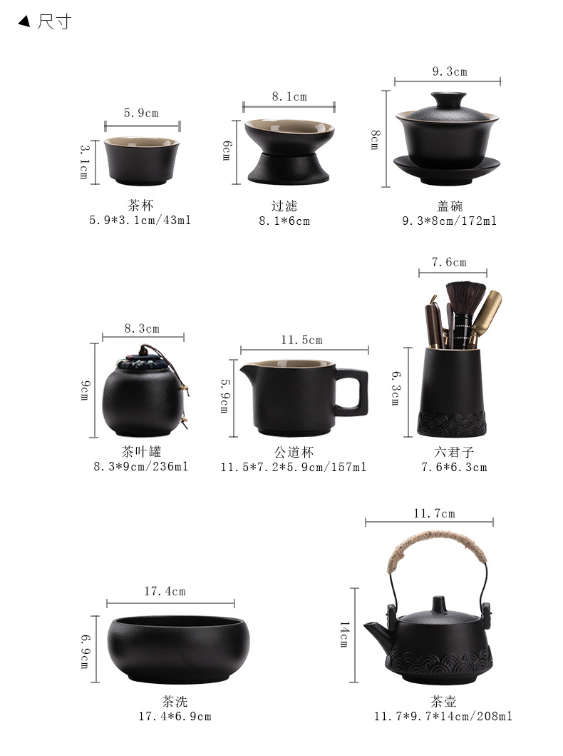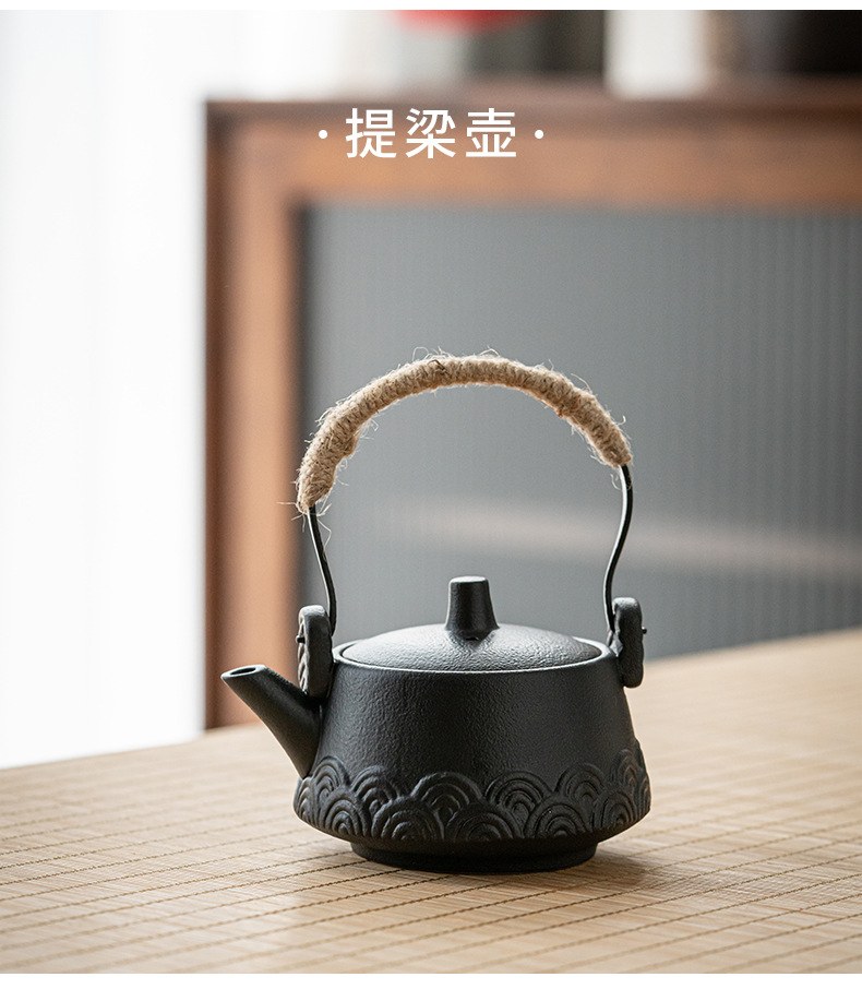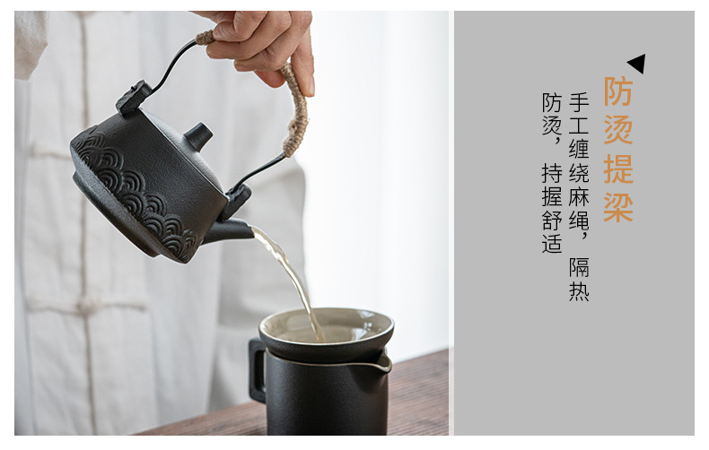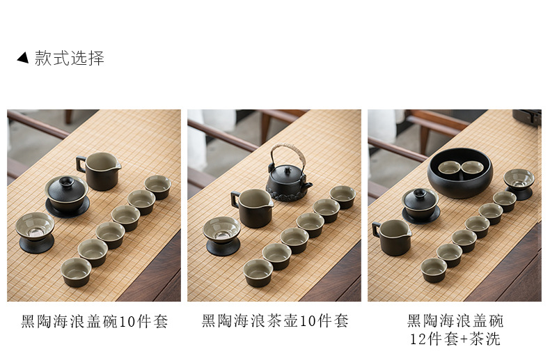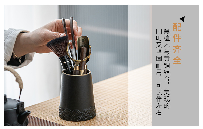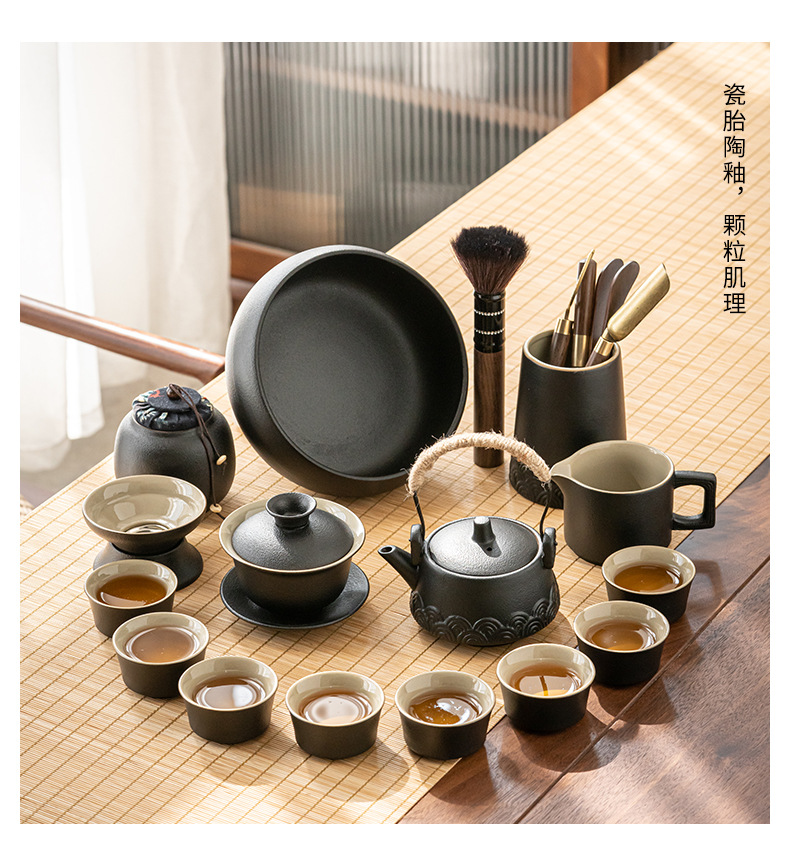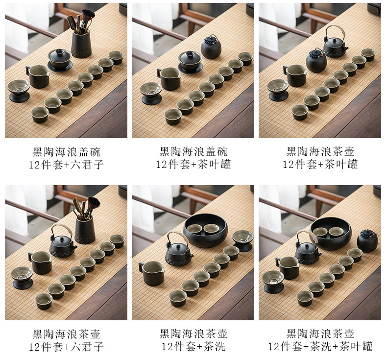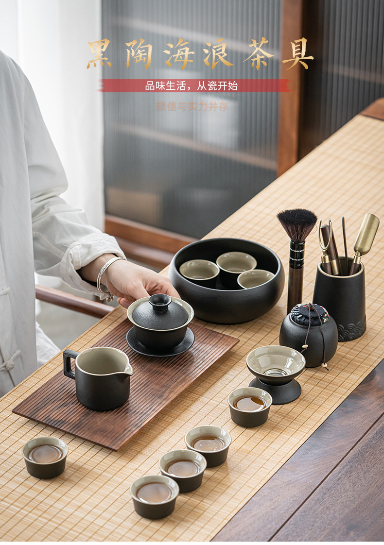 - Bộ ấm pha trà gốm đen văn phòng đơn giản phòng khách kiểu Trung Quốc bộ trà bộ nhỏ bộ trà Kung Fu