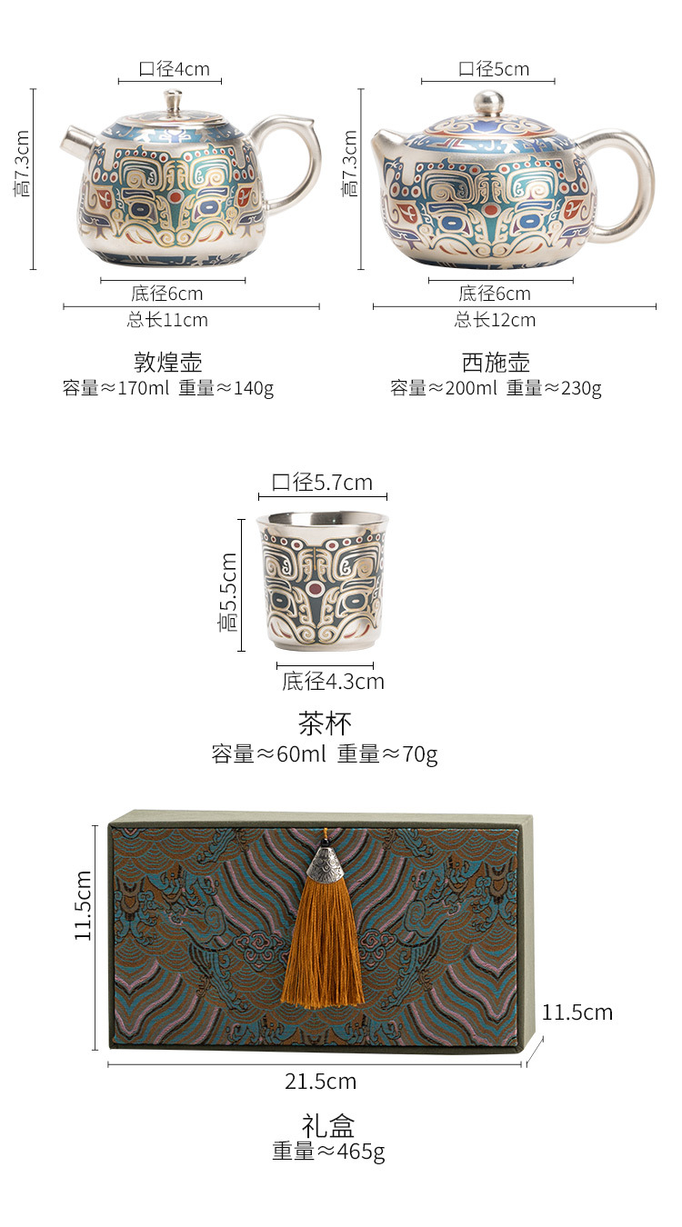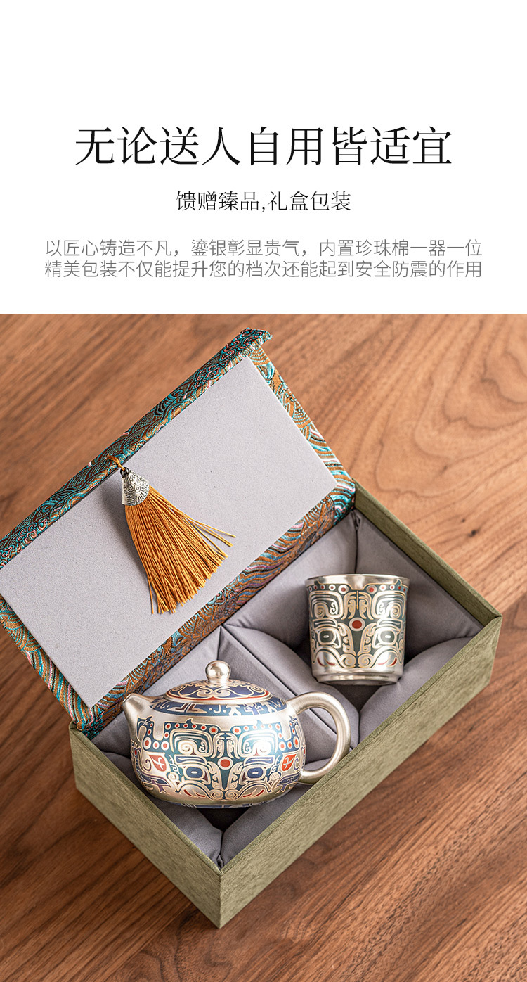 Bộ ấm trà bạc 999, hộp quà tặng cho người lớn tuổi, quà tặng doanh nghiệp cao cấp, ấm trà Kung Fu, tách trà, quà lưu niệm