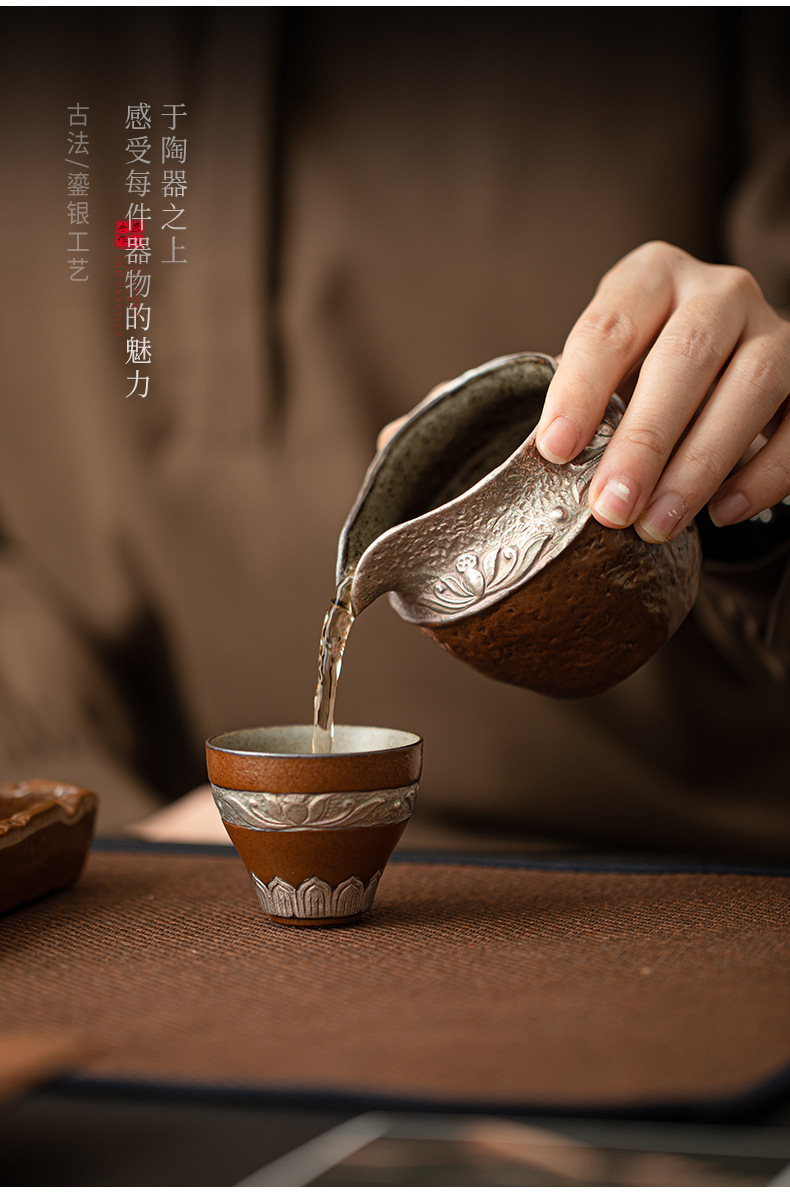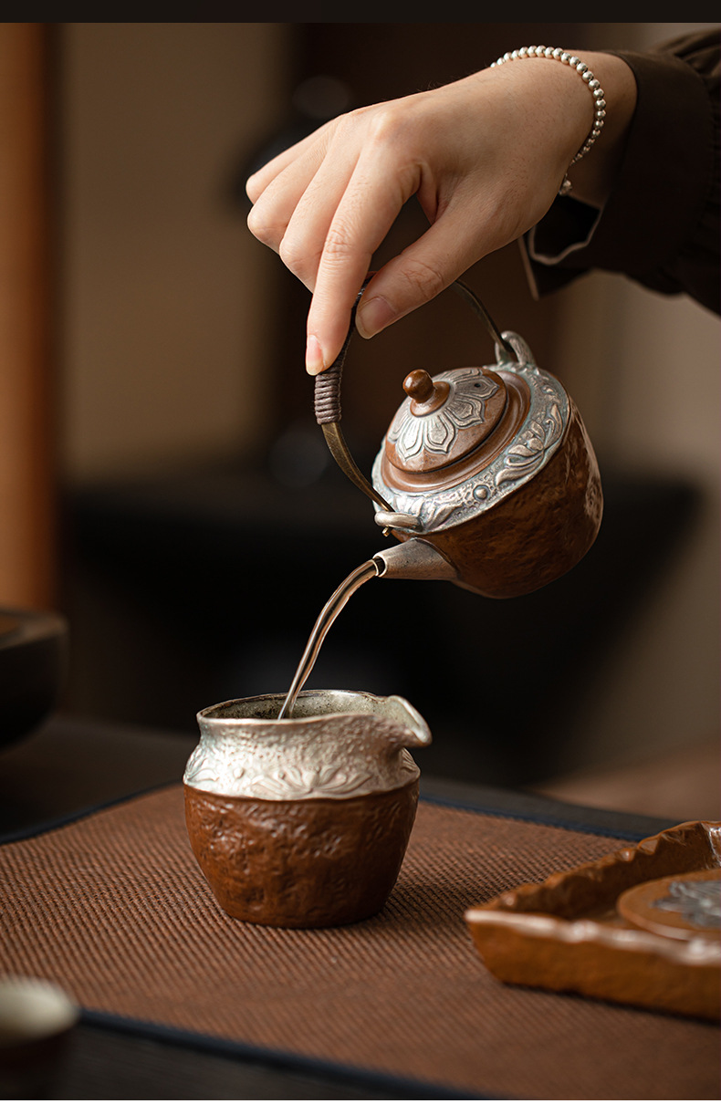 - Bộ ấm trà bằng đất sét đá cổ mạ bạc cổ kính bộ ấm trà bộ dụng cụ pha trà kiểu Trung Quốc gia dụng ấm trà chùm nâng quà tặng doanh nghiệp