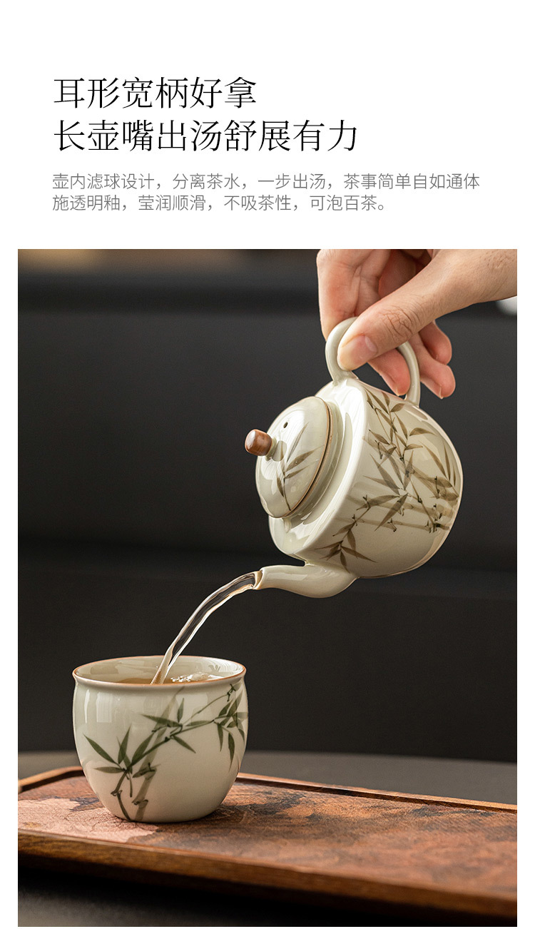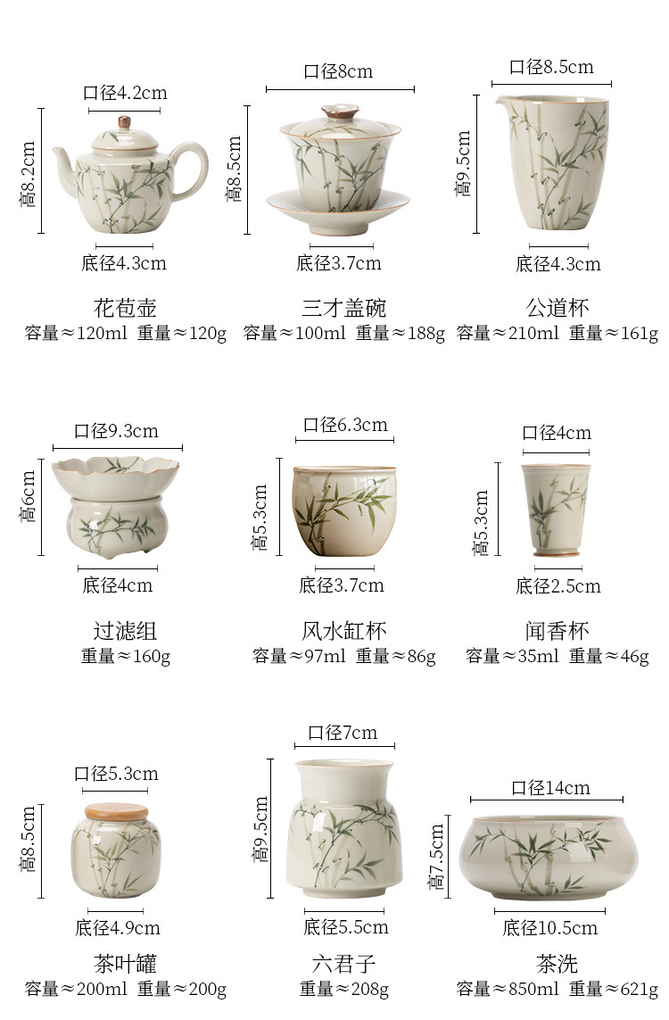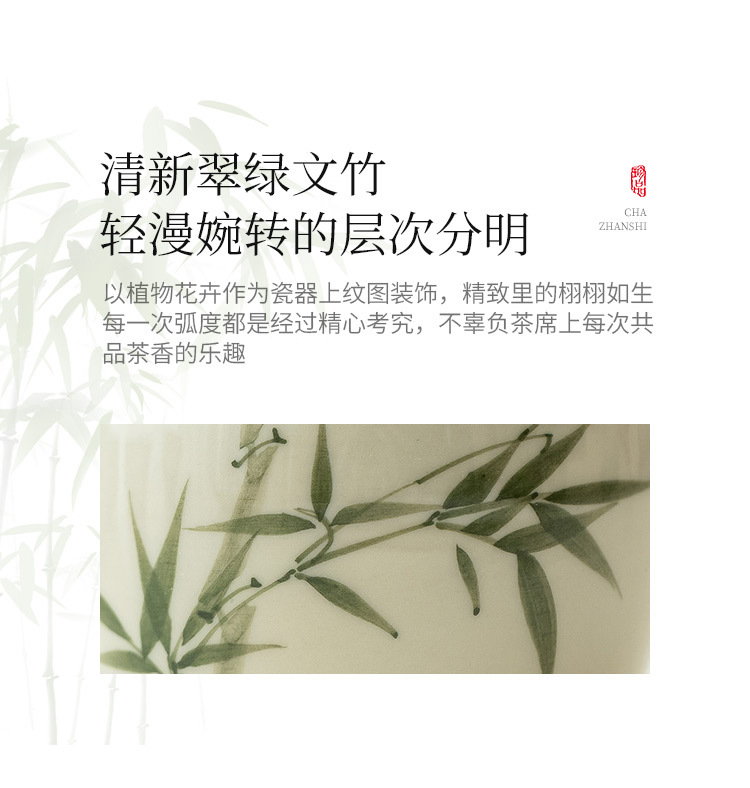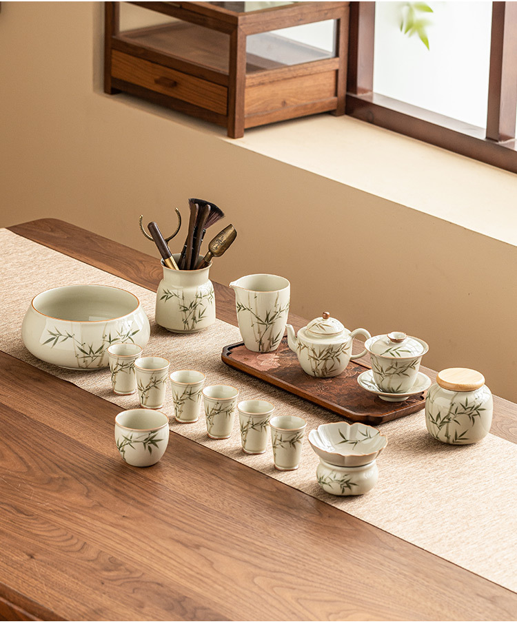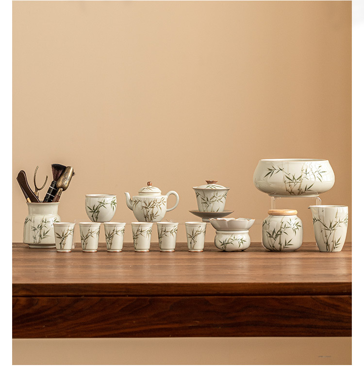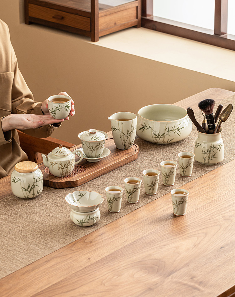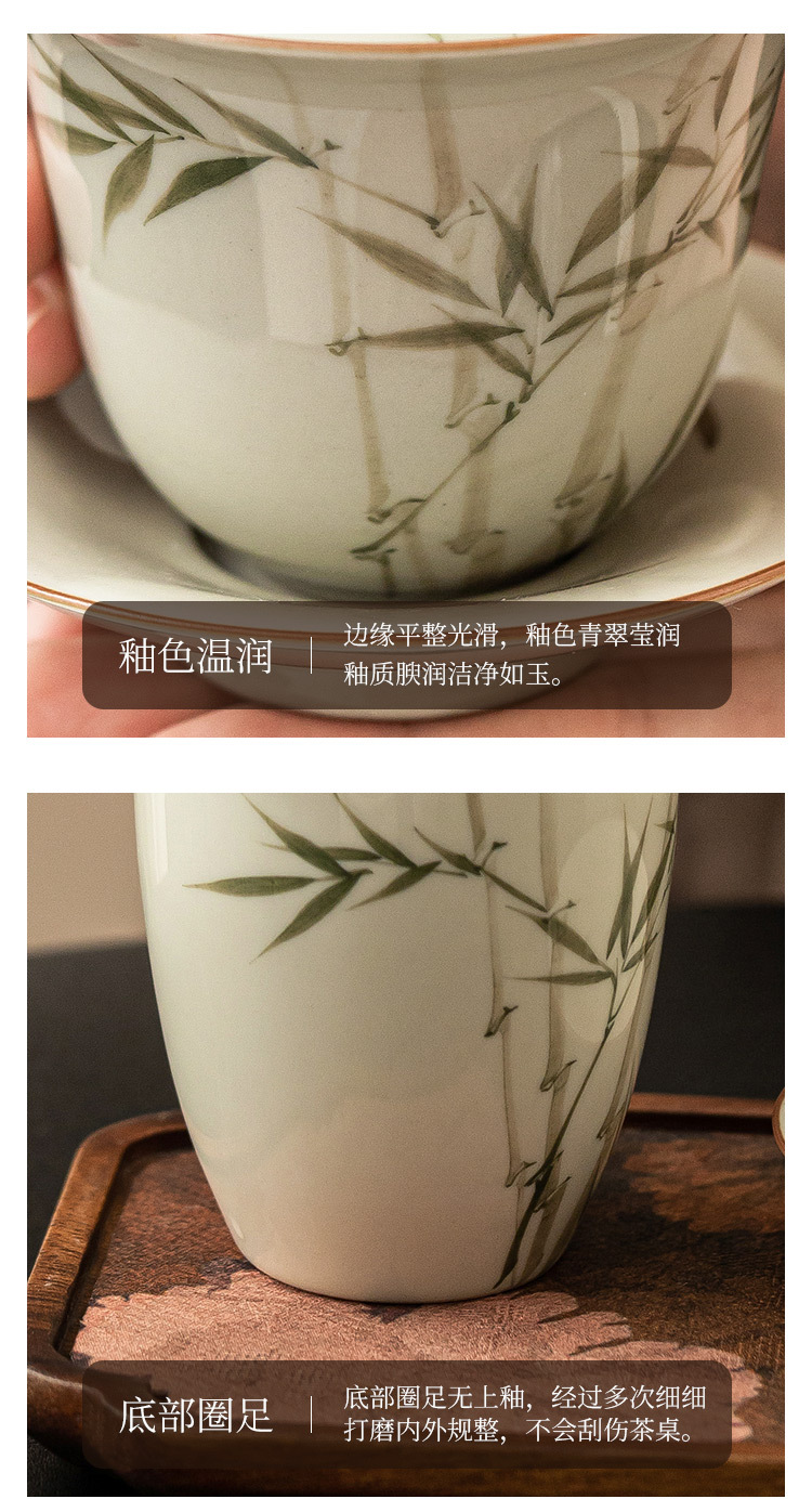 Bộ ấm trà bằng tre xanh ngọc bích vẽ tay bộ ấm trà Kung Fu gốm sứ cao cấp sang trọng nhẹ gia dụng
