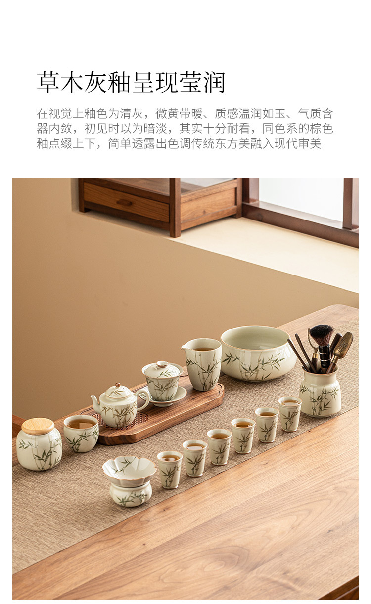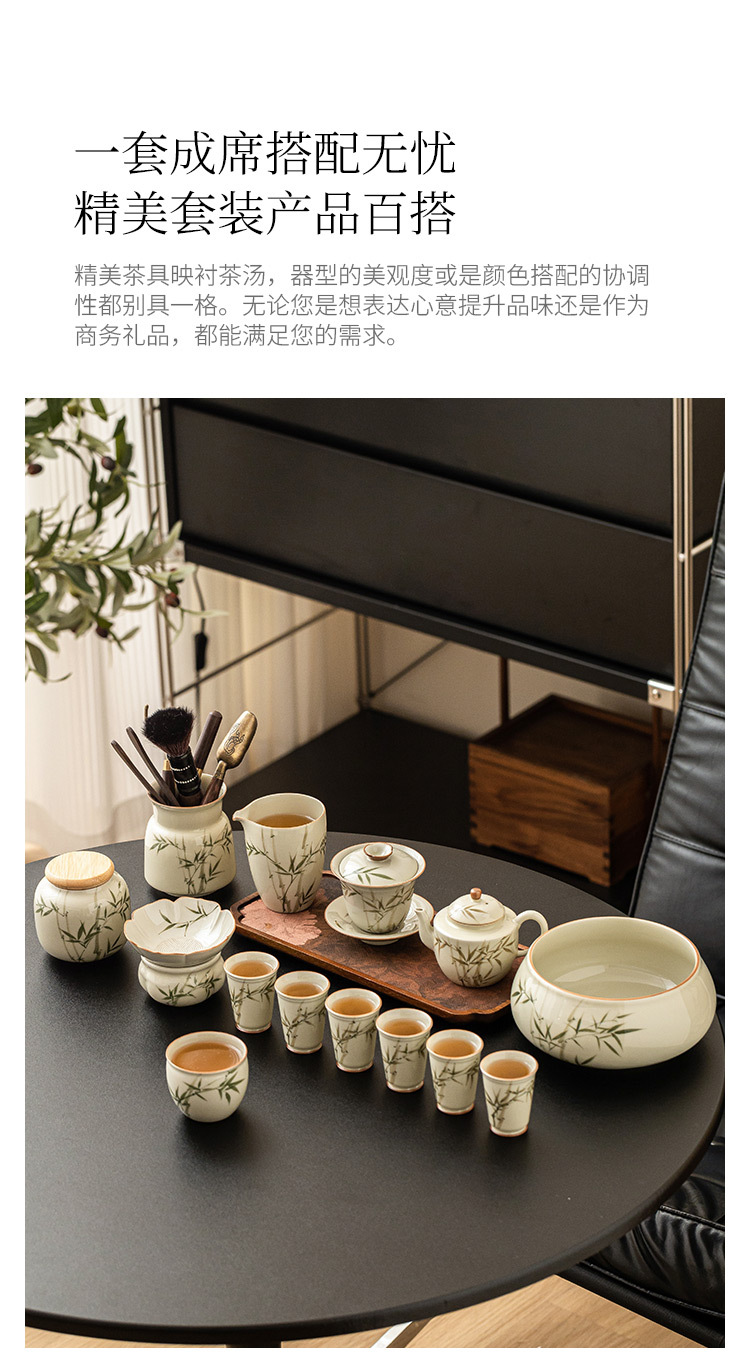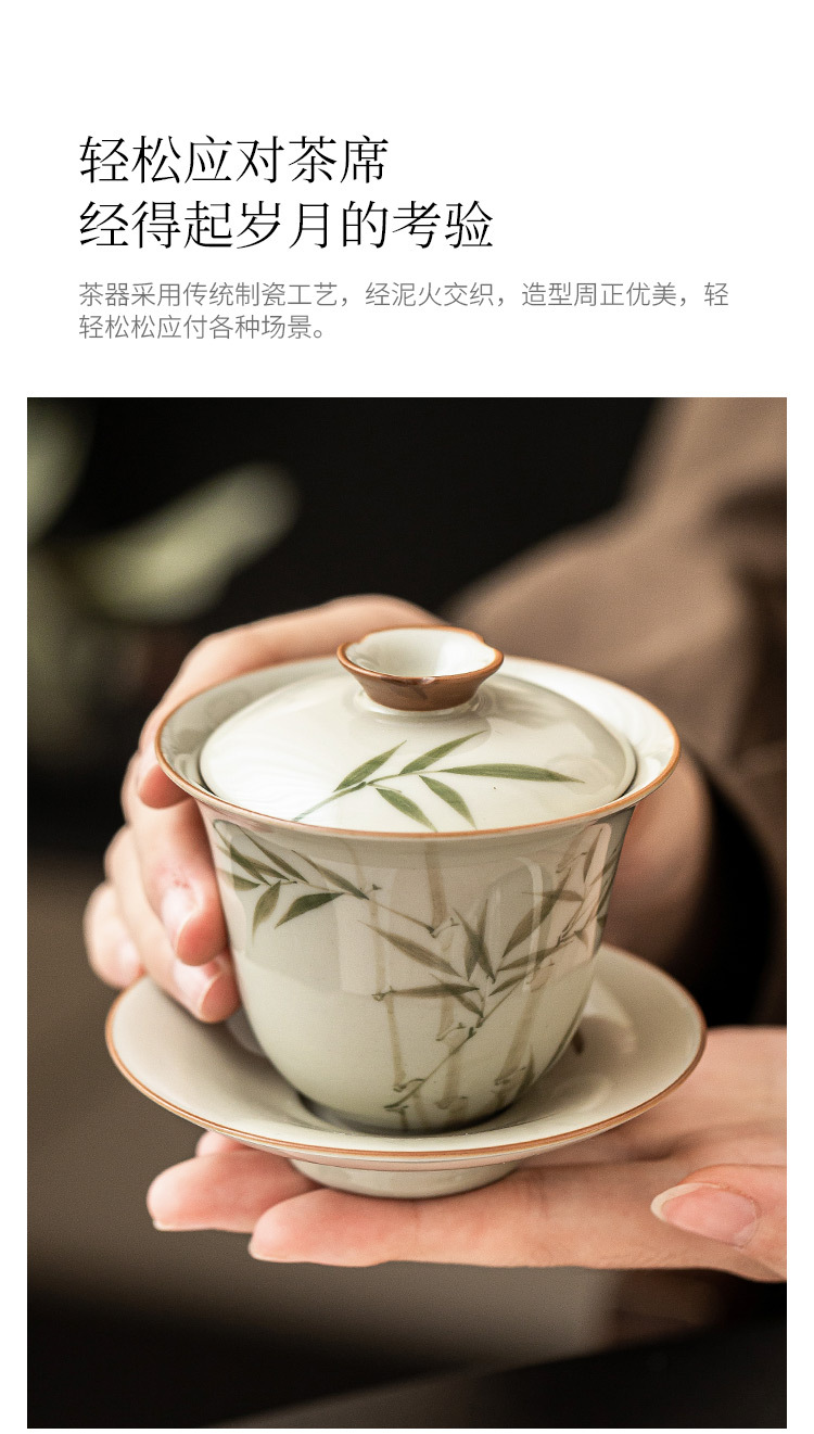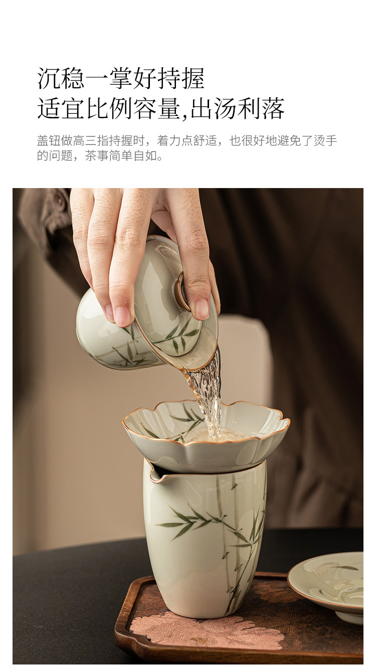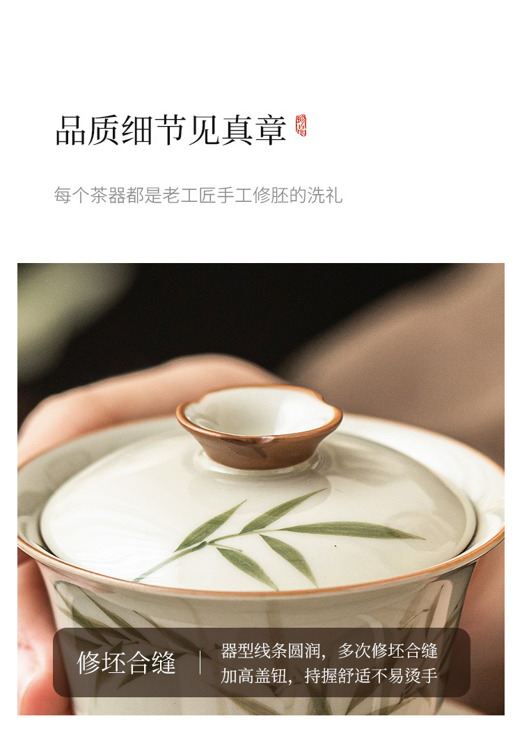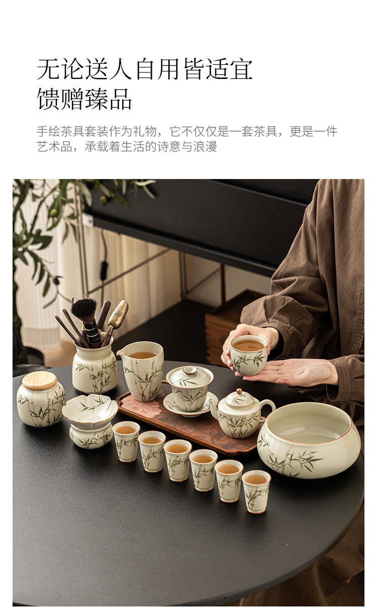 Bộ ấm trà bằng tre xanh ngọc bích vẽ tay bộ ấm trà Kung Fu gốm sứ cao cấp sang trọng nhẹ gia dụng