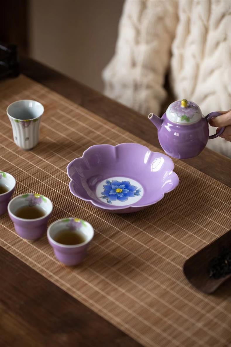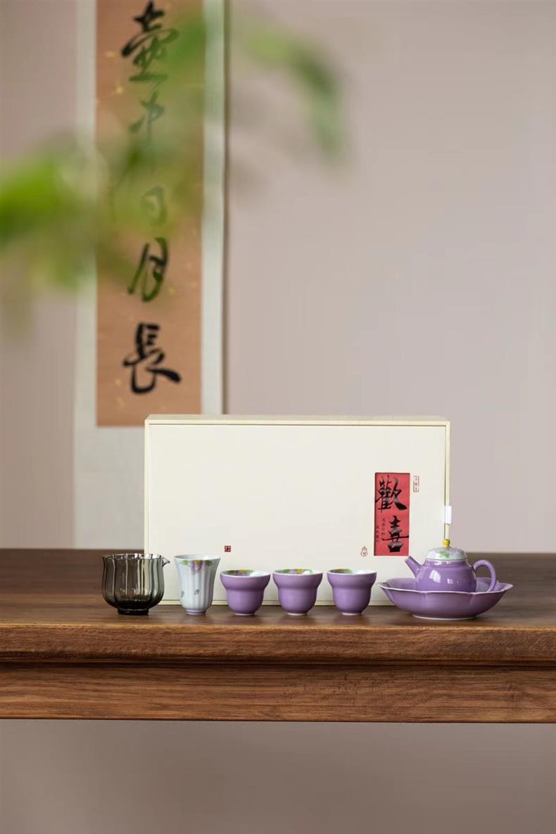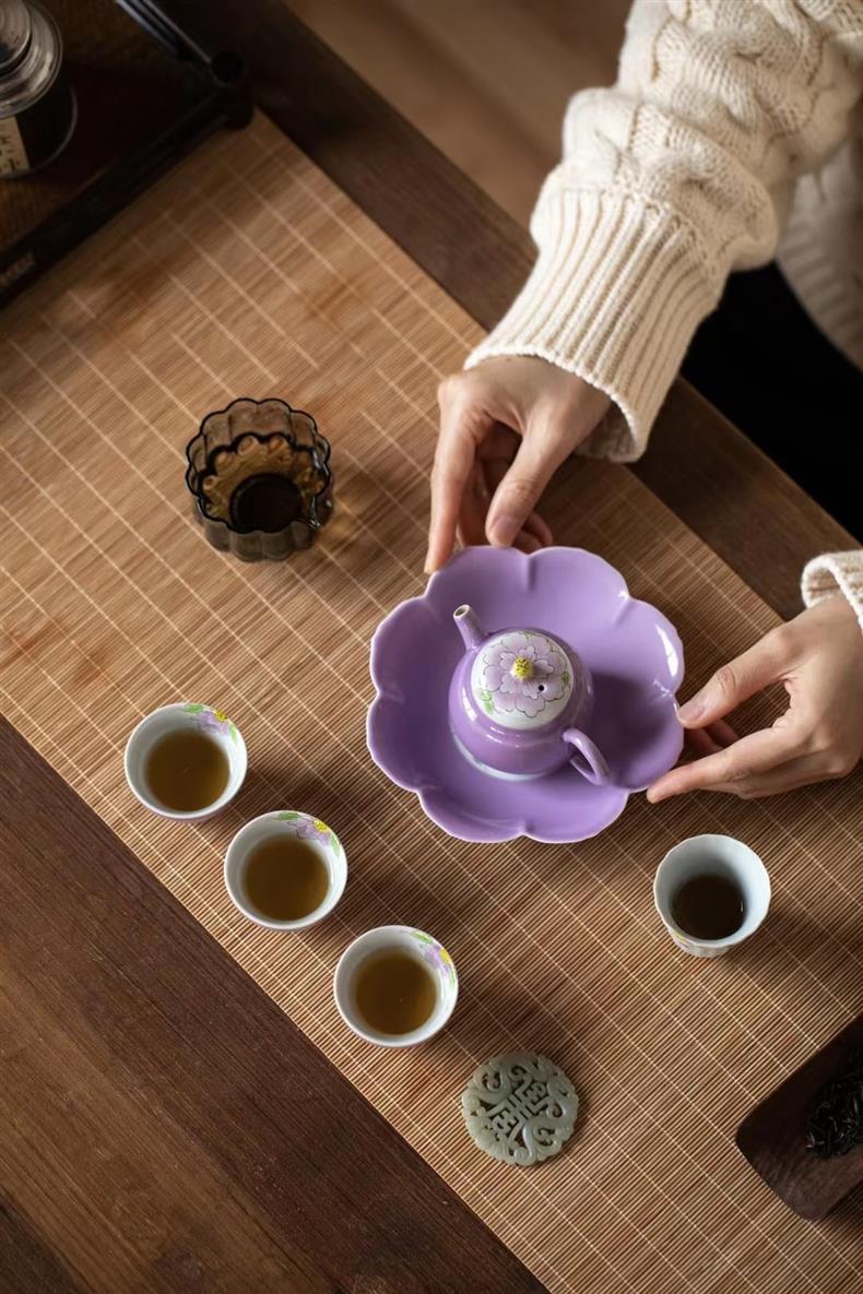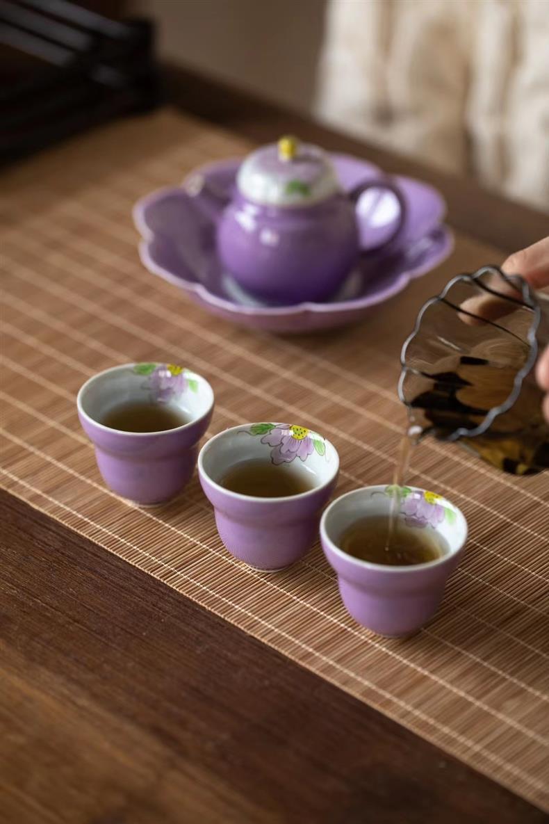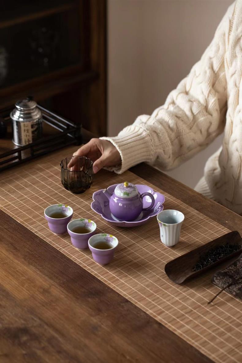 Bộ ấm trà chữ nhỏ màu tím vẽ tay Bộ ấm trà Kung Fu ấm trà gốm sứ nhẹ sang trọng trọn bộ văn phòng nữ cao cấp