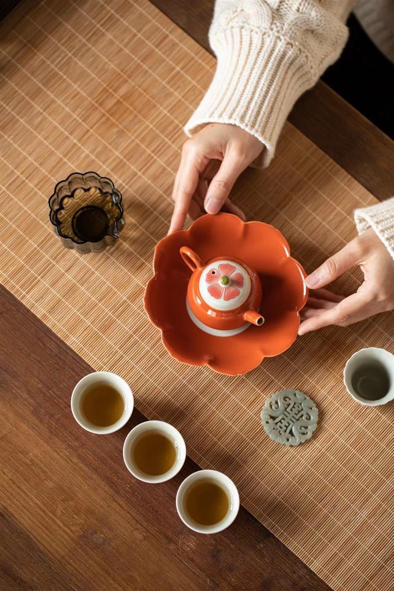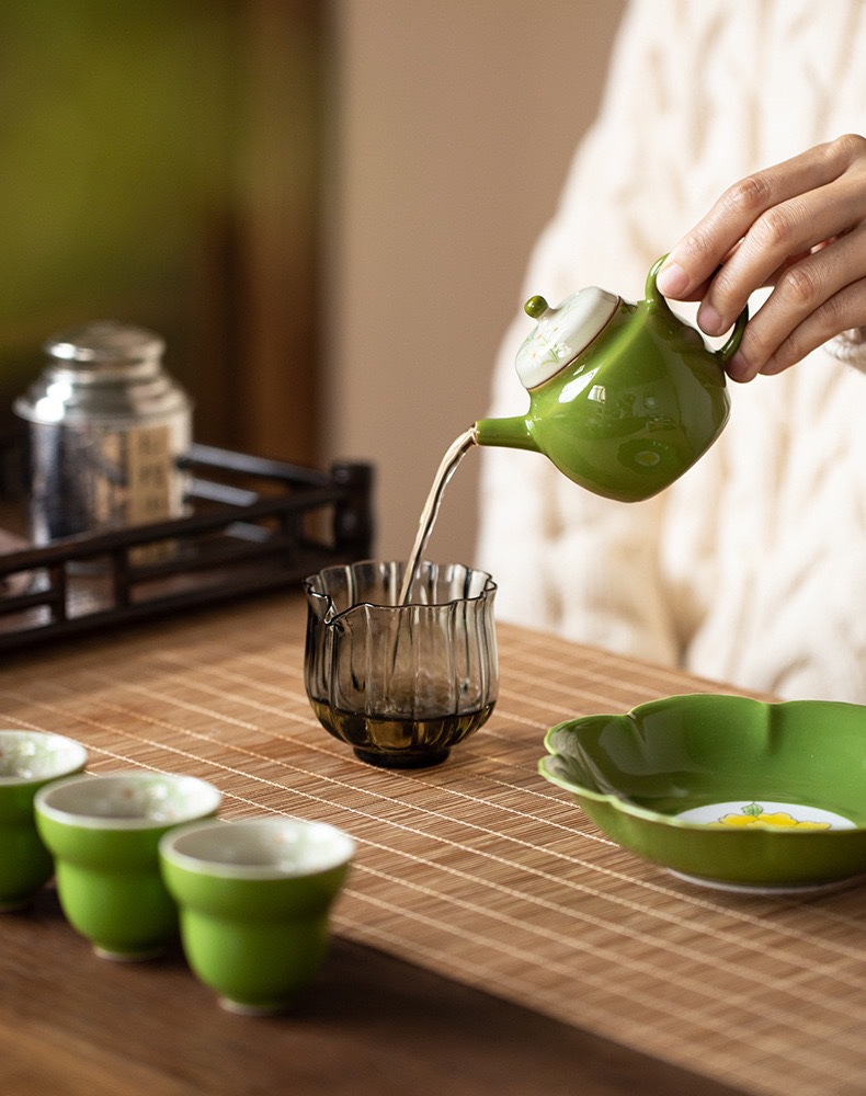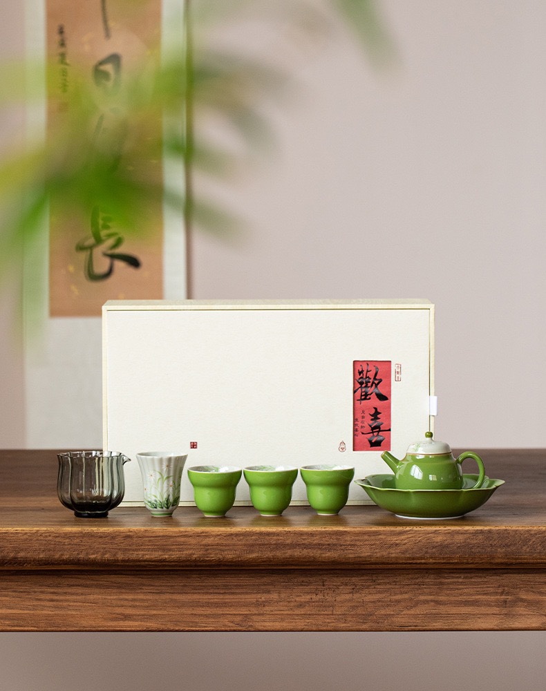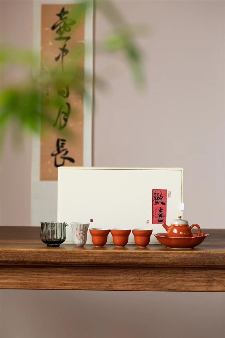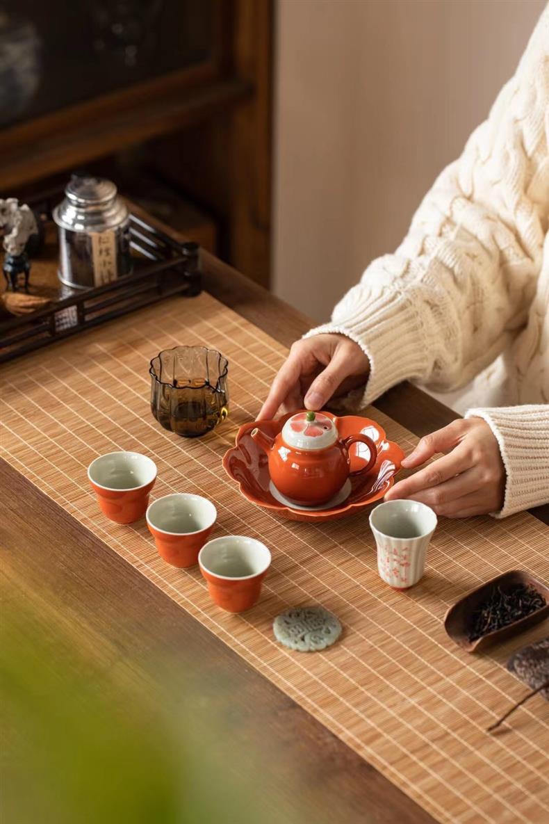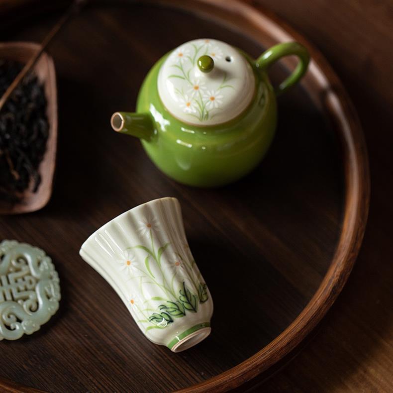 Bộ ấm trà chữ nhỏ màu tím vẽ tay Bộ ấm trà Kung Fu ấm trà gốm sứ nhẹ sang trọng trọn bộ văn phòng nữ cao cấp