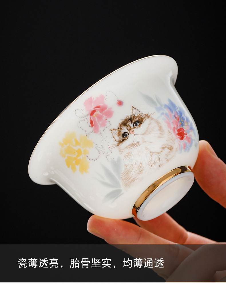 Bộ ấm trà có nắp ba tài bằng sứ trắng sơn vàng Dehua với bộ trà kung fu bằng sứ ngọc nephrite, bát trà thành mỏng, đồ phục vụ trà bán buôn.