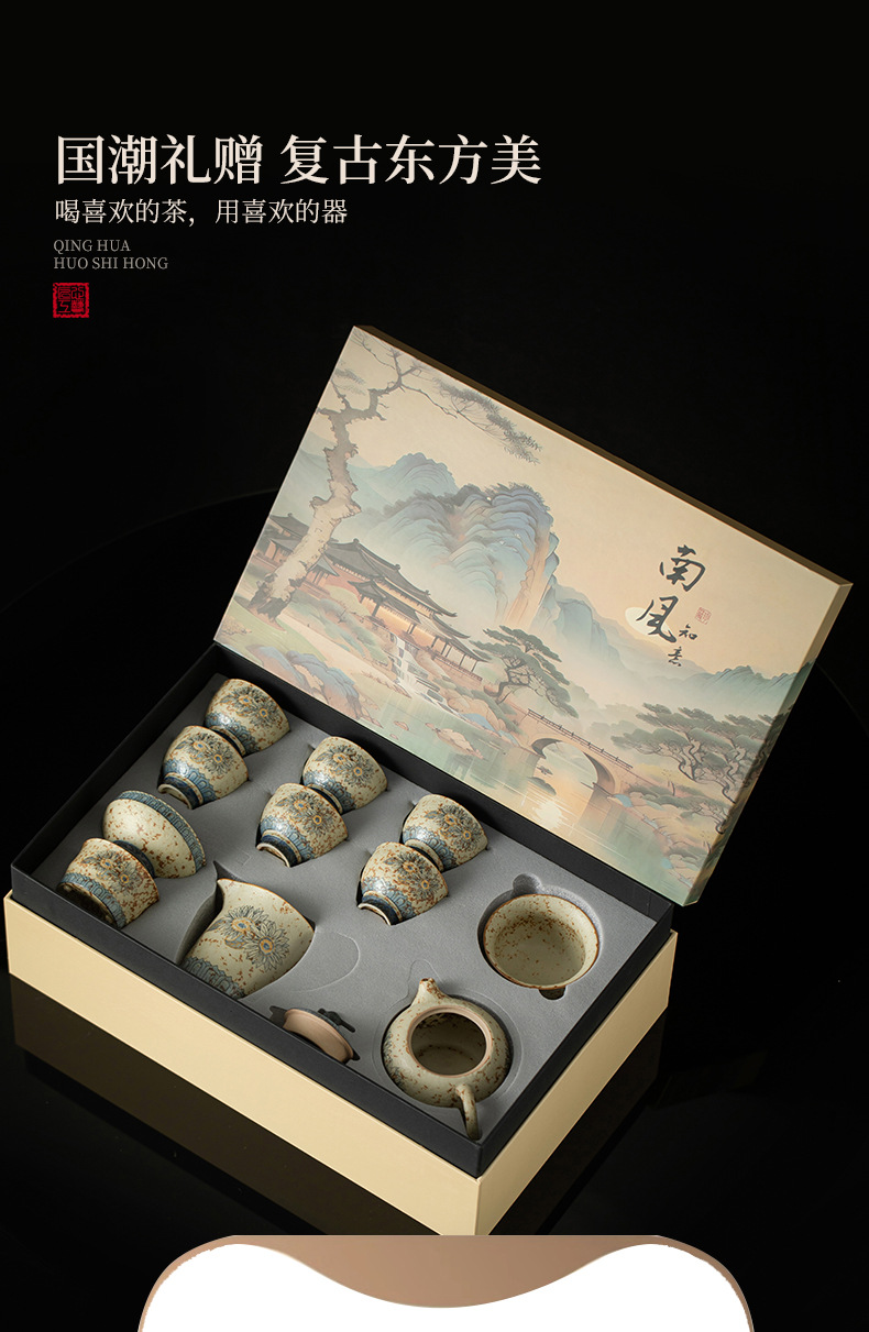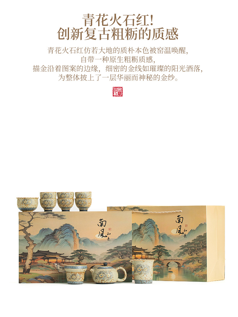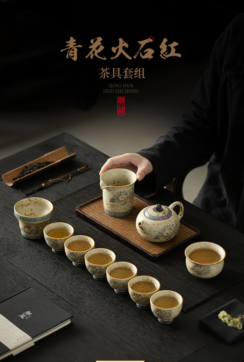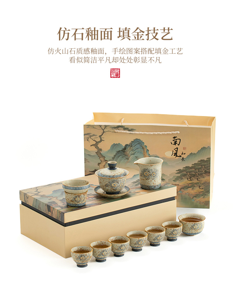 Bộ ấm trà đá núi lửa trắng xanh cao cấp, ấm trà gốm sứ gia dụng, cốc trà, bộ trà trọn bộ, quà tặng