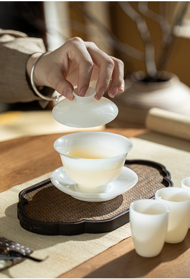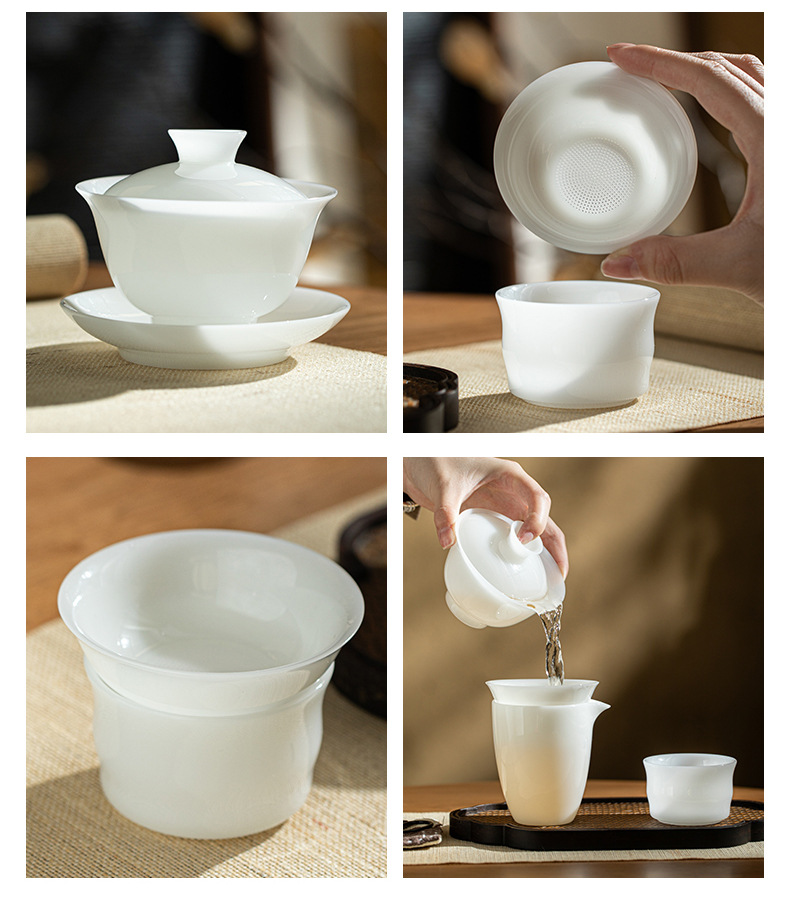- Bộ ấm trà đất sét ngọc bích trắng Bộ ấm chén trà sứ trắng Dehua Bộ ấm trà trọn bộ hộp quà tặng tặng khách hàng