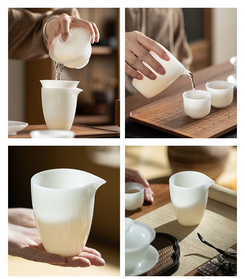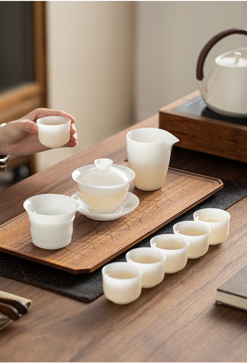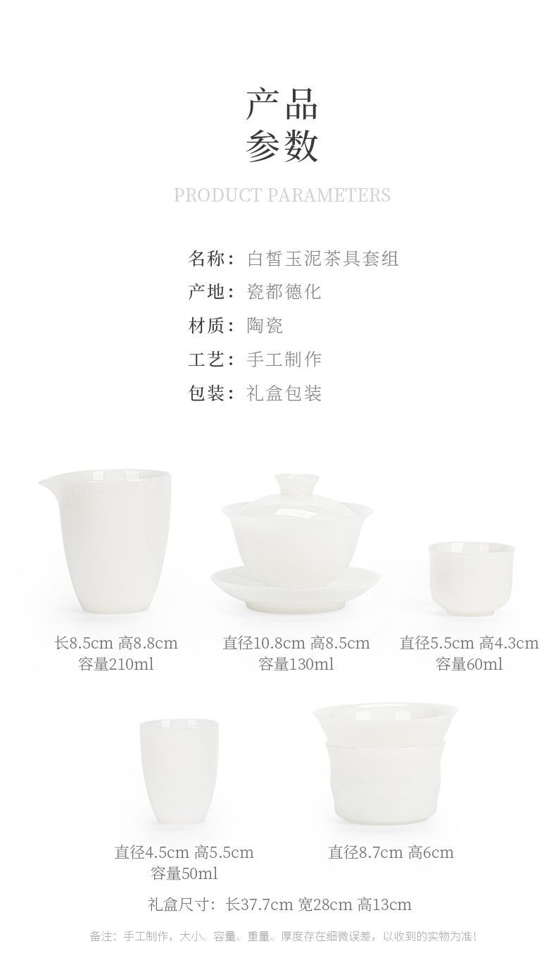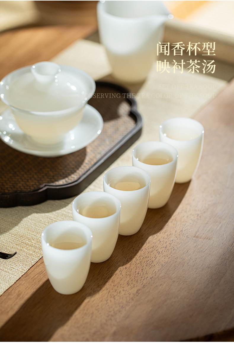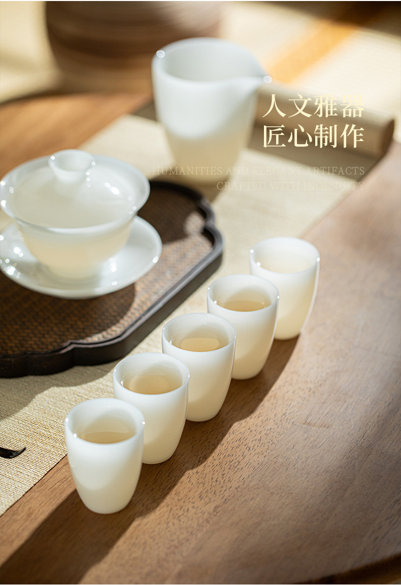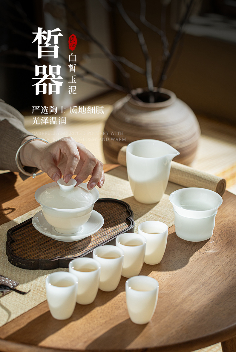 Bộ ấm trà đất sét ngọc bích trắng Bộ ấm chén trà sứ trắng Dehua Bộ ấm trà trọn bộ hộp quà tặng tặng khách hàng