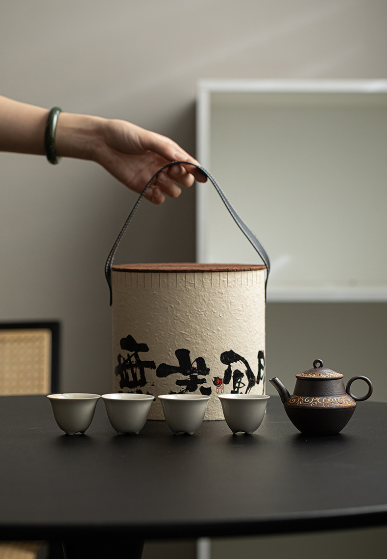 - Bộ ấm trà di động gồm 4 chén, bộ pha trà gốm sứ kiểu Trung Quốc, ấm trà và tách trà, quà tặng bạn bè.