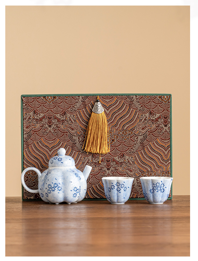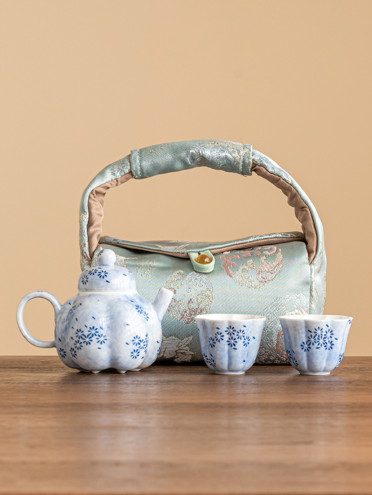 Bộ ấm trà du lịch Bộ ấm trà Bộ ấm trà Hoa cúc xanh Rải trà một ấm hai cốc Túi du lịch xách tay Bộ nhỏ pha trà