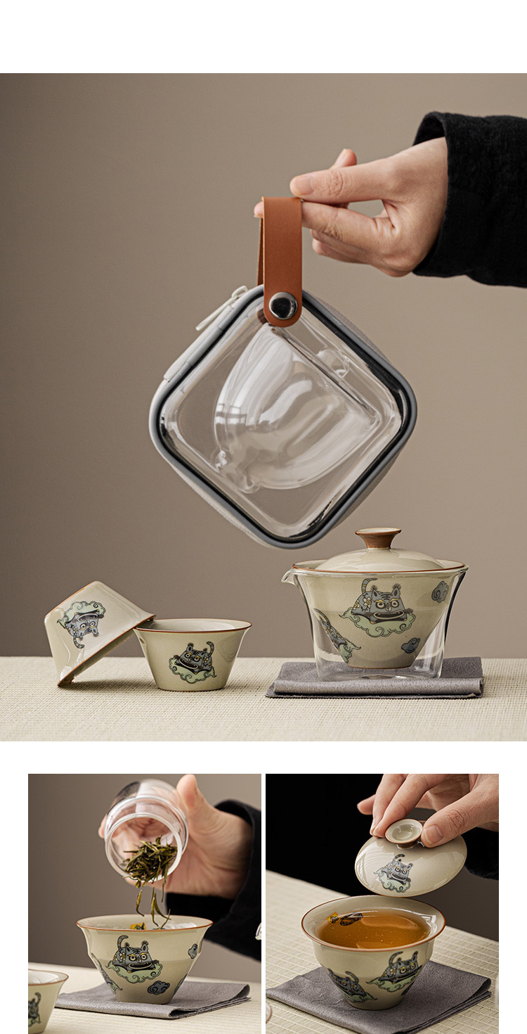 - Bộ ấm trà du lịch đơn ngoài trời di động bong bóng nhỏ Kung Fu gốm sứ nhanh cốc một ấm hai cốc