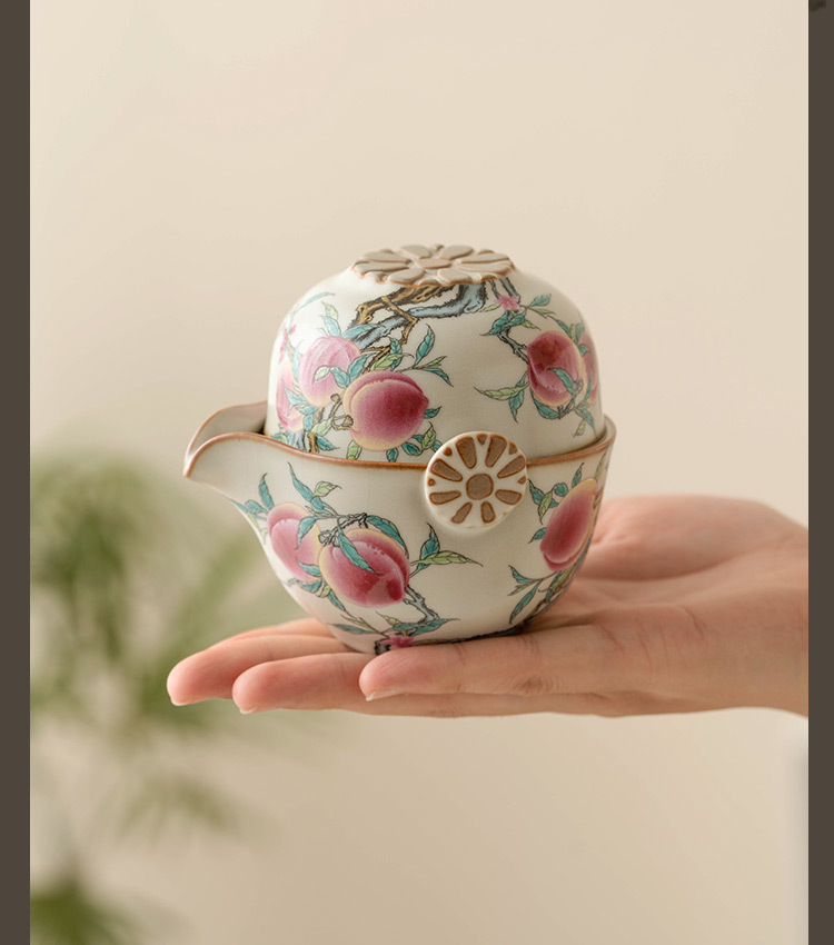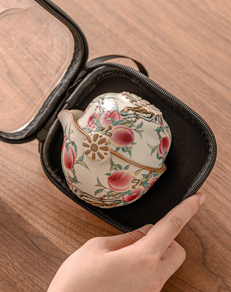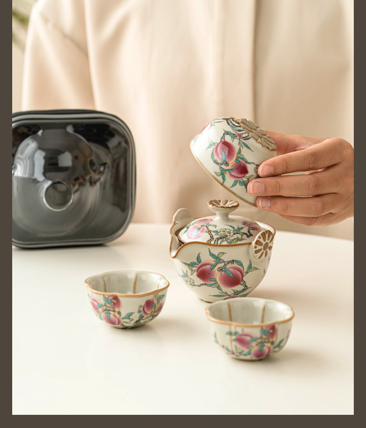 - Bộ ấm trà du lịch gốm sứ Kung Fu di động ngoài trời Bộ ấm trà gốm sứ Kung Fu di động cốc cốc khách nhanh kiểu Trung Quốc