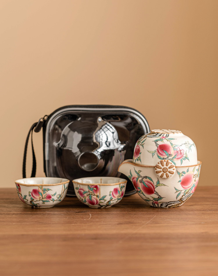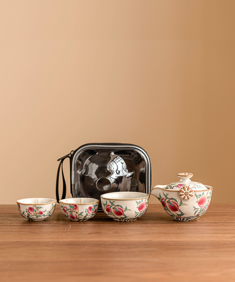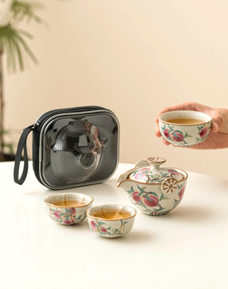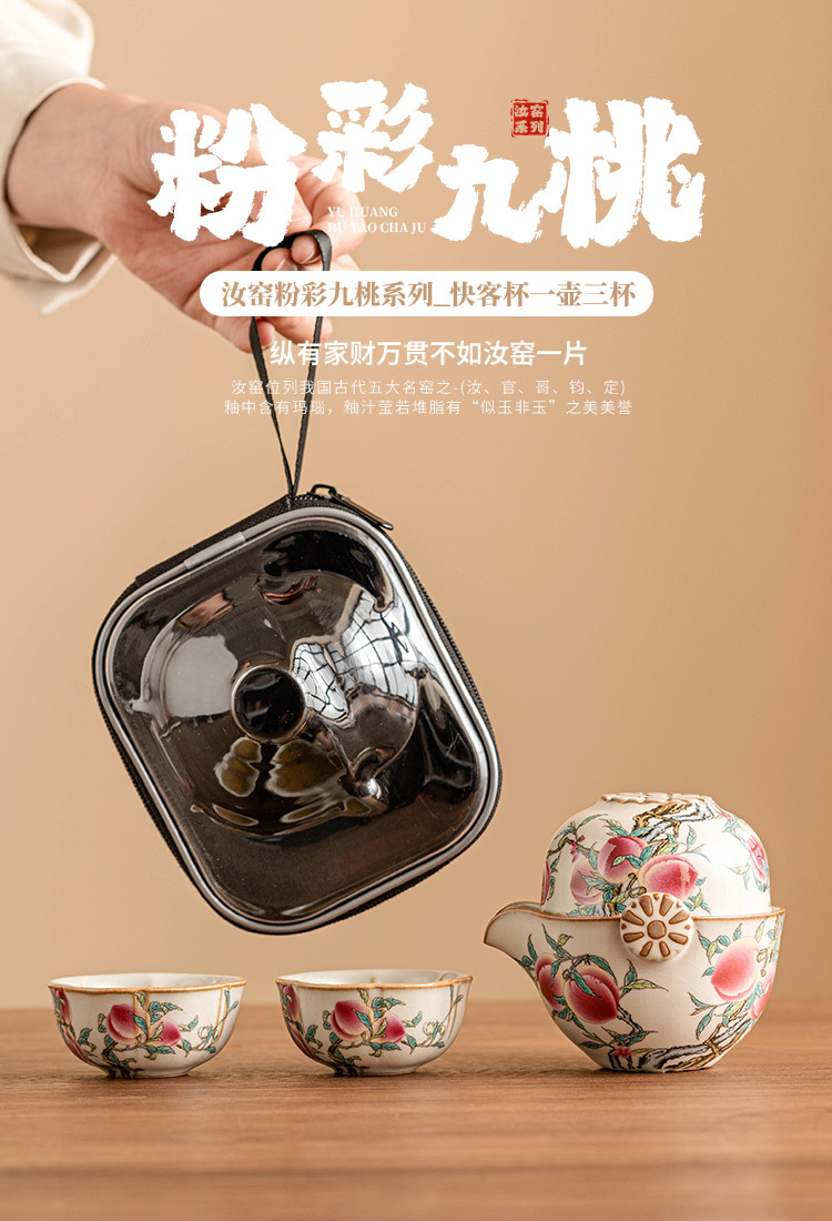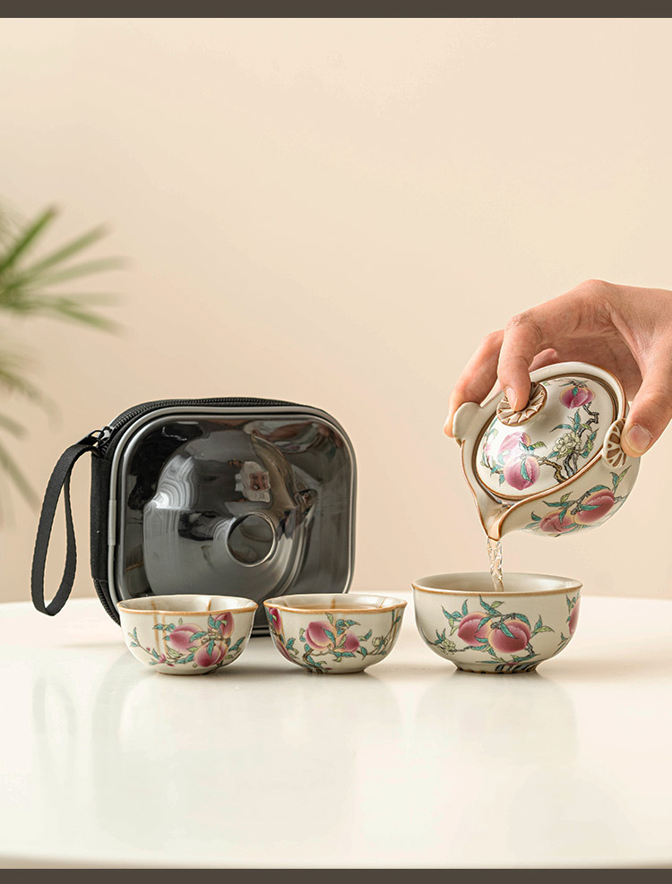 Bộ ấm trà du lịch gốm sứ Kung Fu di động ngoài trời Bộ ấm trà gốm sứ Kung Fu di động cốc cốc khách nhanh kiểu Trung Quốc