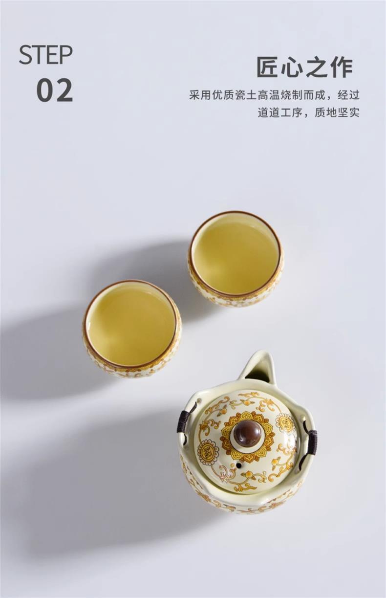 - Bộ ấm trà du lịch lò Ru màu be, một ấm hai cốc, cốc khách nhanh di động ngoài trời, bát pha trà chống bỏng