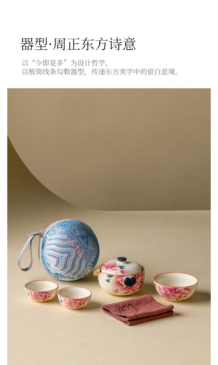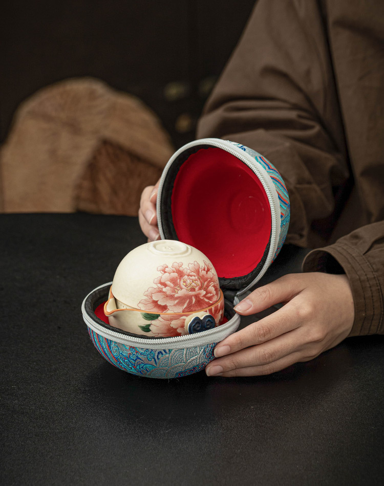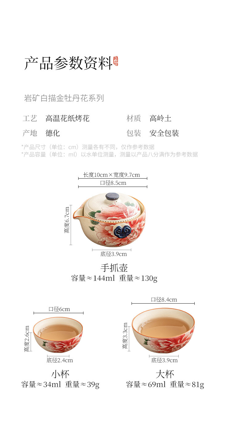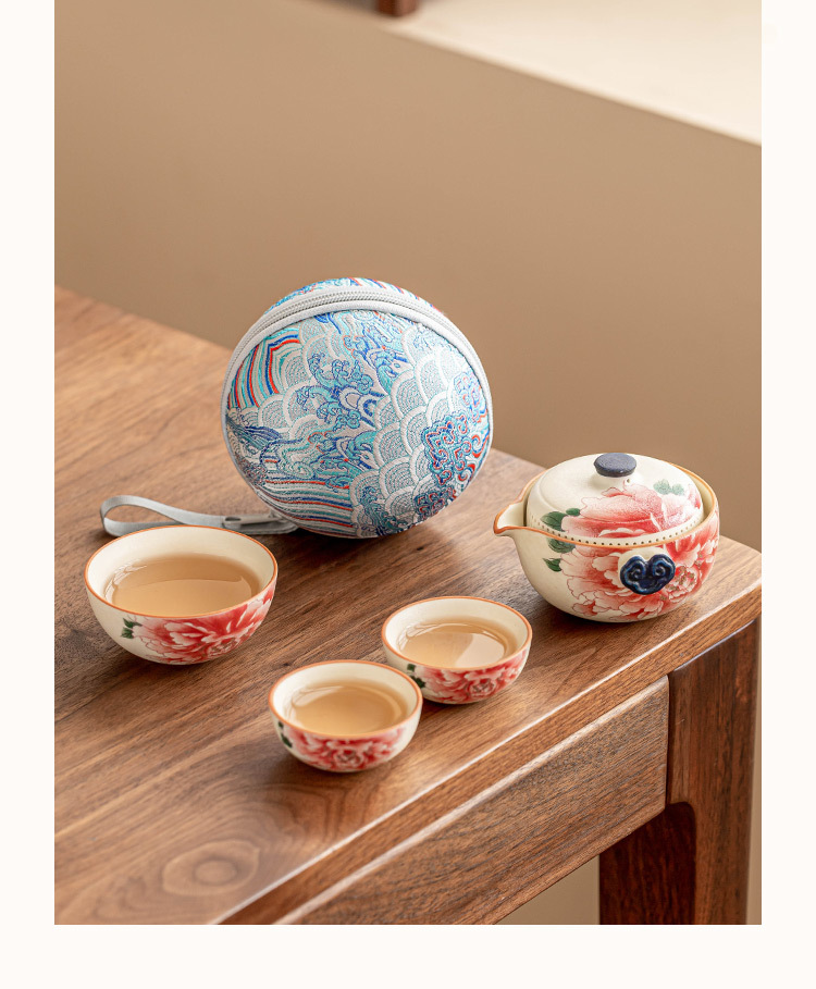 - Bộ ấm trà du lịch màu trắng mỏ đá, cốc phục vụ khách bằng gốm sứ màu vàng quốc gia, một ấm ba cốc, thiết bị uống trà di động